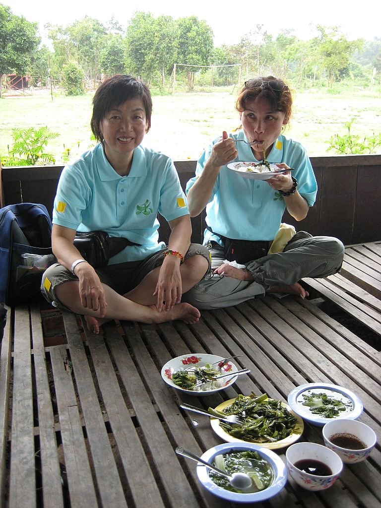 孤兒院為我們煑的素菜午餐,入鄉隨俗,我們也坐在地上吃午飯。