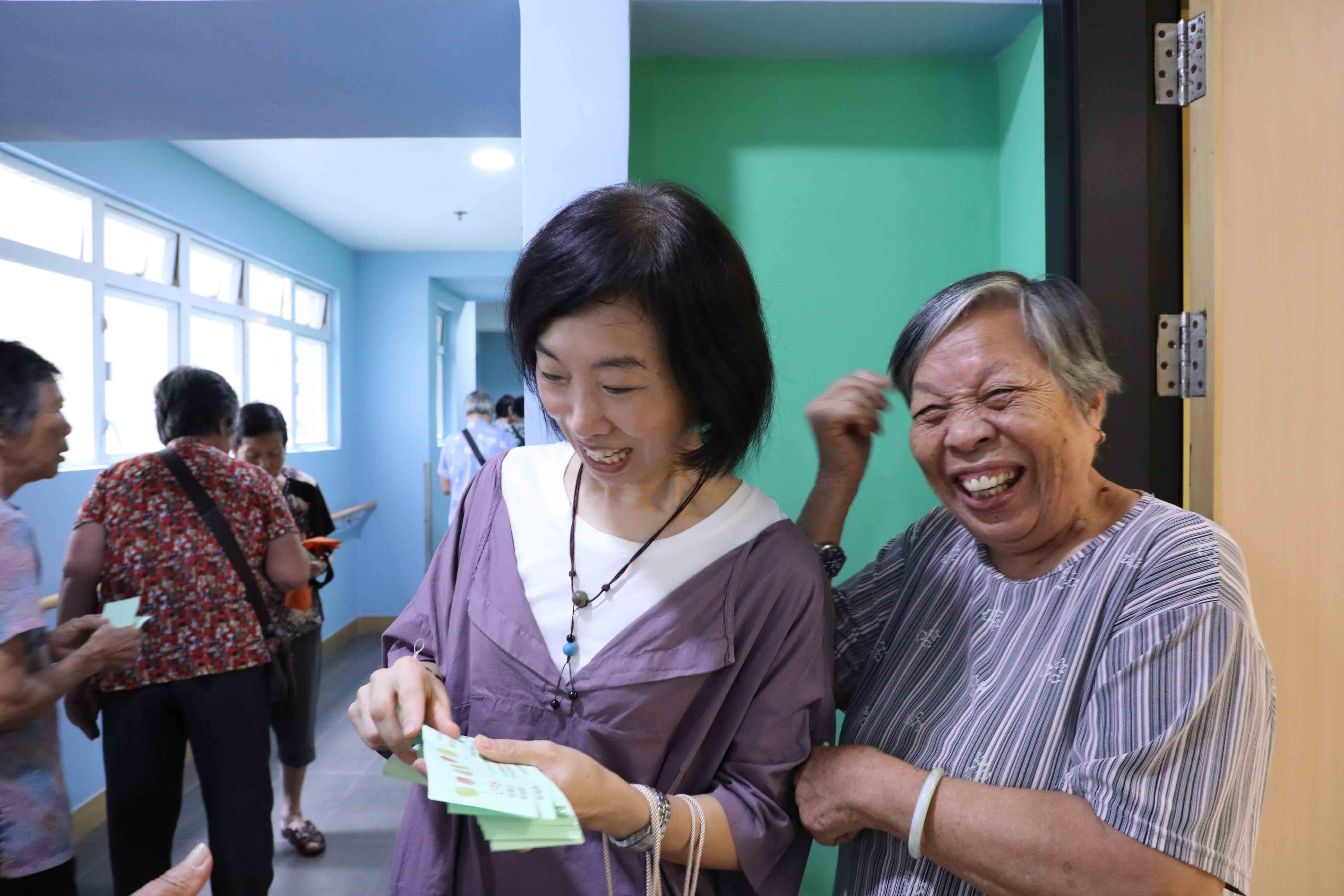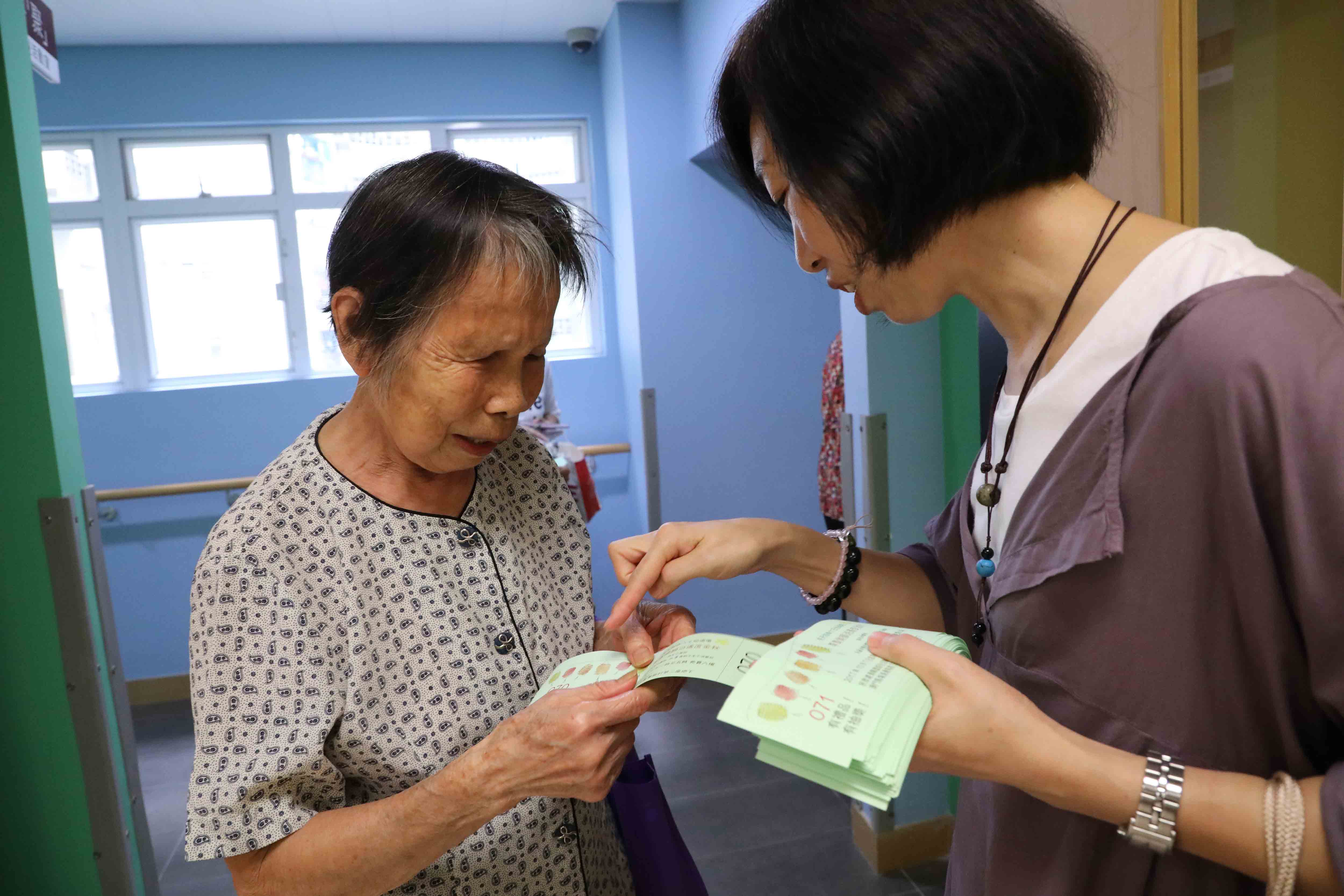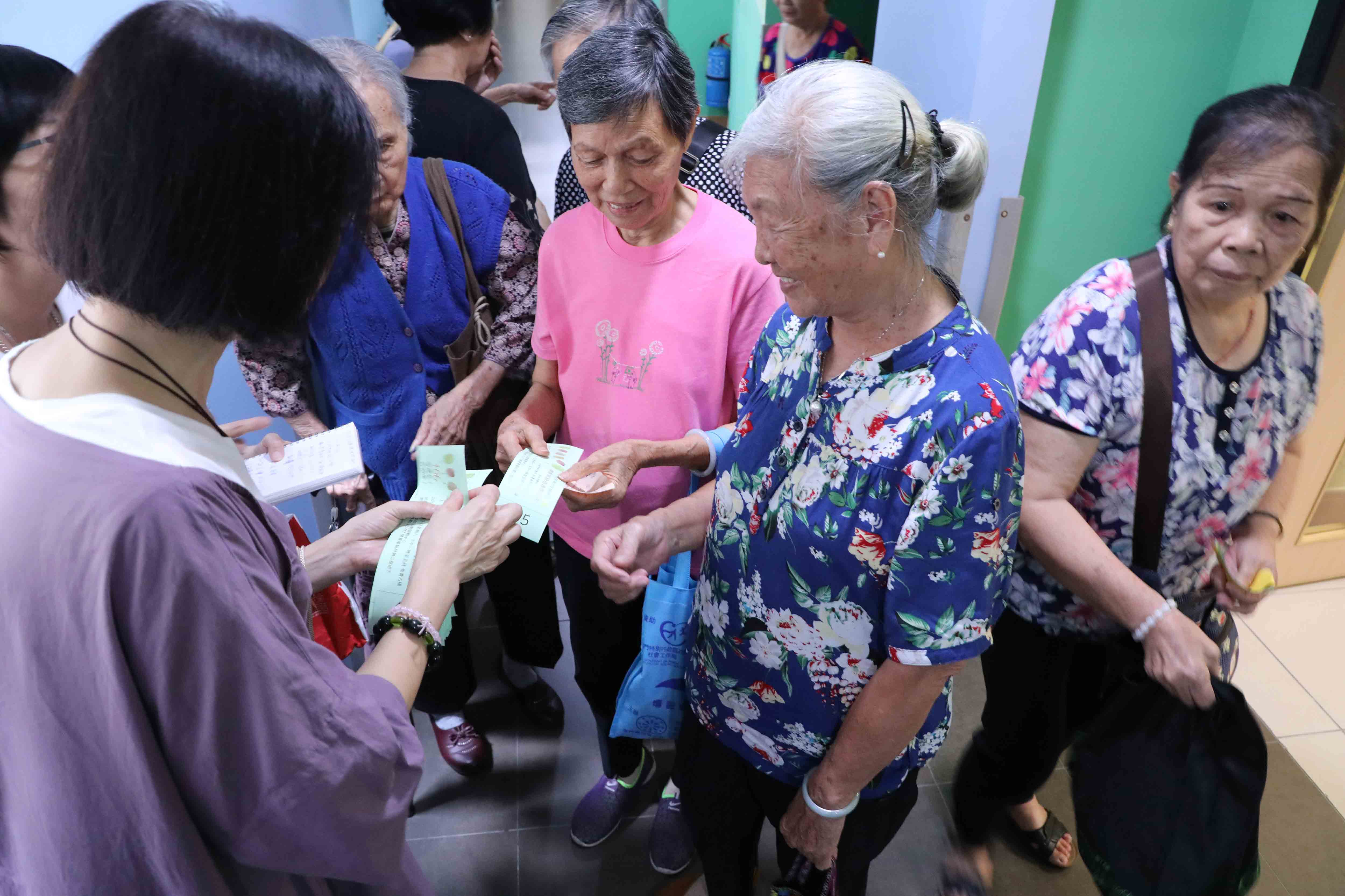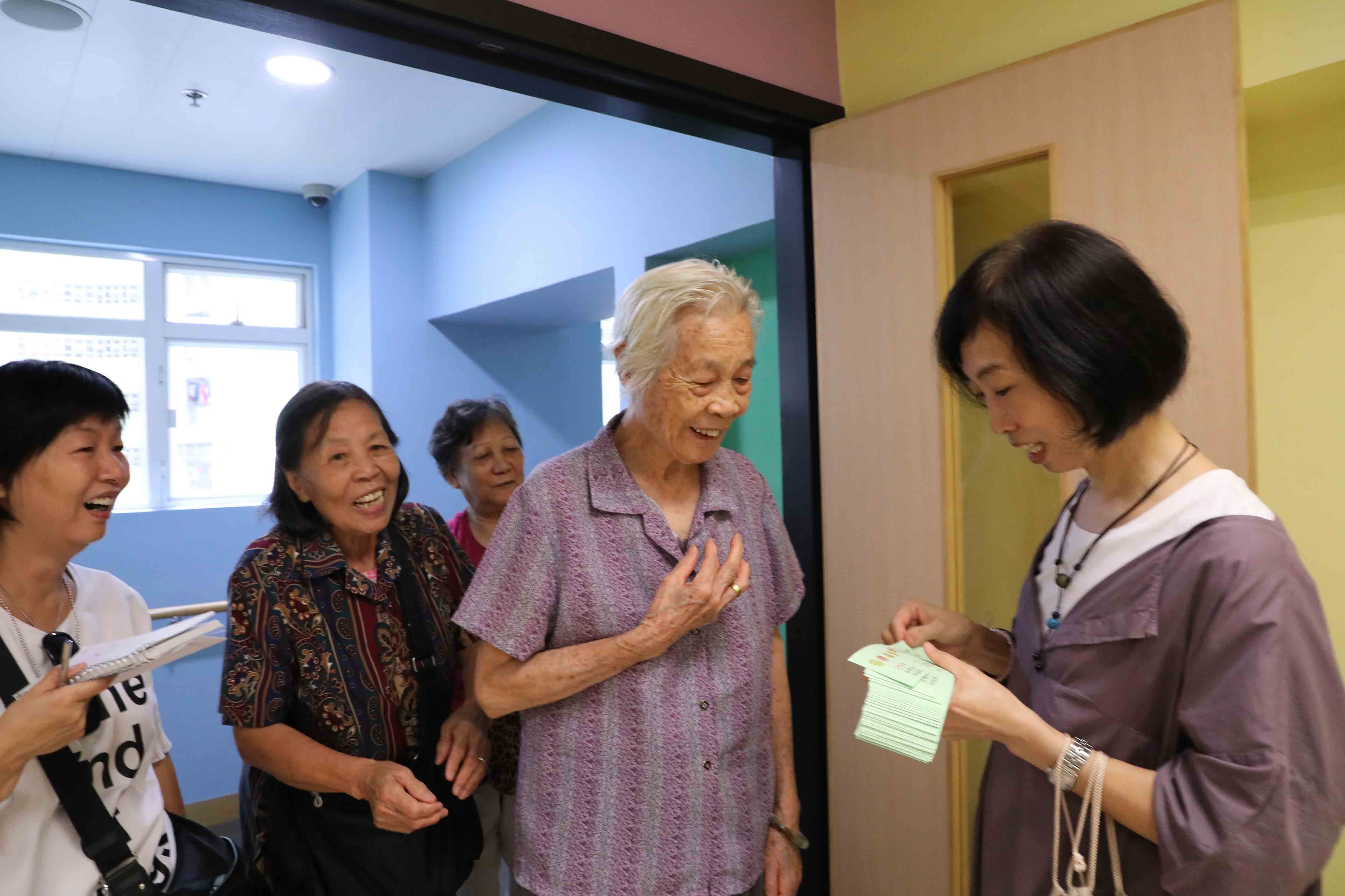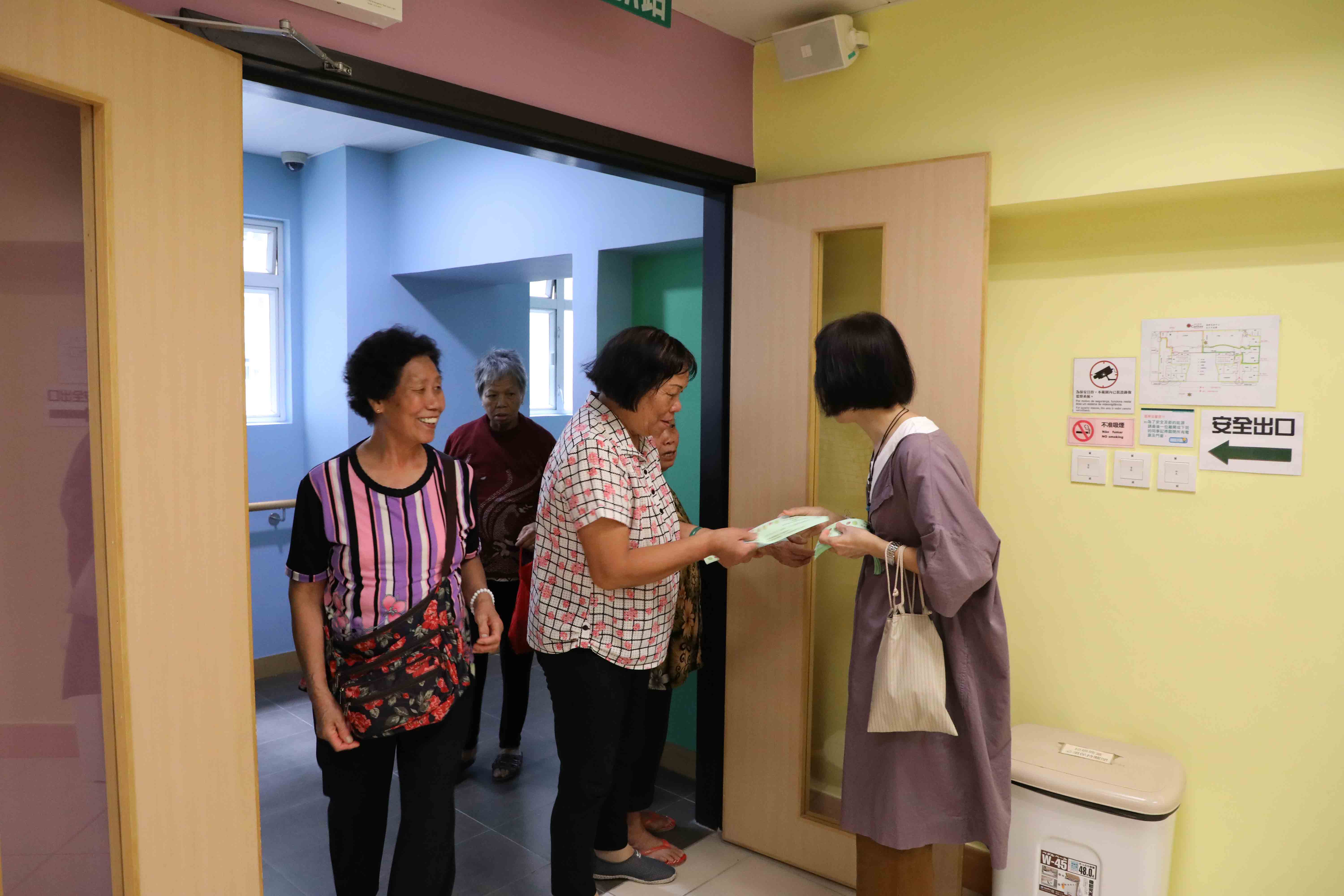 師父親往中心將10月7日舉辦的義唱表演項目「尊貴樂韻逍遙度金秋」入場劵逐一為長者們派發, 師父「送飛」之餘,也會向長者細心解說項目的細節、安排等。相熟的長者看到 師父,更會興奮的拉著 師父拍照和敘舊,知道這表演項目,情緒異常高漲,良久才平復。