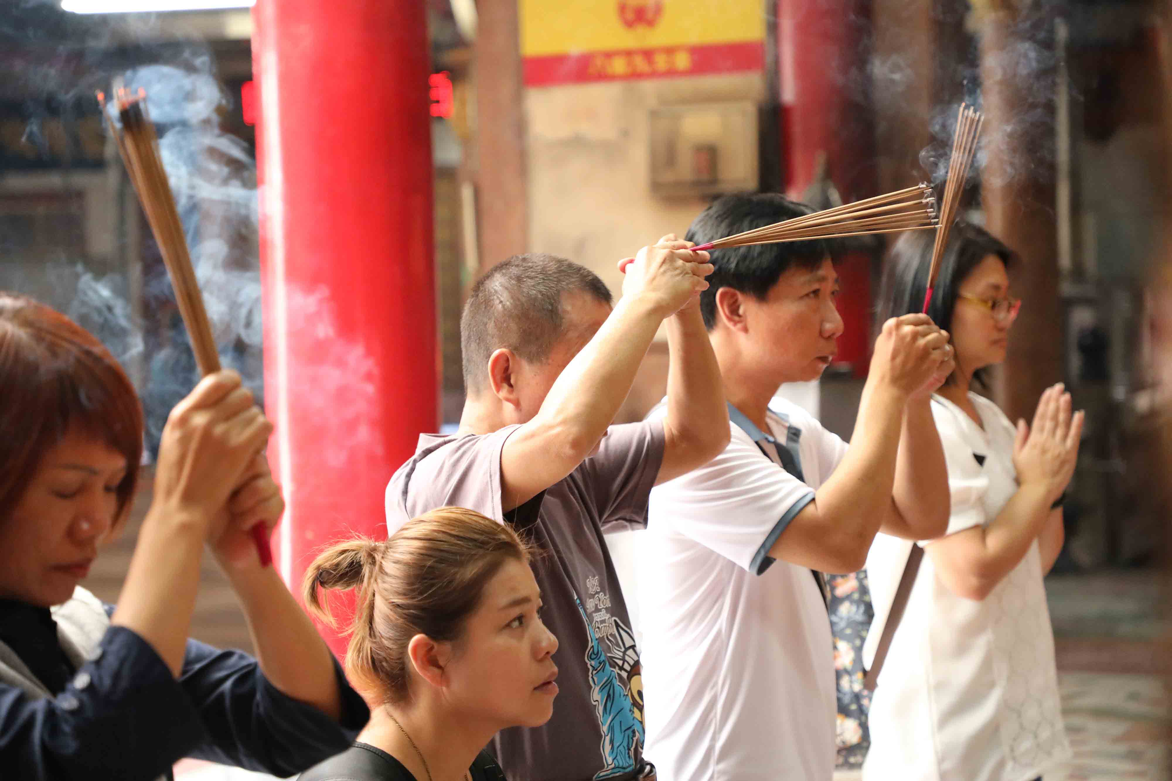 高雄榮哥(右三)每到佛廟皆誠心上香或參拜;相識榮哥已八年時間,雖不常見面,但他對 師父卻十分信任和敬重,這次見面,榮哥答應 師父每天做功課,誠心「念佛」。感恩 師父!也感恩榮哥於高雄其間為我們聯繫各項事宜!