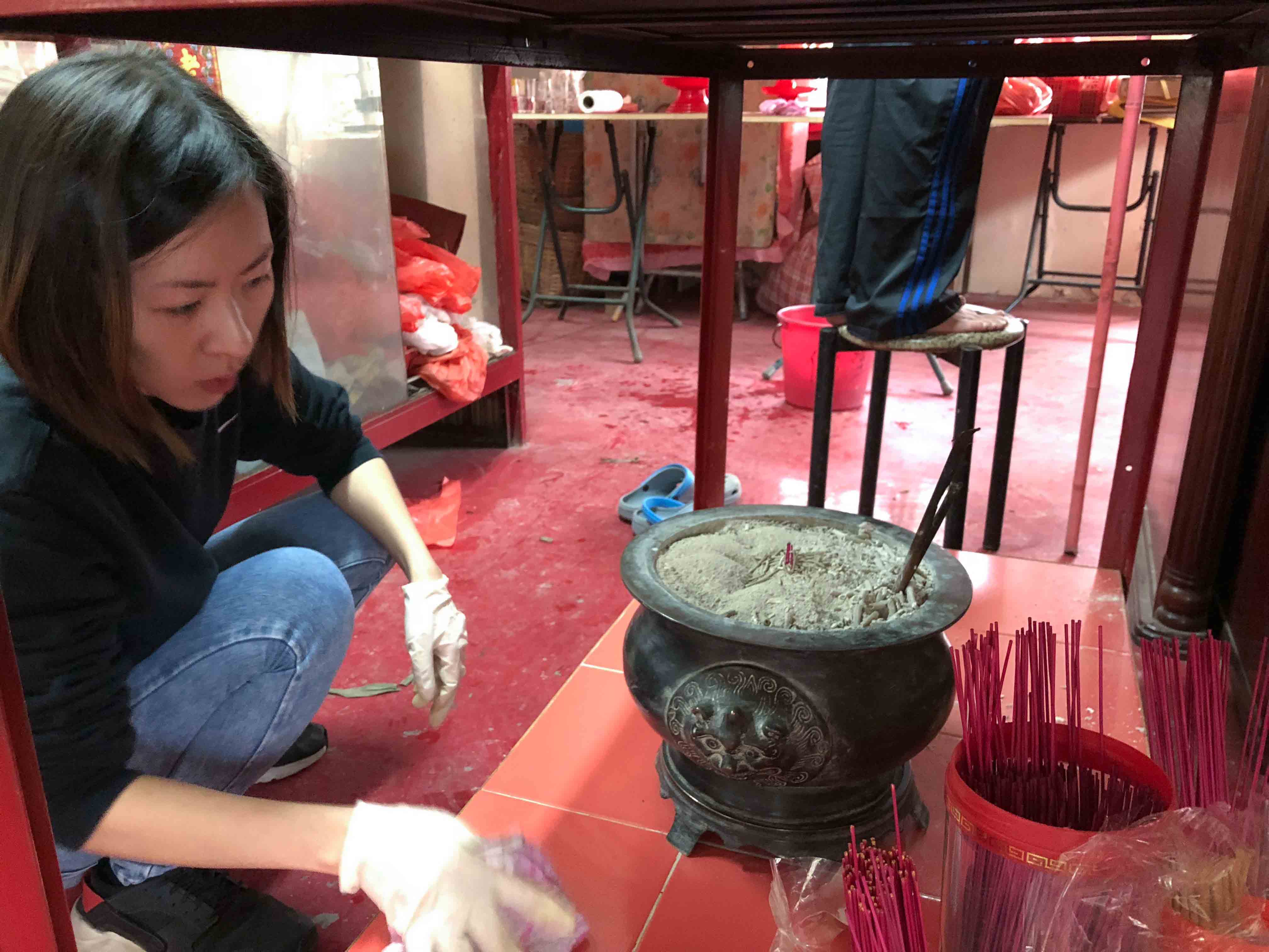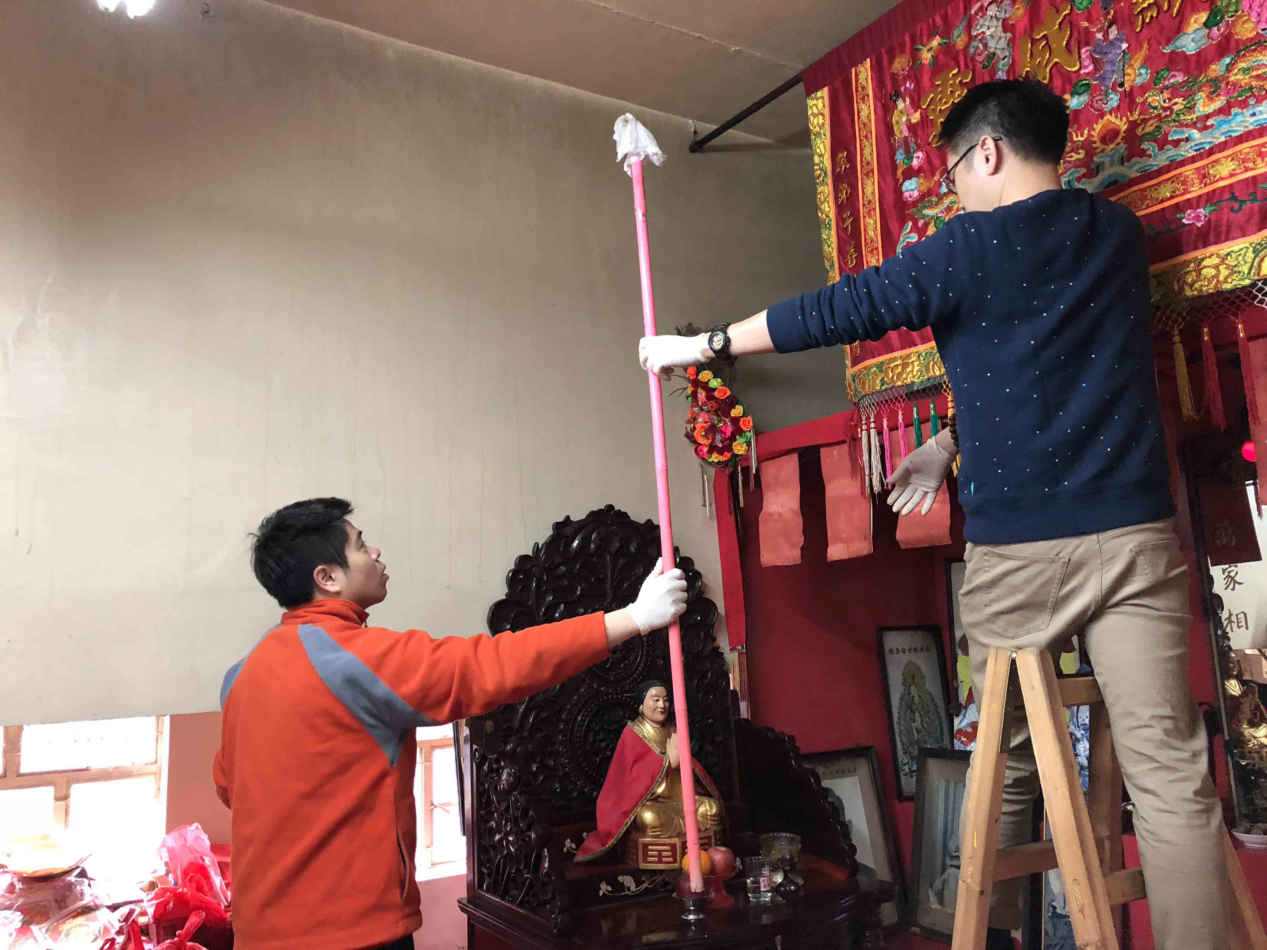 當天經 師父指示及提點,弟子聯同朱醫師的兒子,順利完成神壇、內堂等的清潔工作。