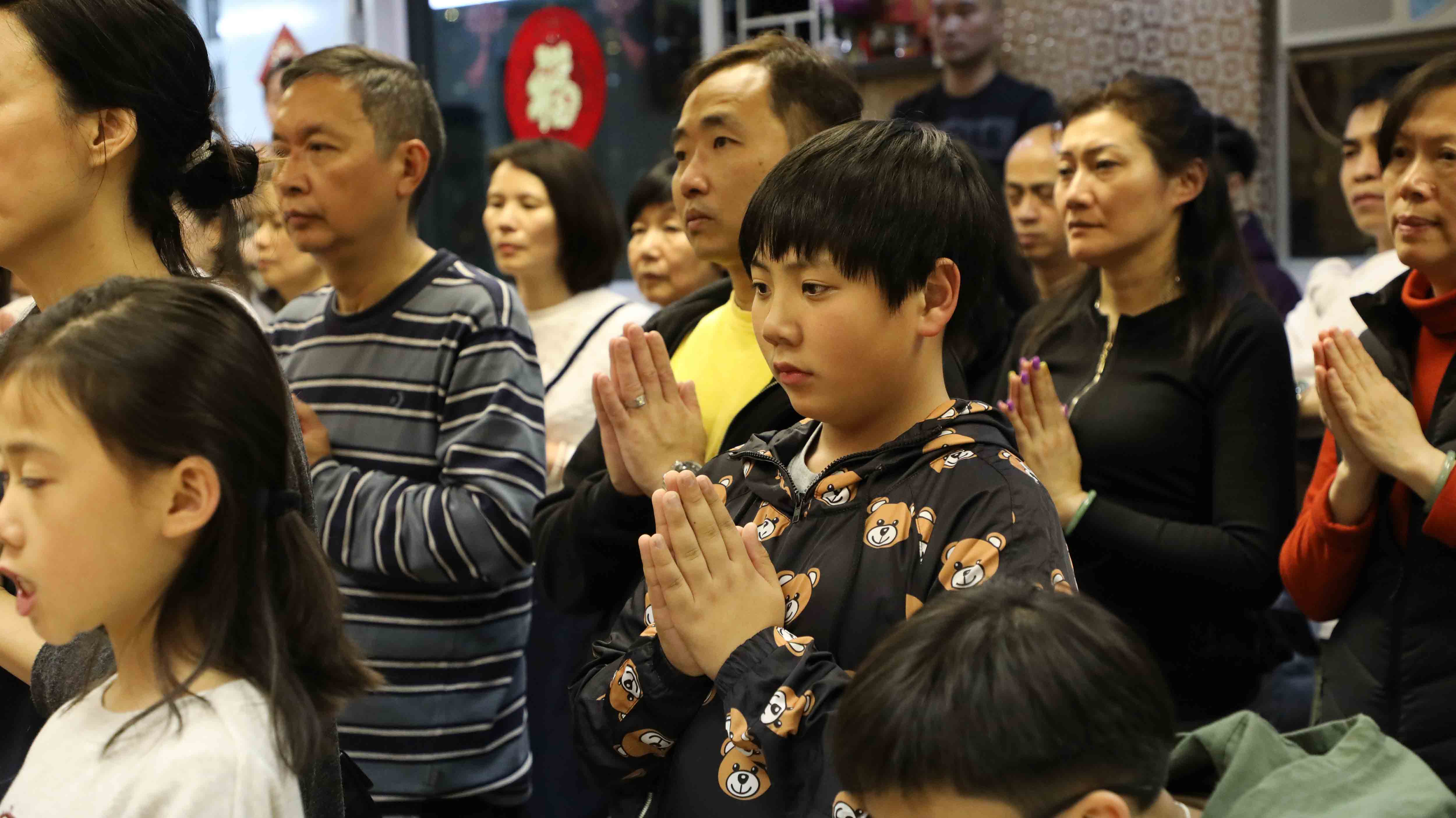 請神完結, 師父鼓勵大家用力鼓掌,歡喜迎接新一年的到臨。