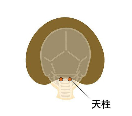 天柱穴:位於頸後髮際下緣,左右兩條肌肉外緣凹陷處。