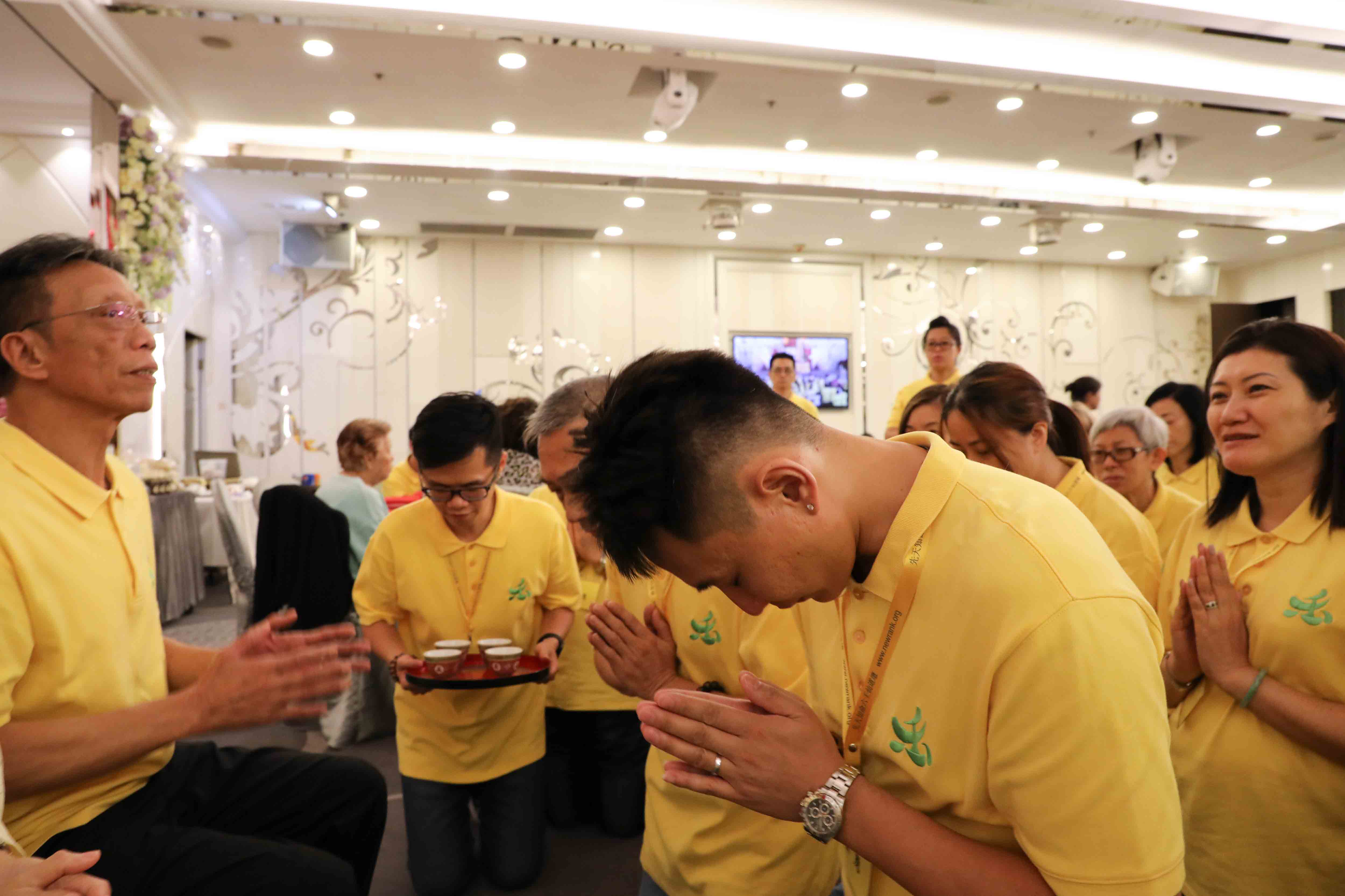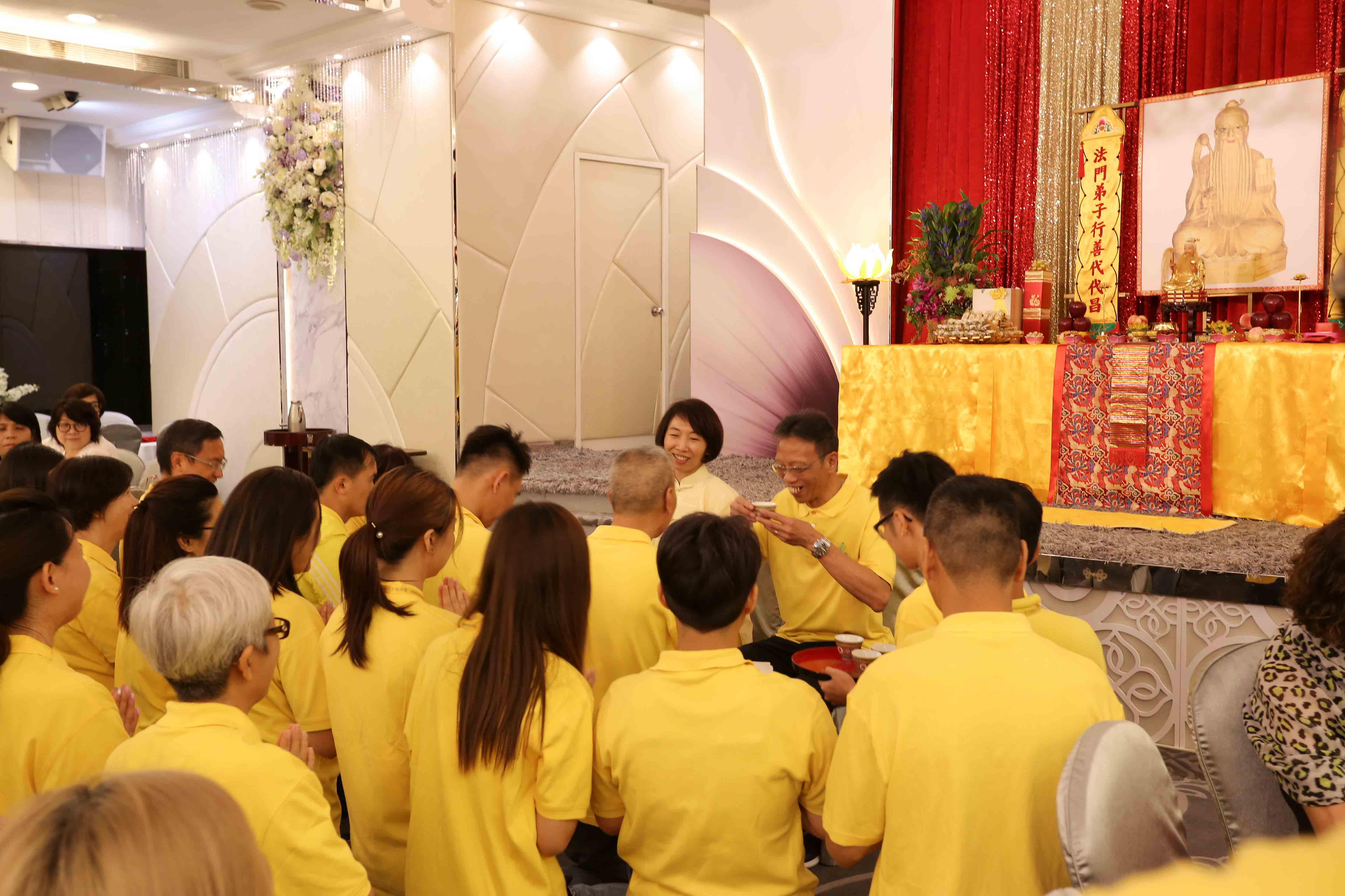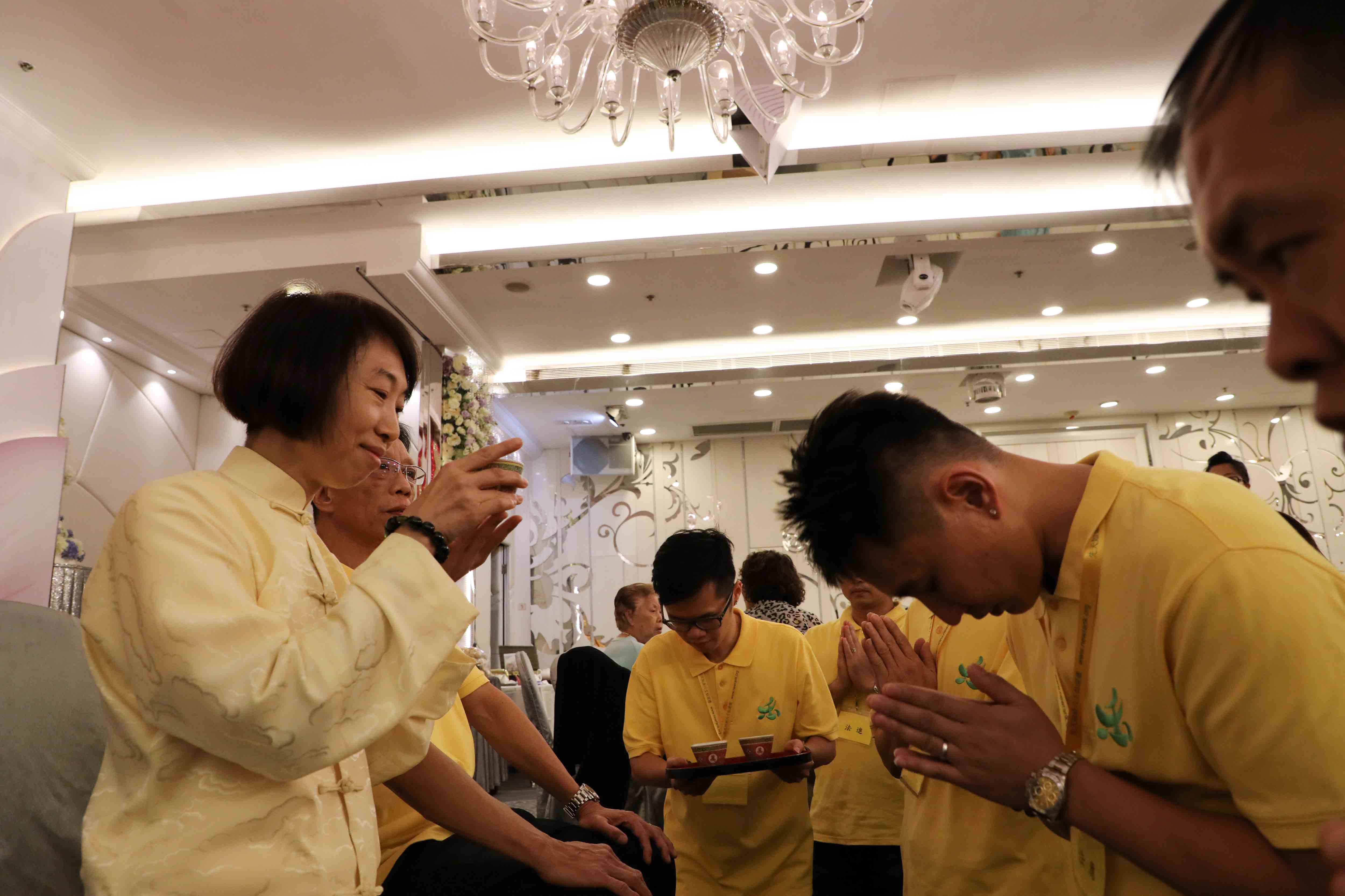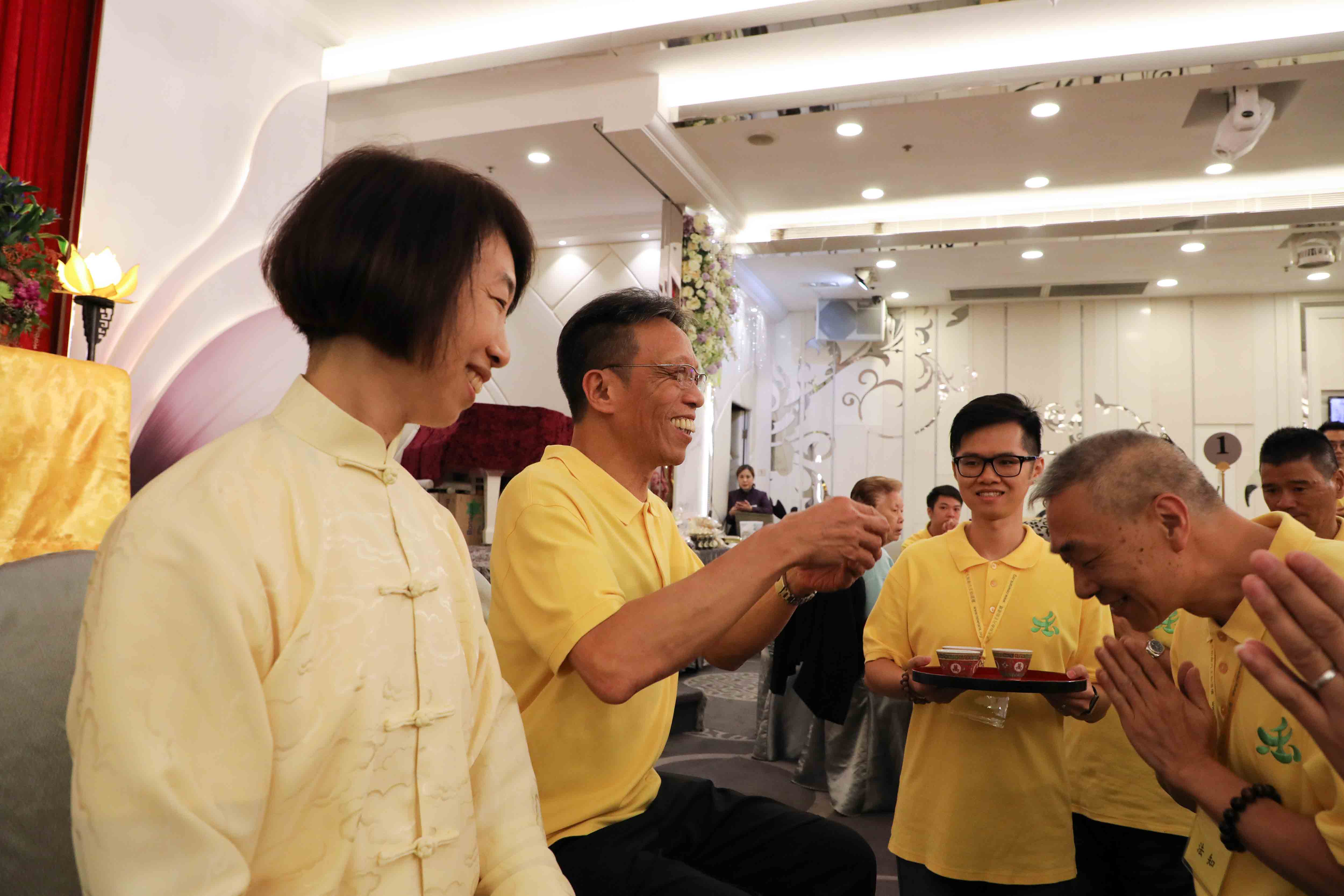 法應師兄和法知師兄代表眾師兄弟向 師父敬茶,感恩 恩師!
