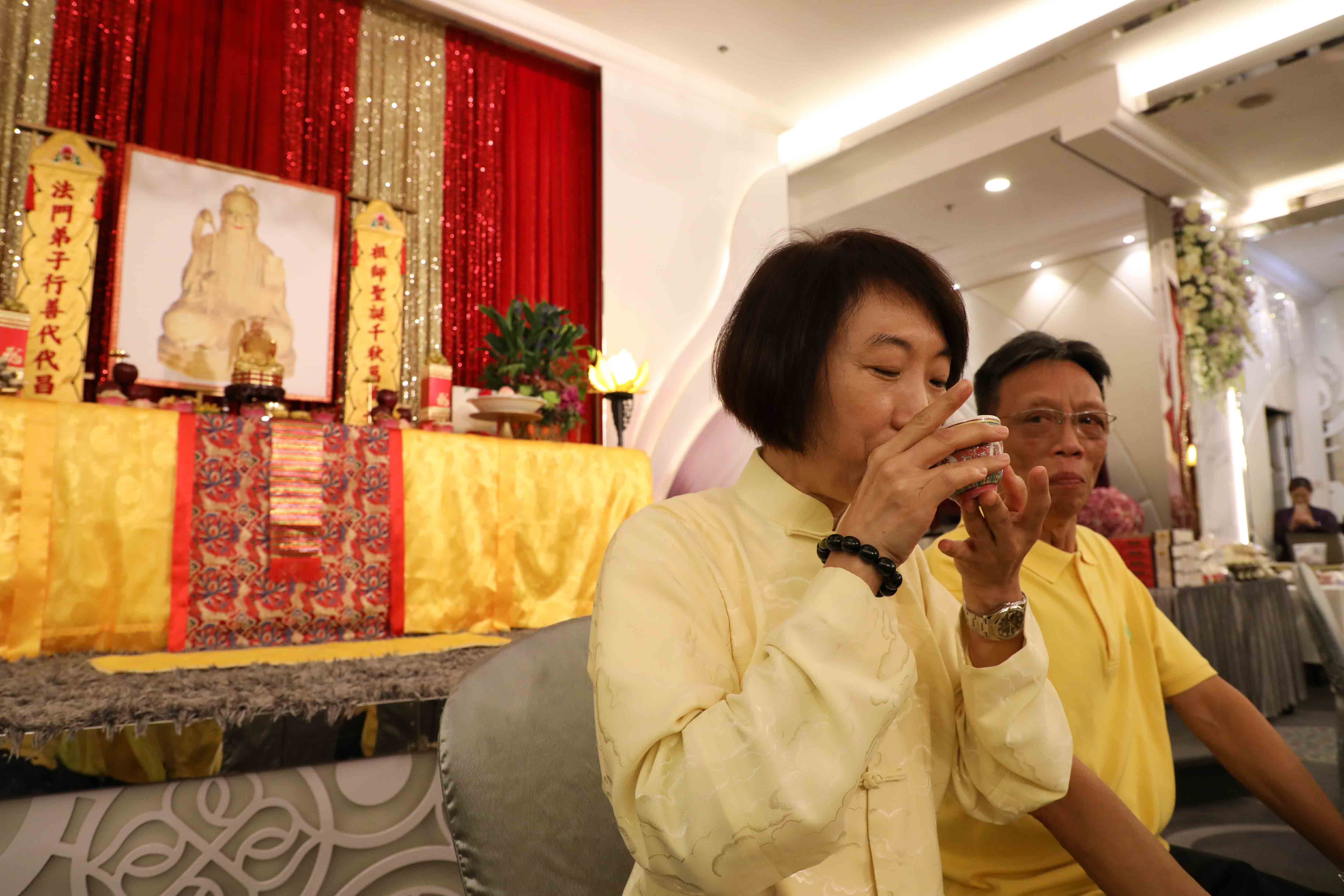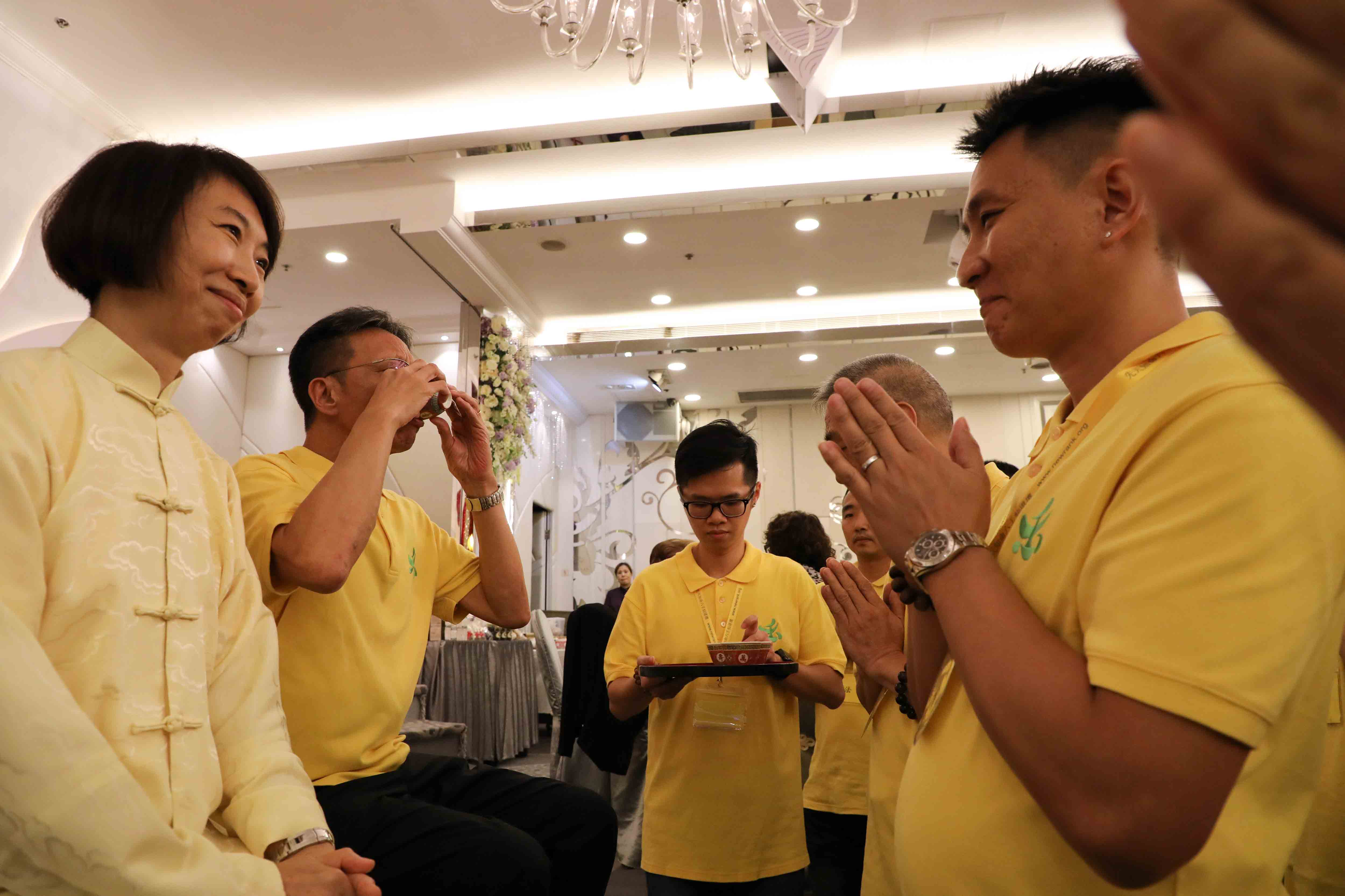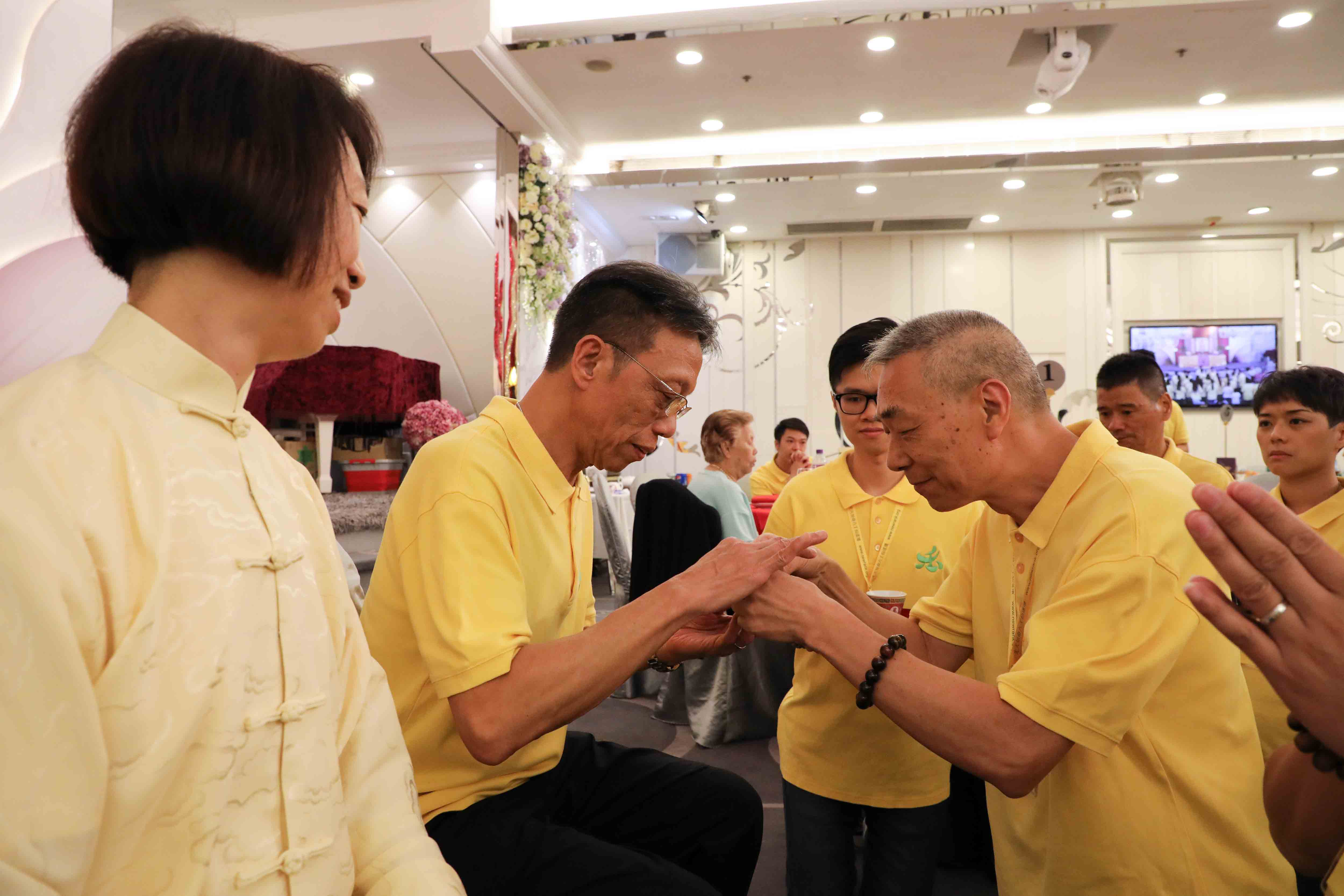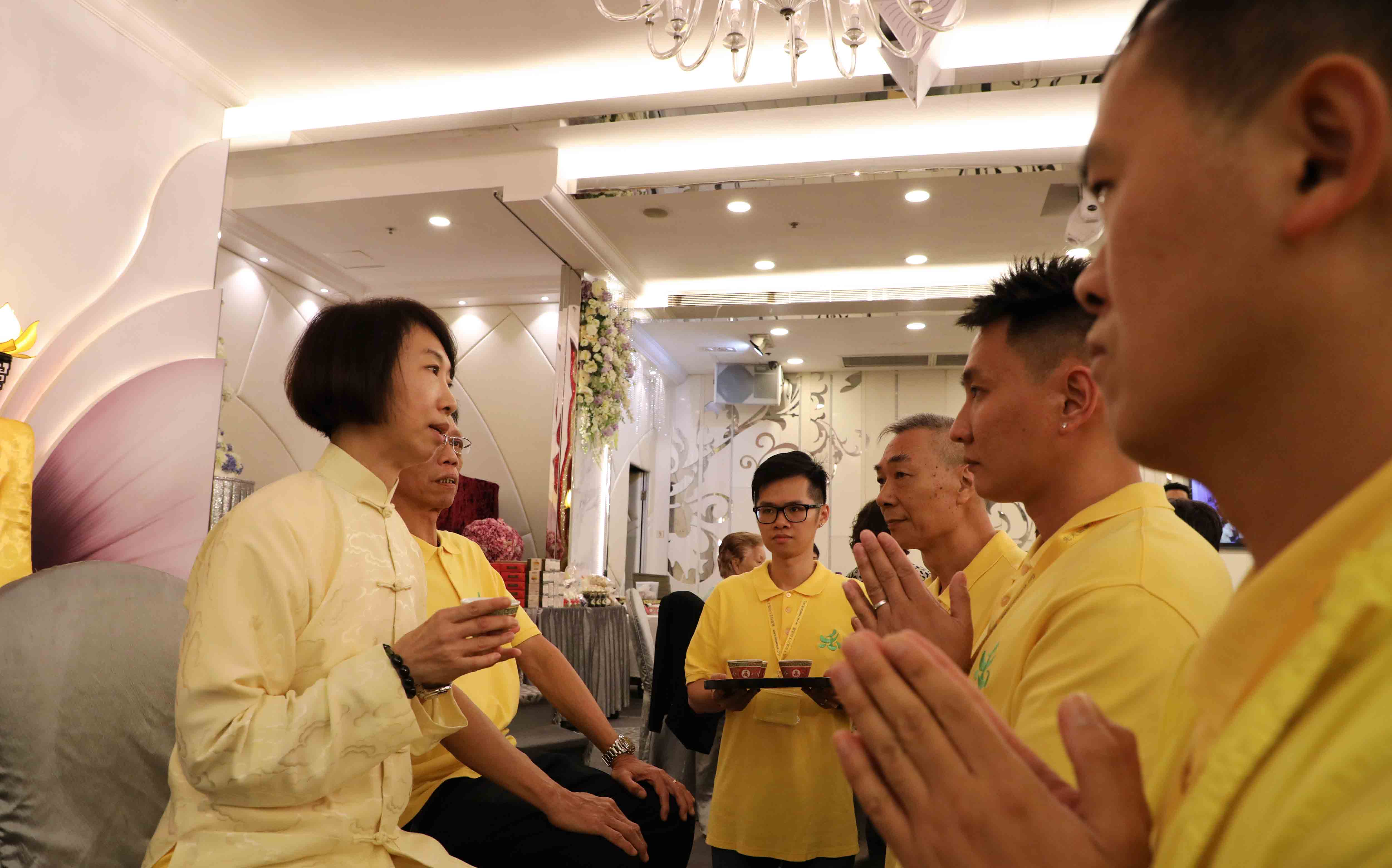 法應師兄和法知師兄代表眾師兄弟向 師父敬茶,感恩 恩師!