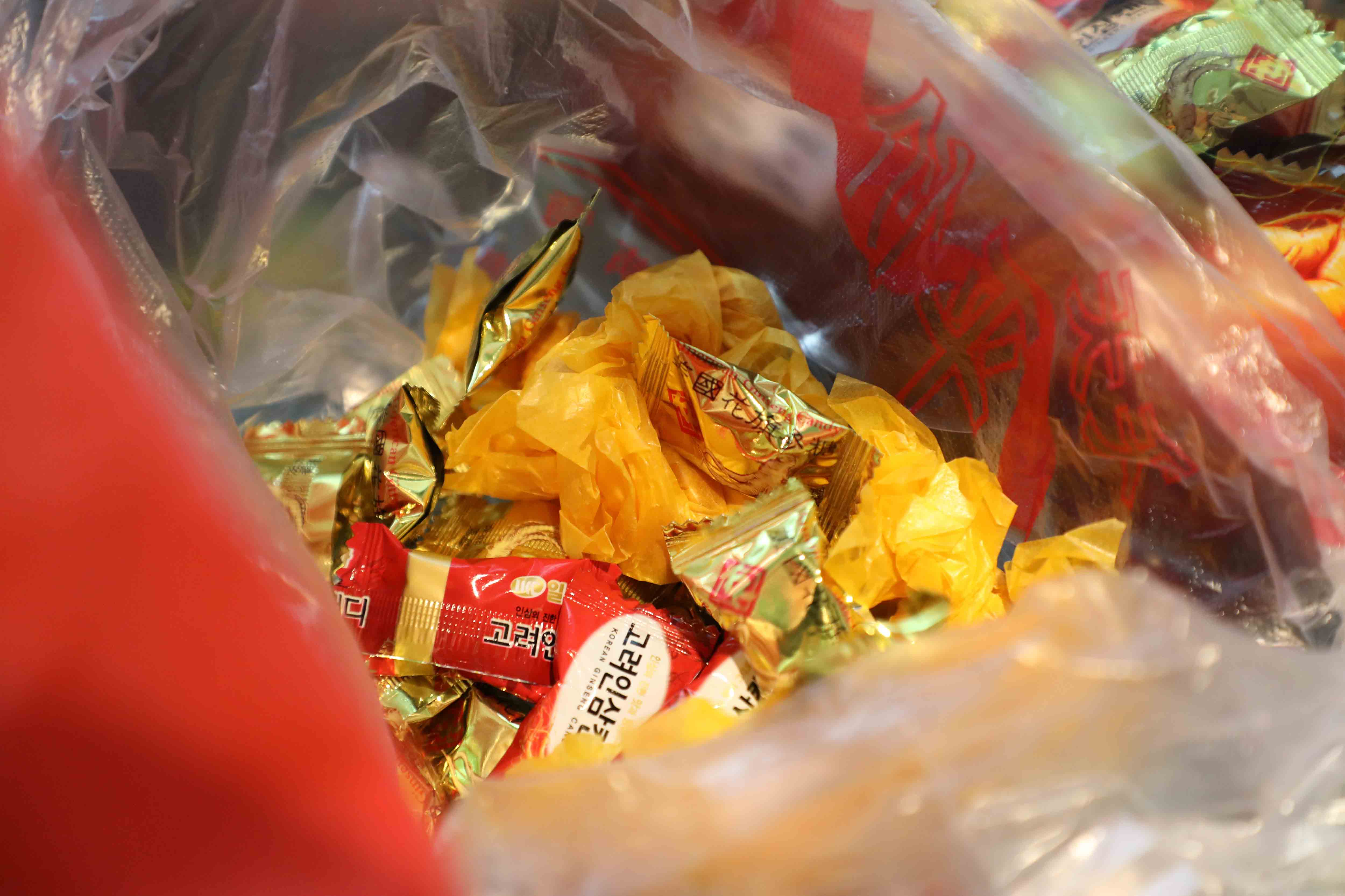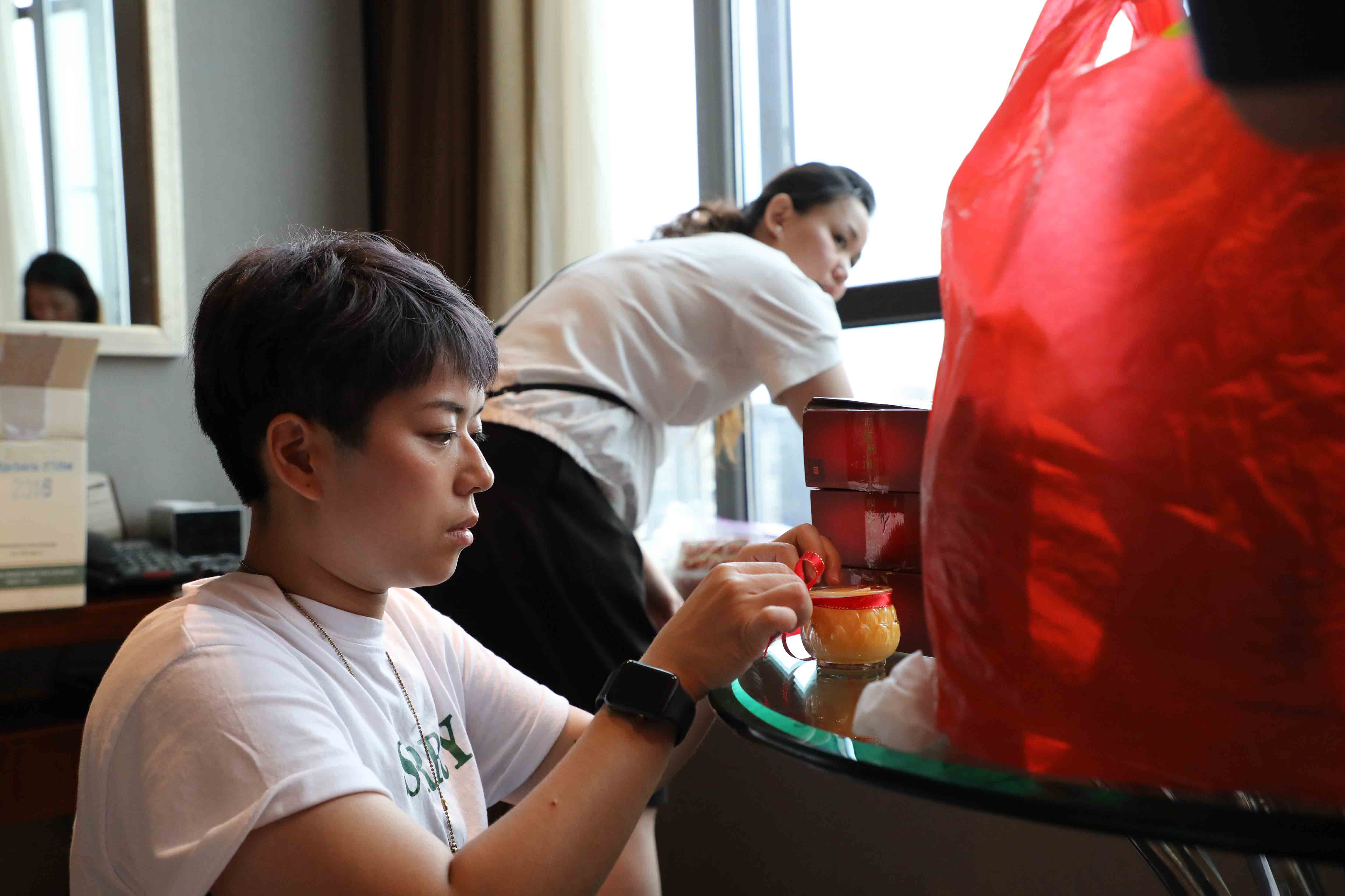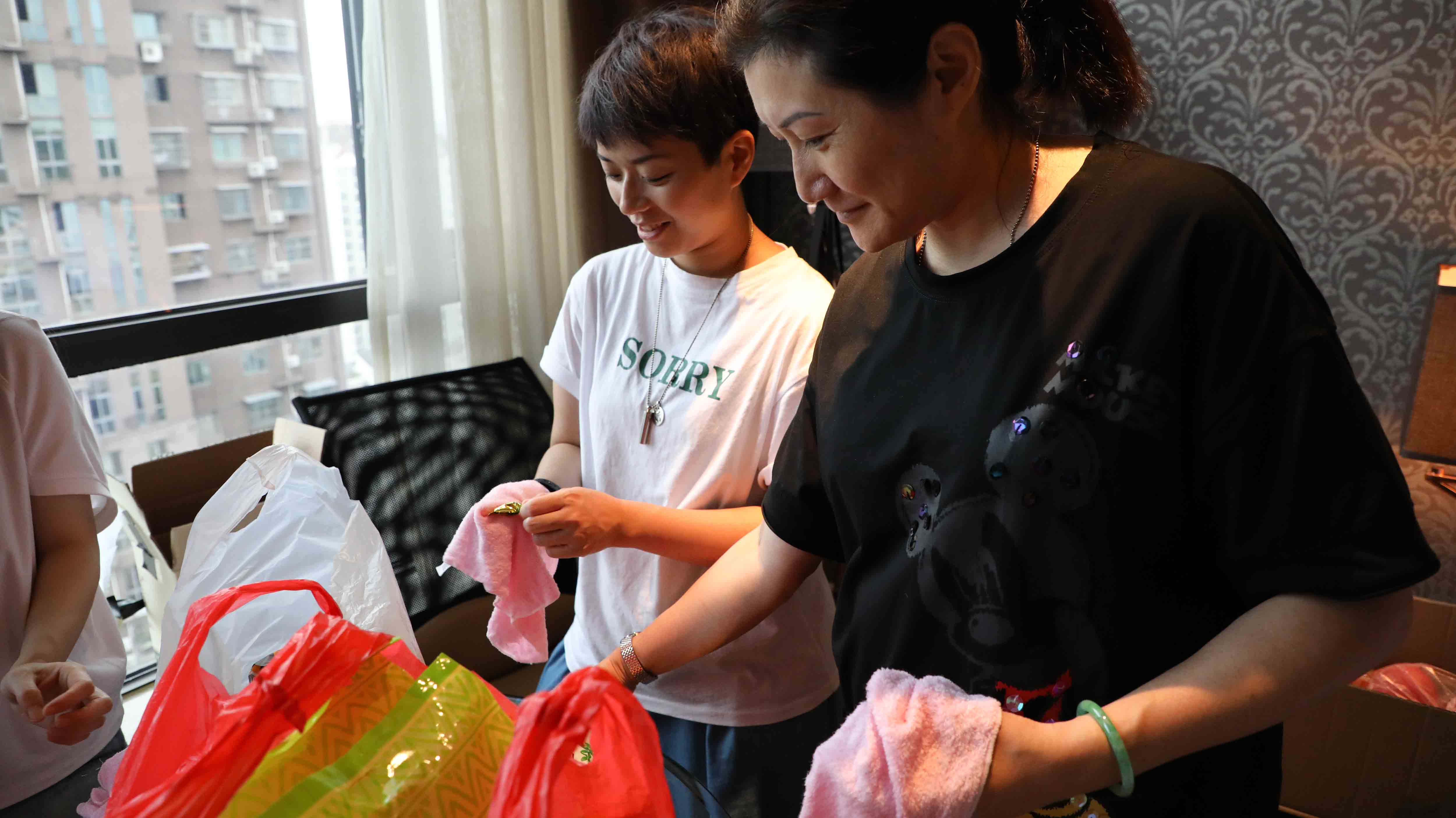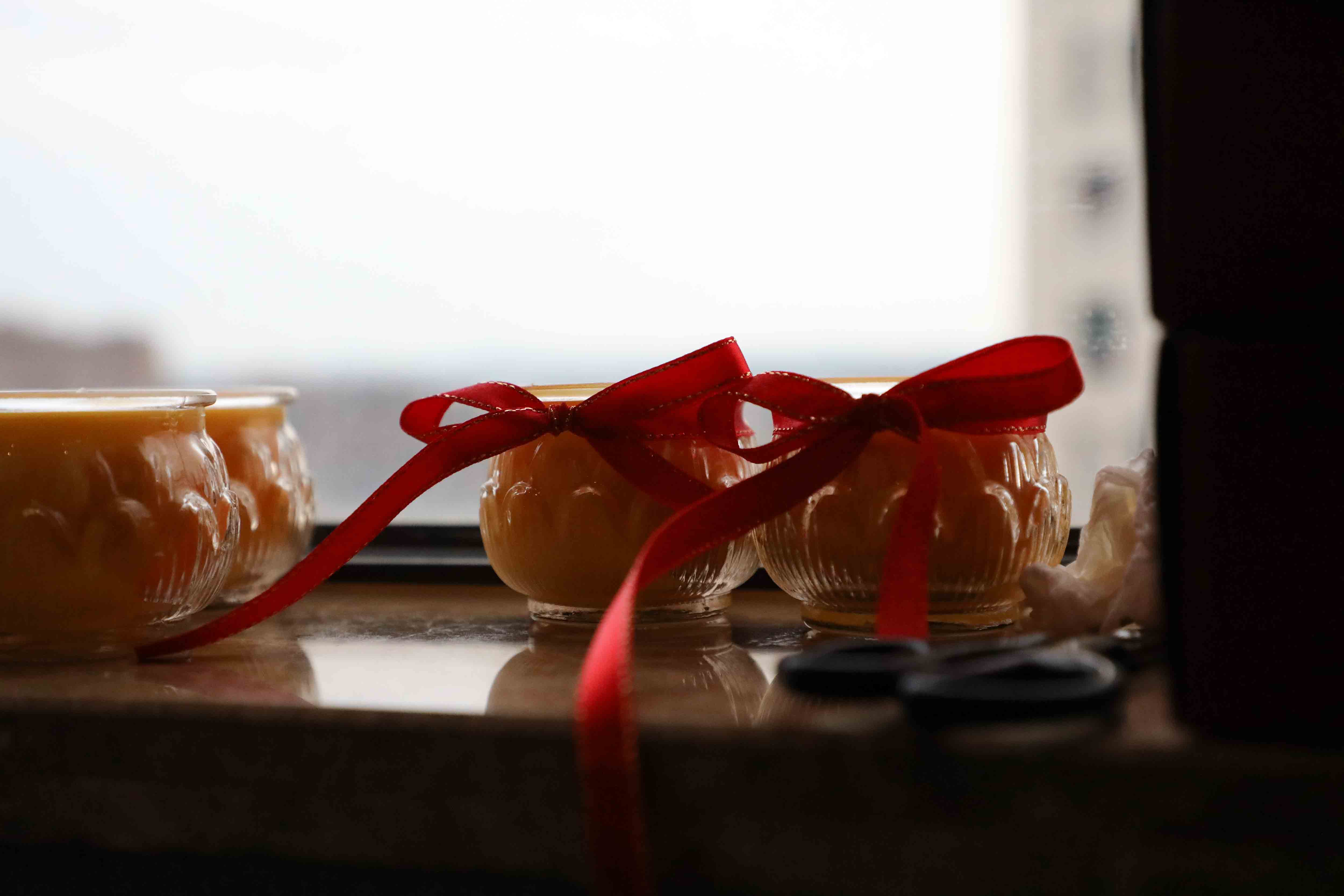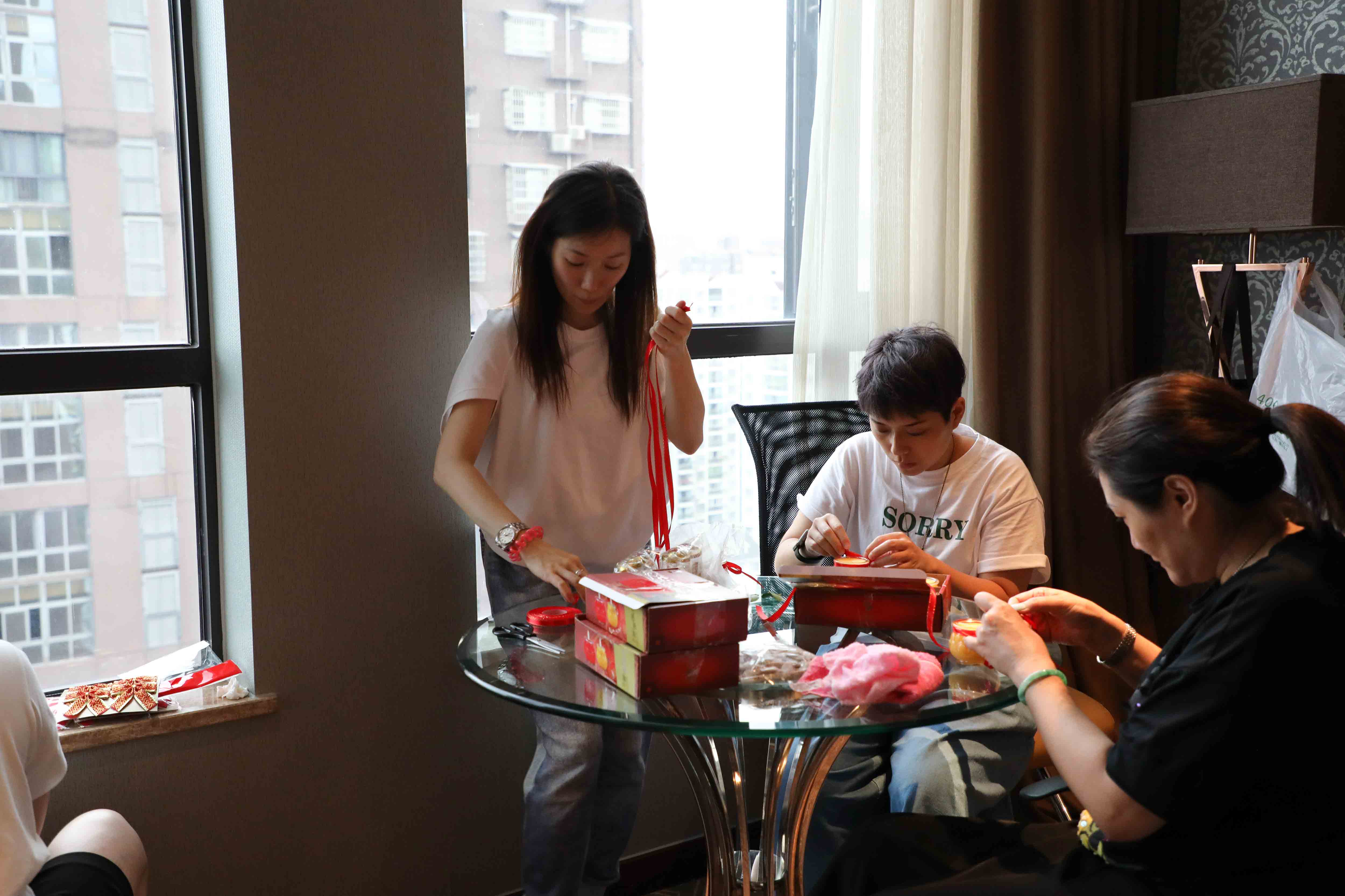 按照 師父的教導,眾弟子逐一以柚葉清抹貢杯、貢碟、鮮果、紅棗、蓮子、花生和彩糖,並以紅絲帶莊嚴果蠟,為明天的賀誕做好準備。