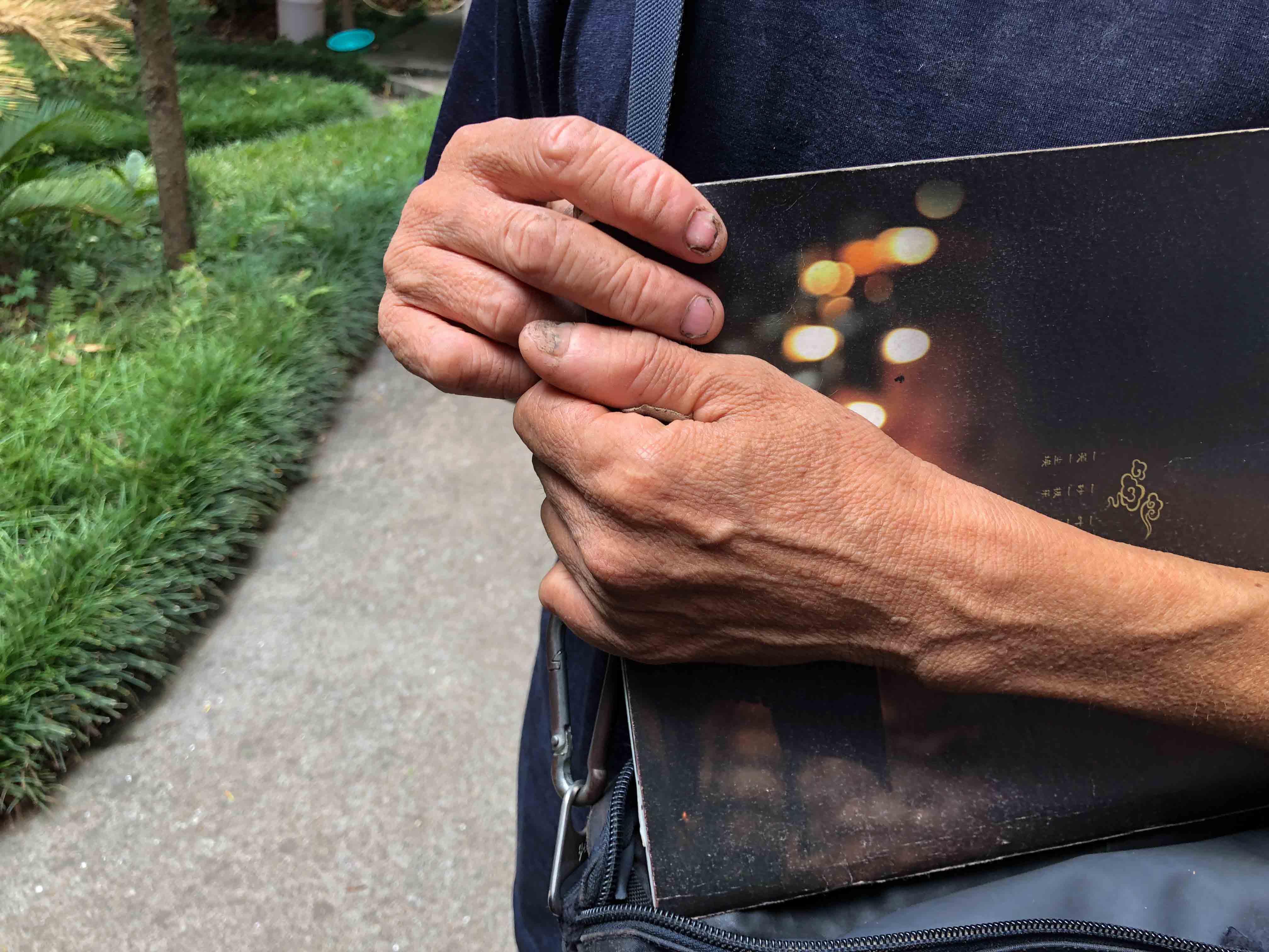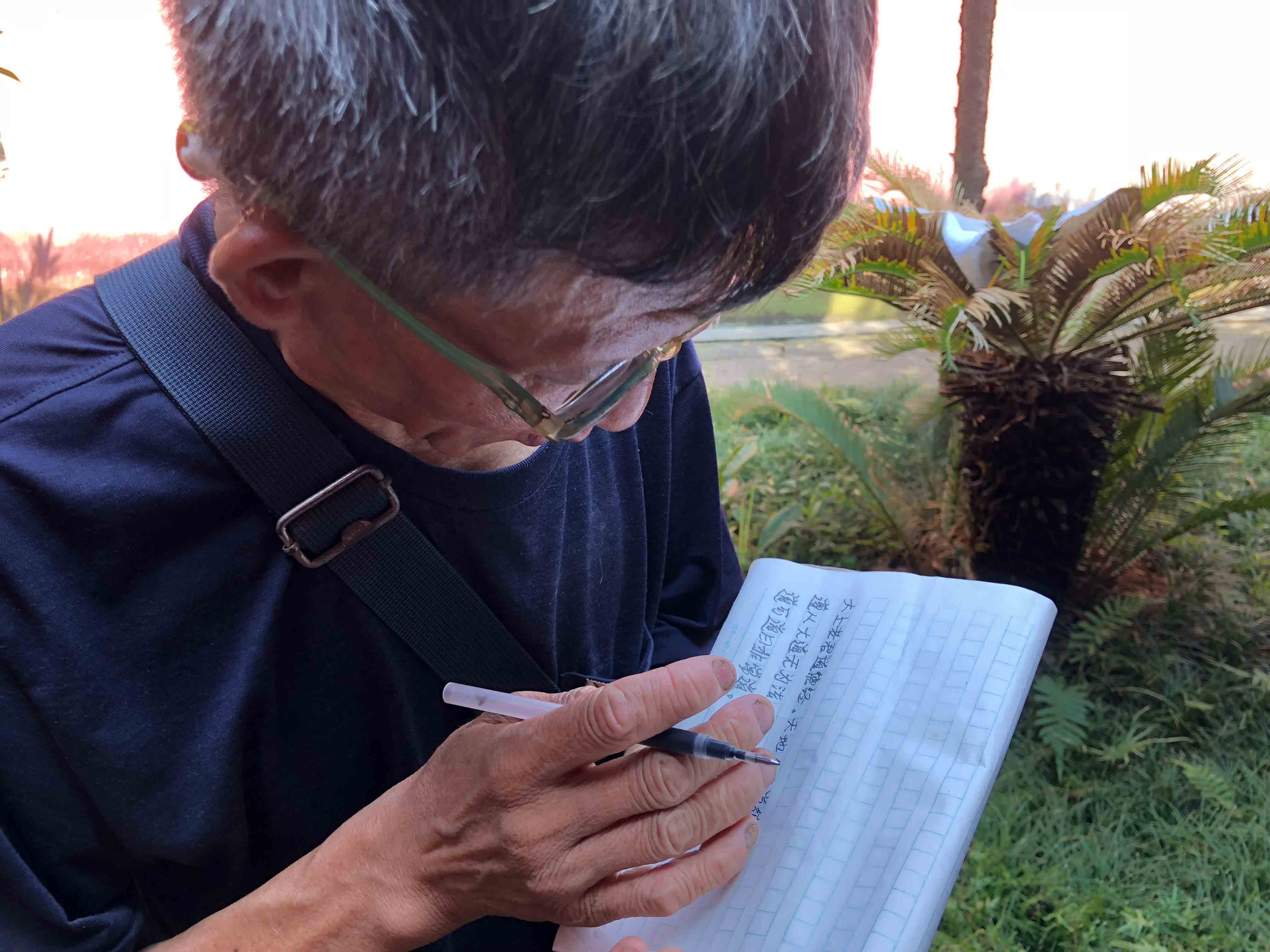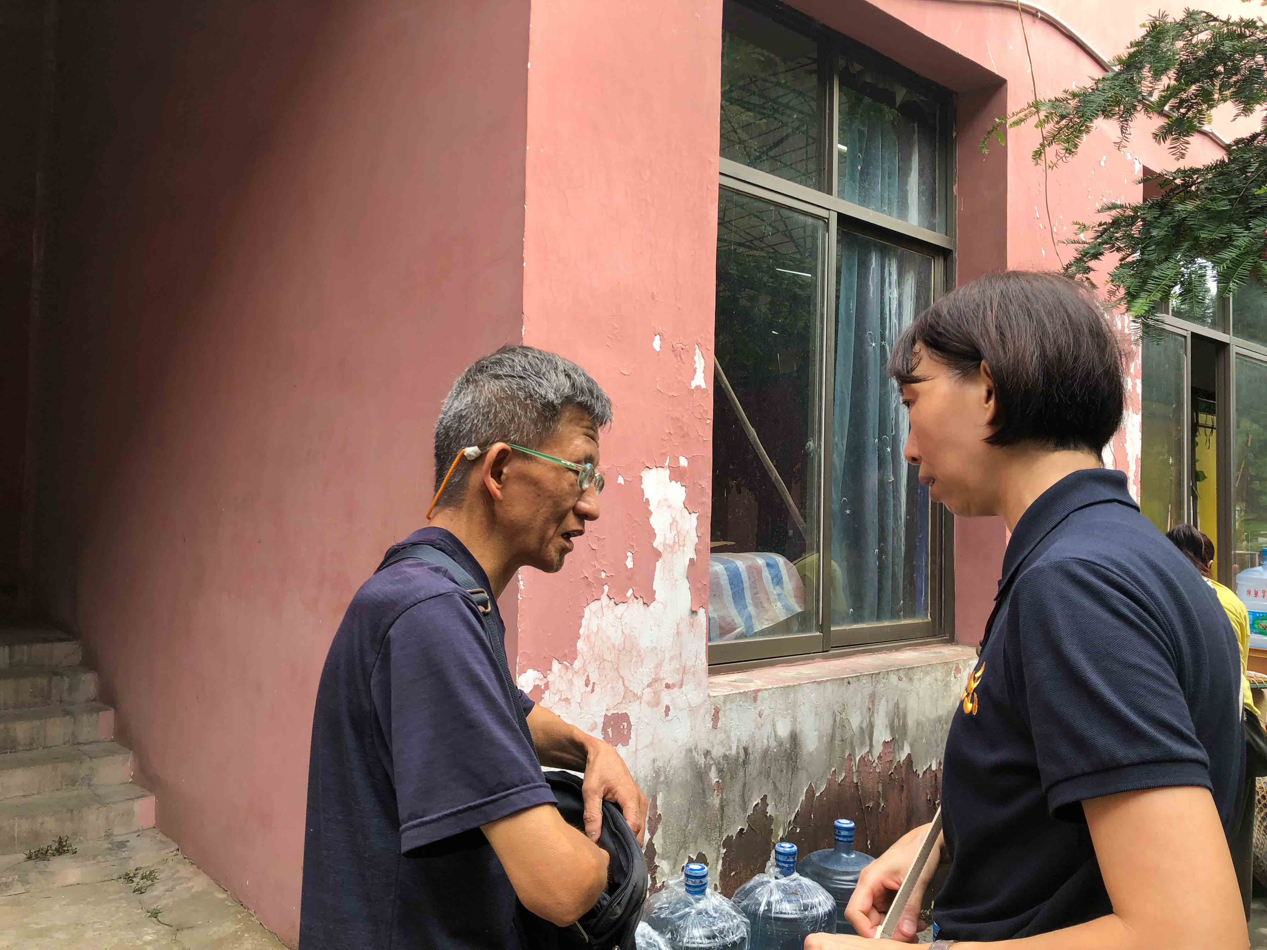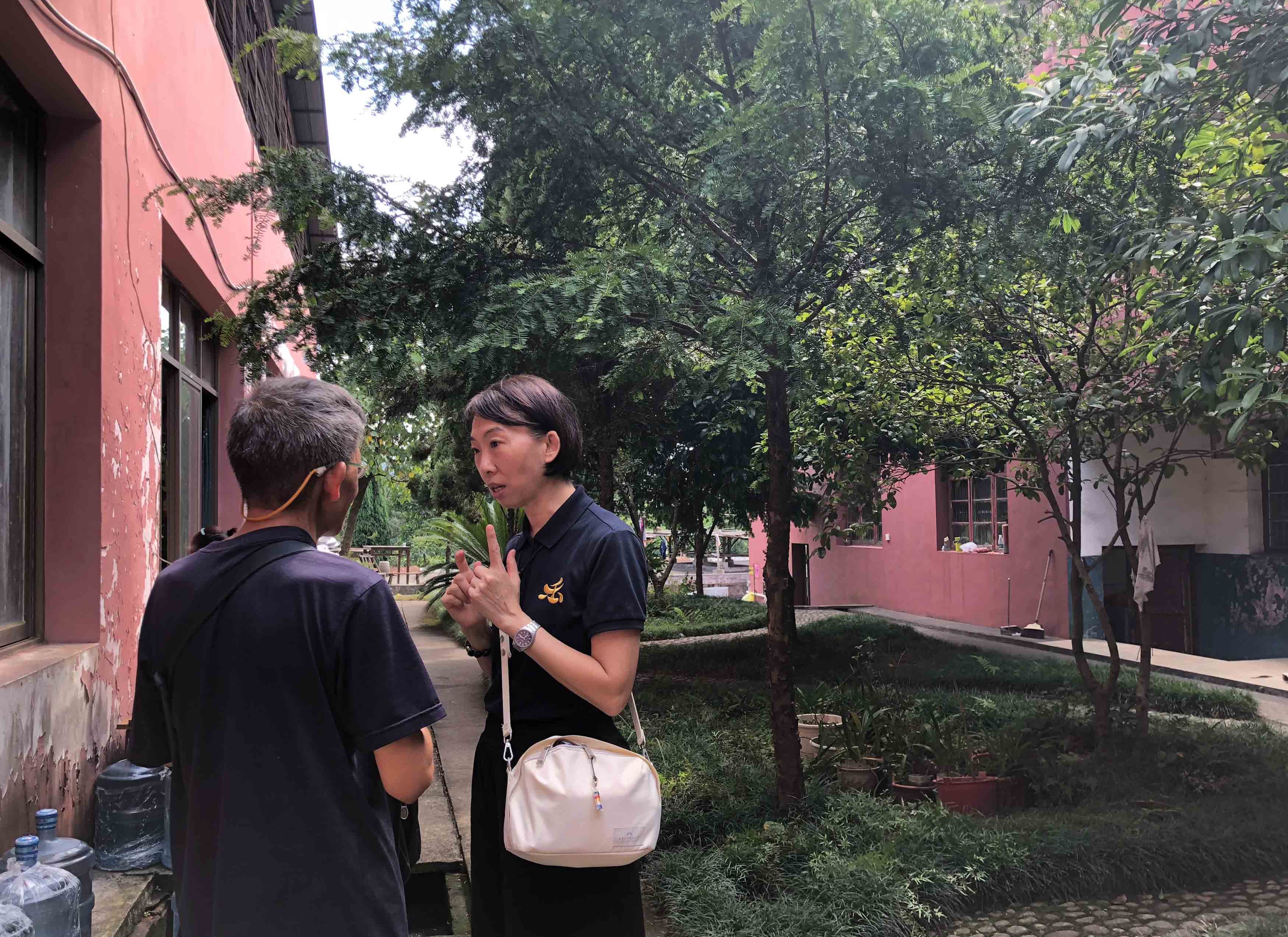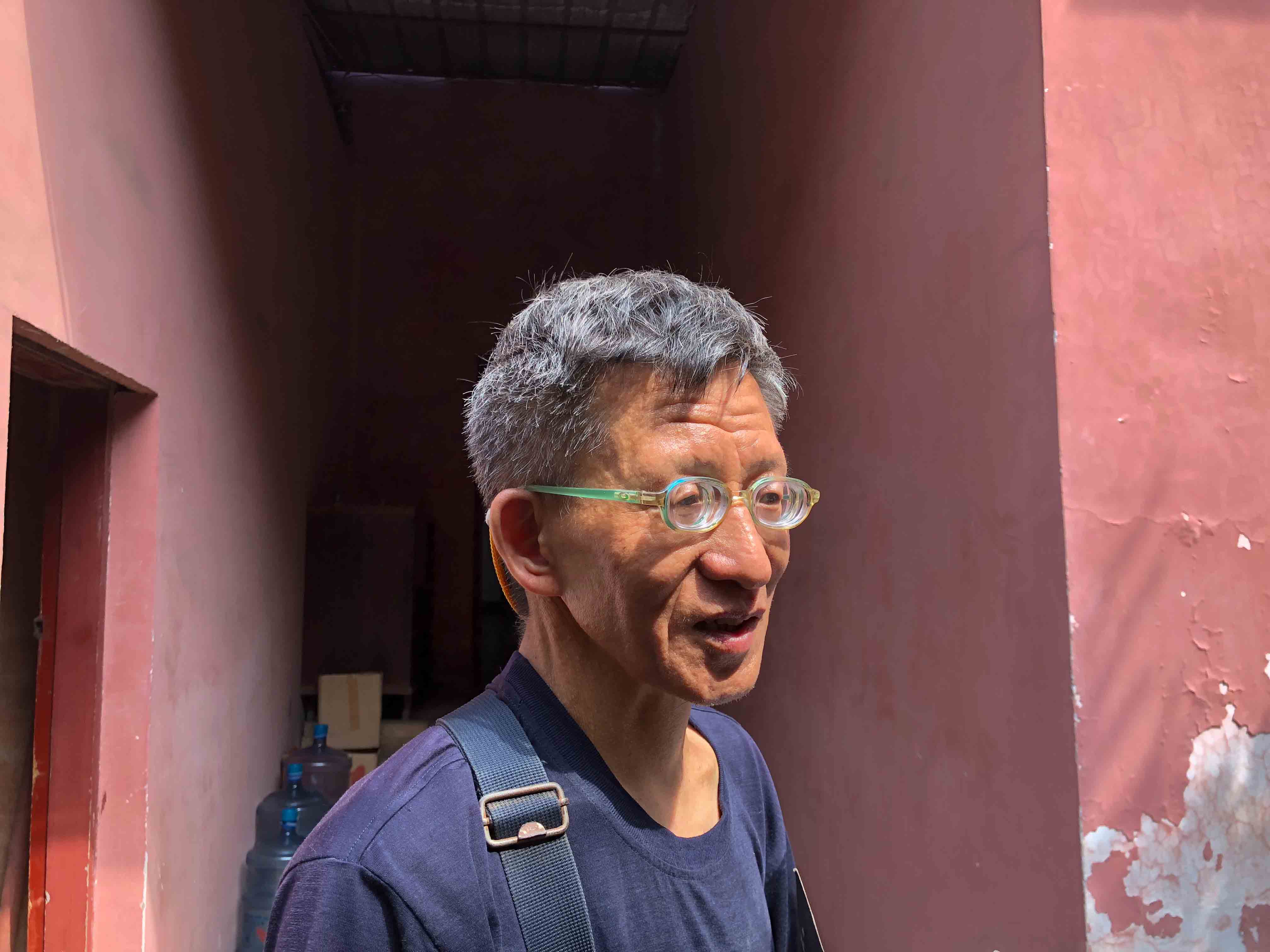 上法下雲法師的追思法會小休期間,當地村民俞先生看到 師父,便走過來與 師父傾談。54歲的俞先生說一般可稱呼他「小俞子」;小俞子說以前他膽子很小,十多年前在金輪寺接觸到《彌陀經》,之後開始每天誦念,便不再感到害怕了。