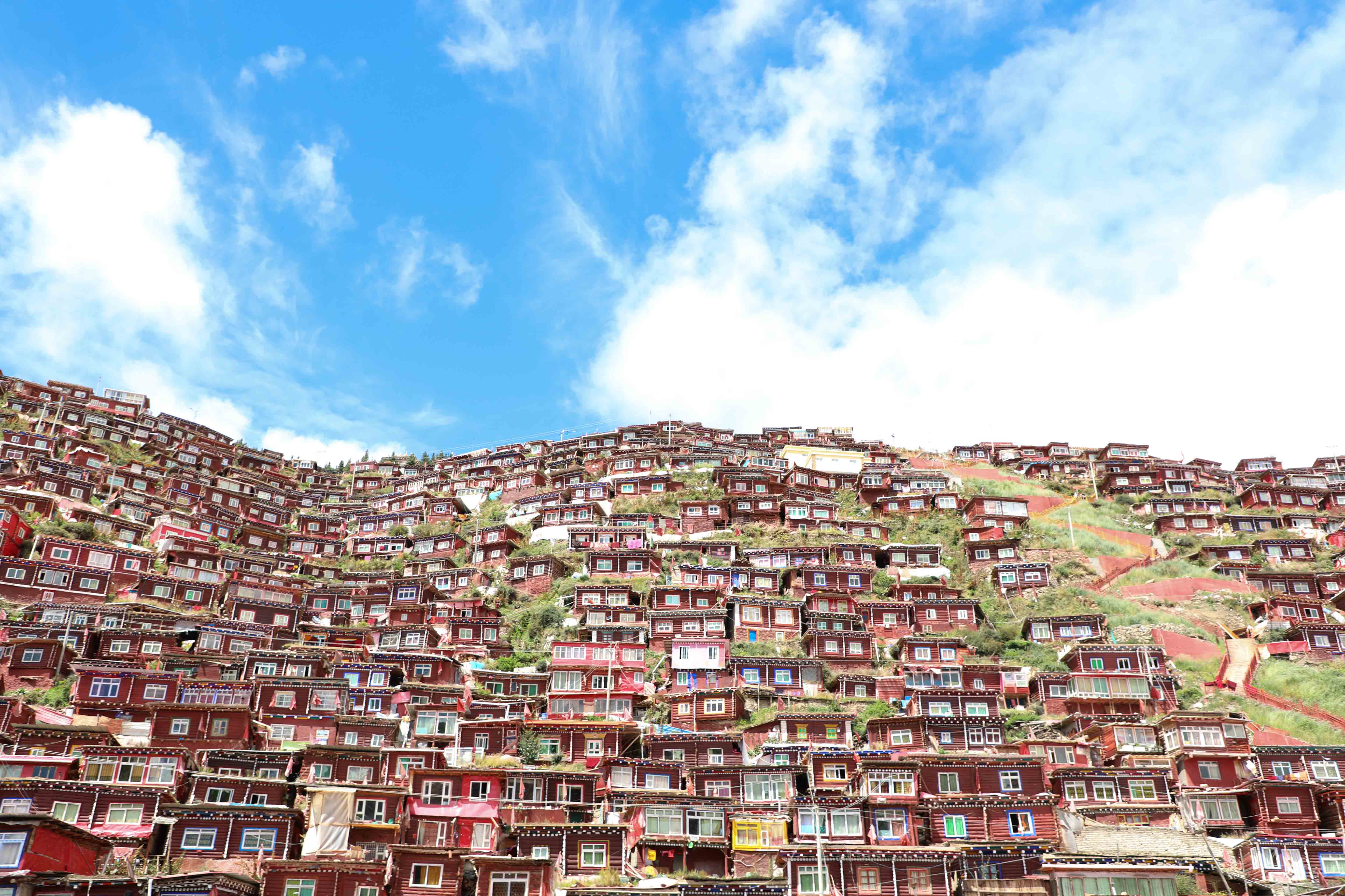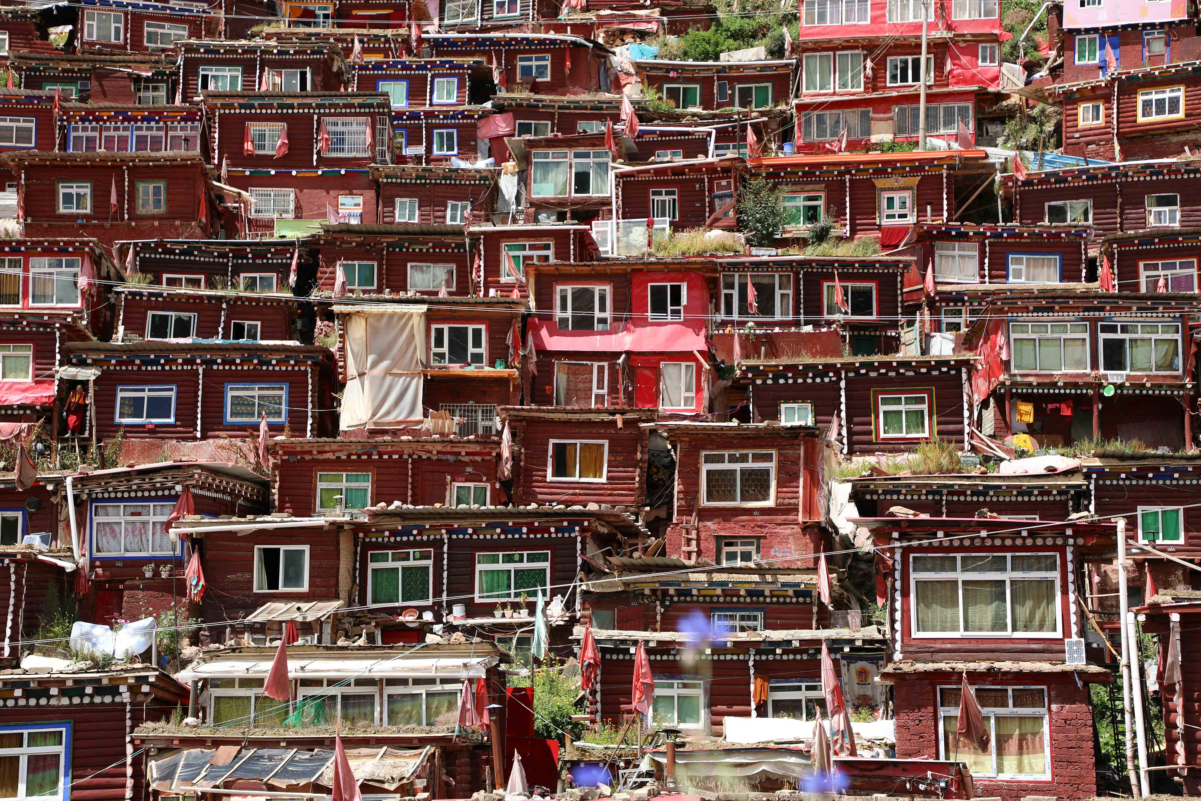 位於四川色達海拔3700米的喇榮五明佛學院是世界上最大的藏傳佛學院,一間間的小木棚屋是成千上萬修行者的宿舍。