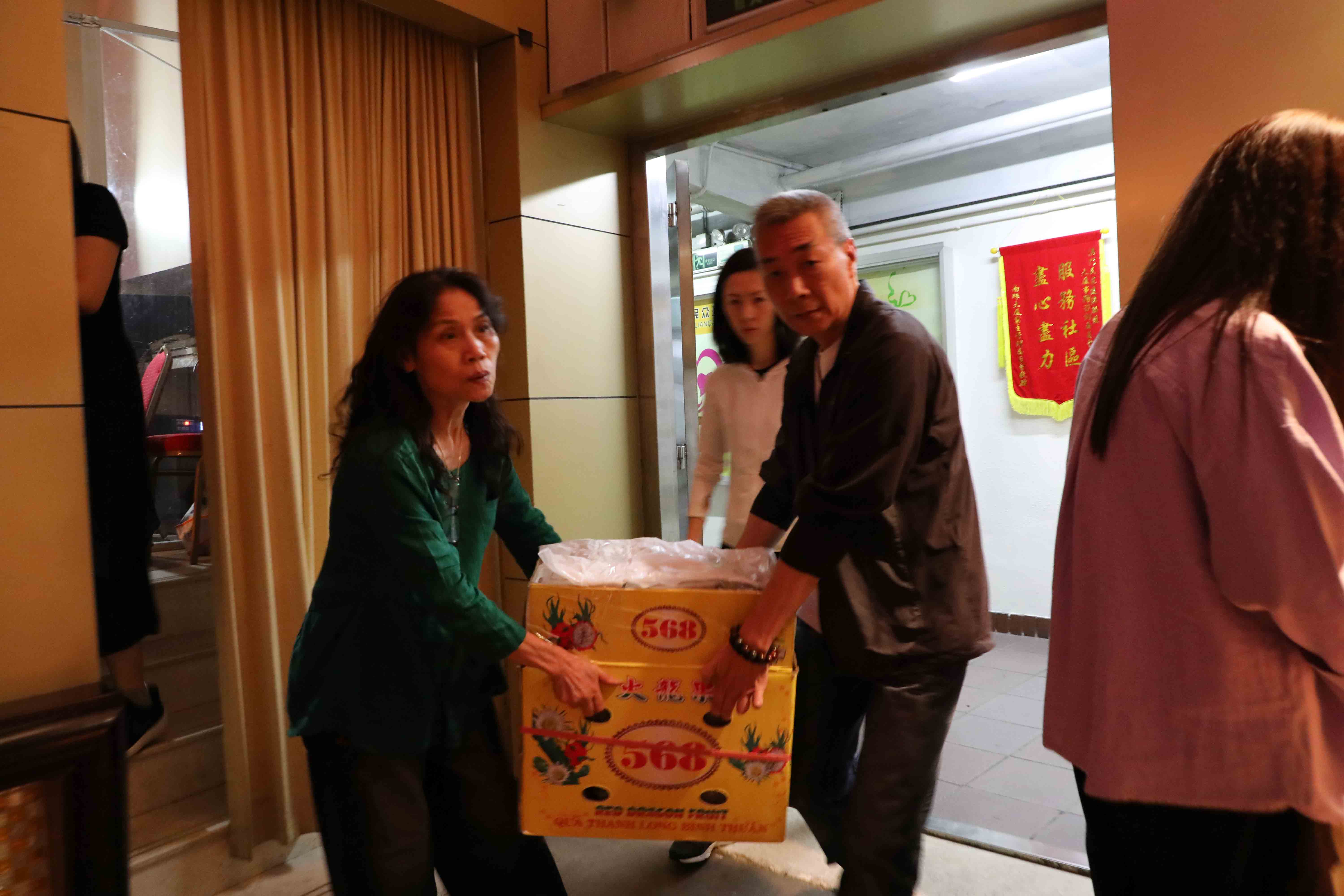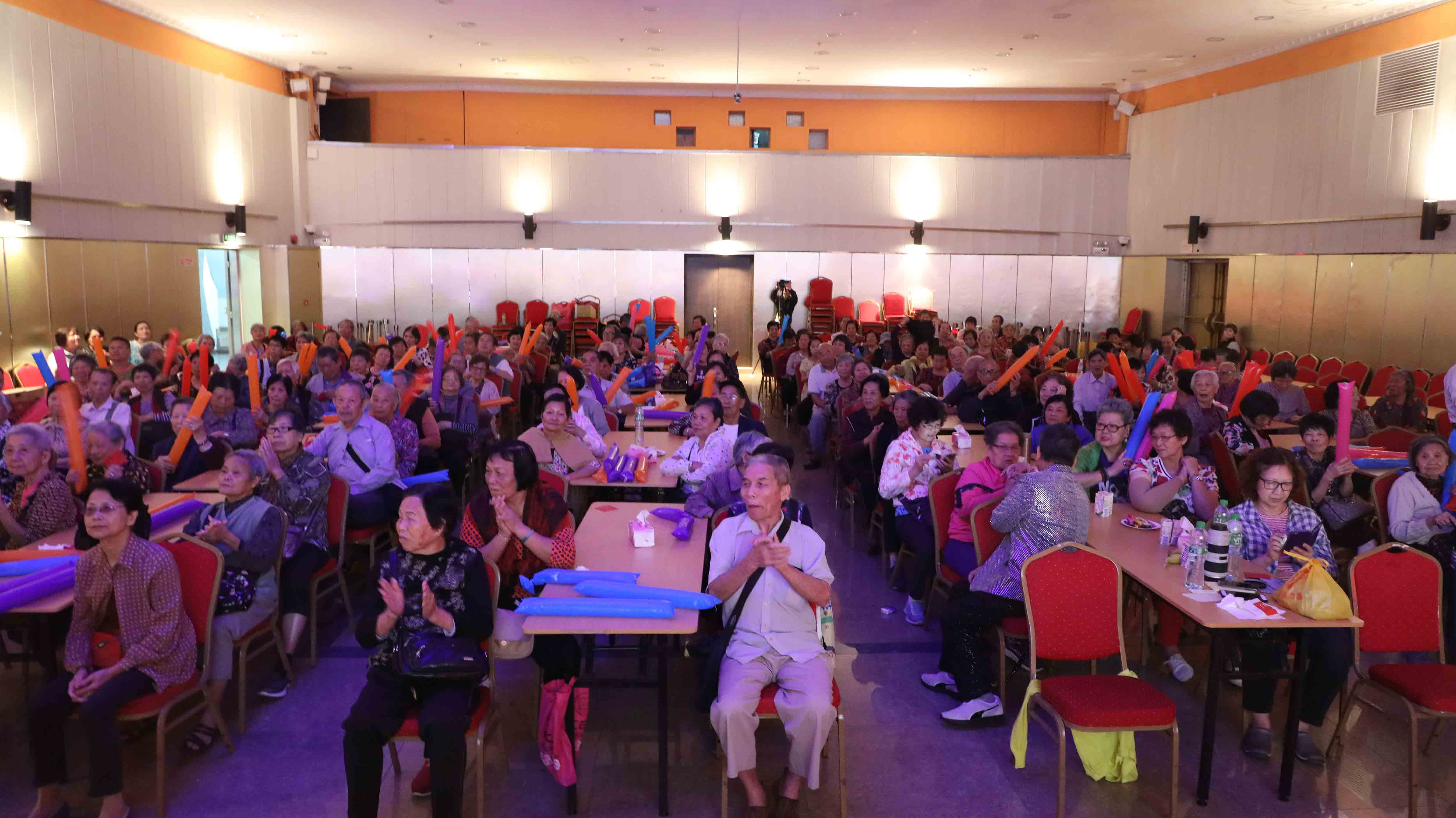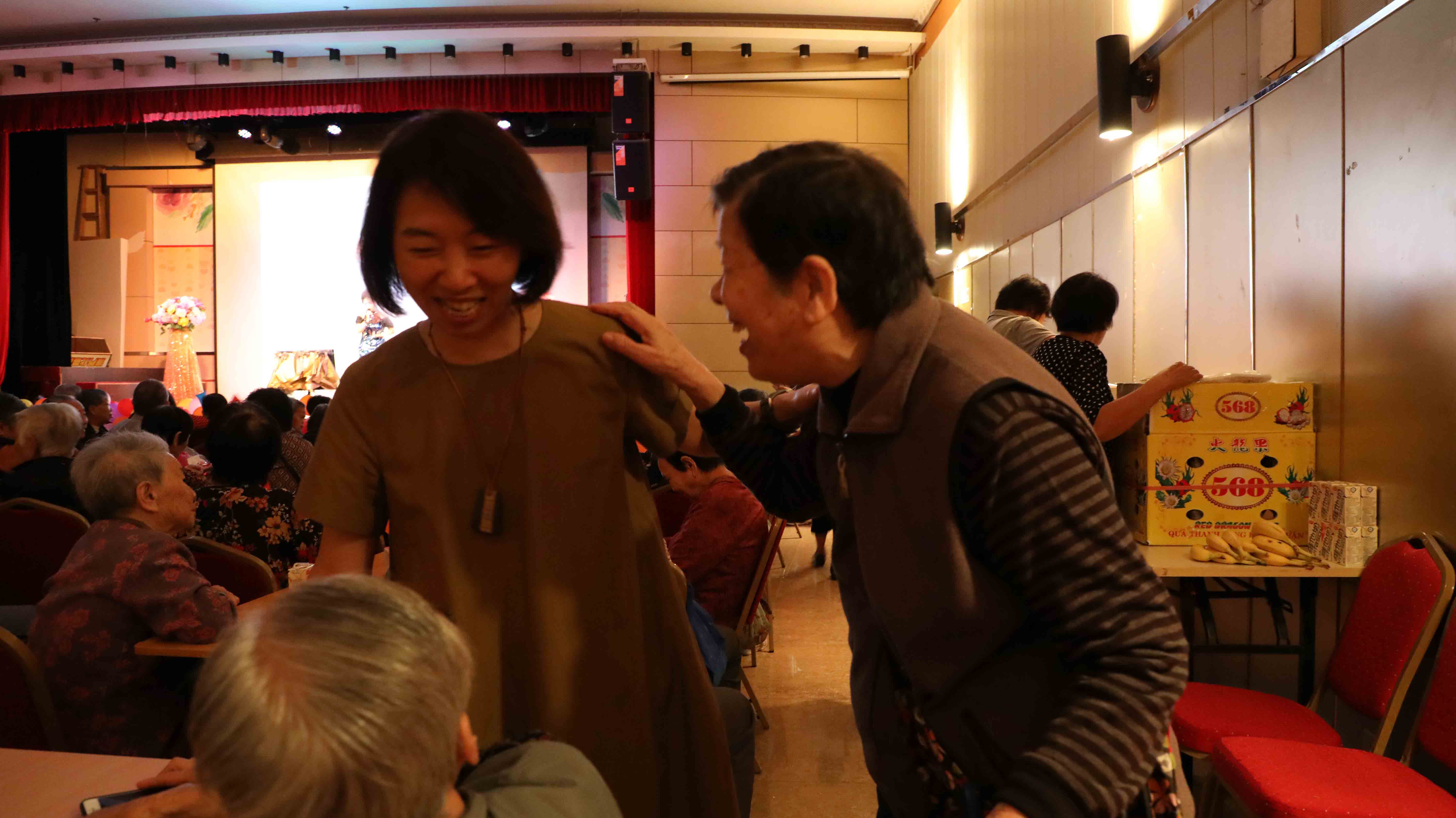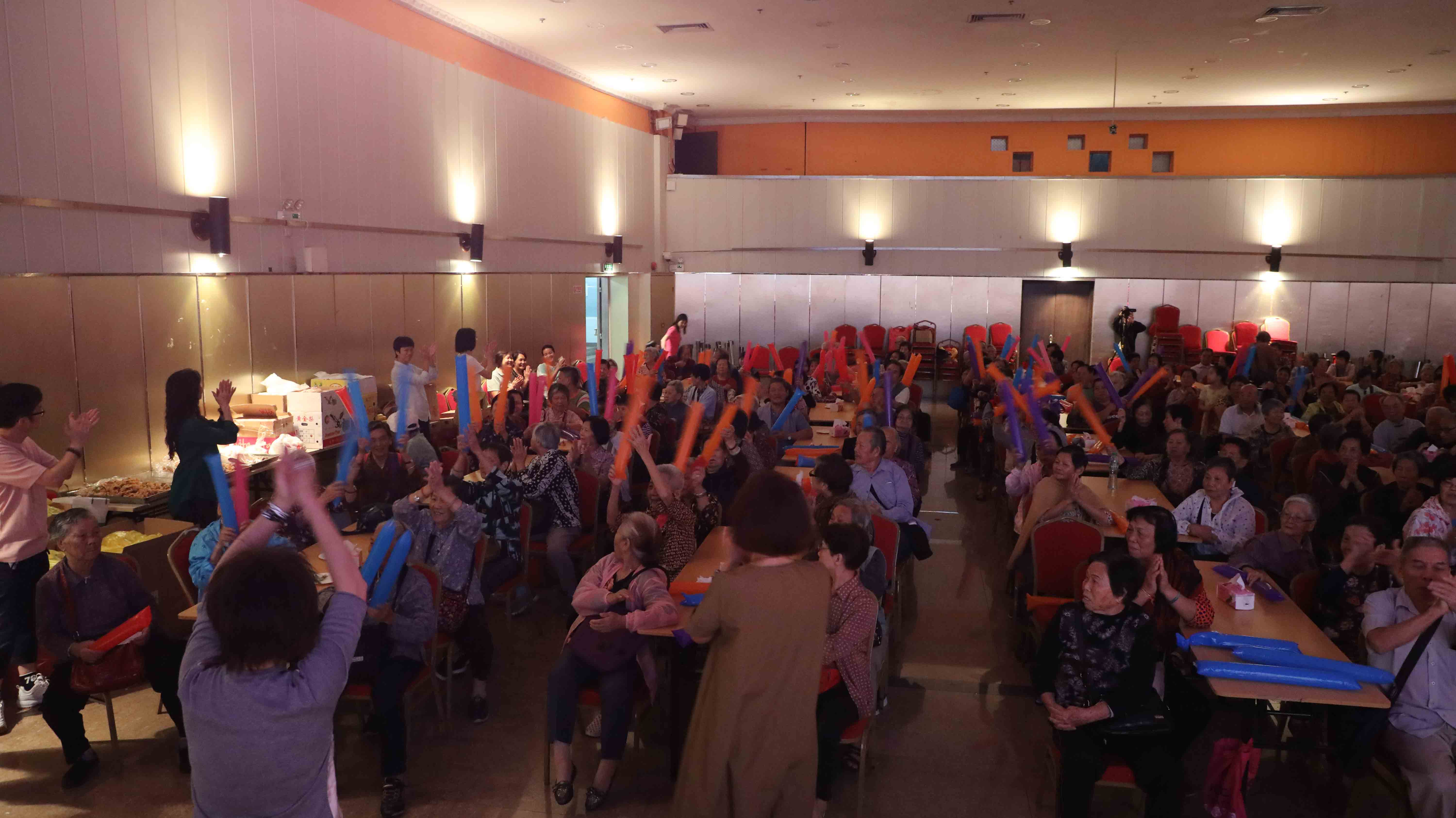精心安排歌唱節目外, 師父還準備了現場小食、紙包飲品等,讓長者們一邊欣賞表演一邊享用;另外亦如去年,每位參與的長者觀眾均獲一份小小結緣品、和一份晚餐盒。表演中段,師兄師姐幫手運送餐盒入會場。