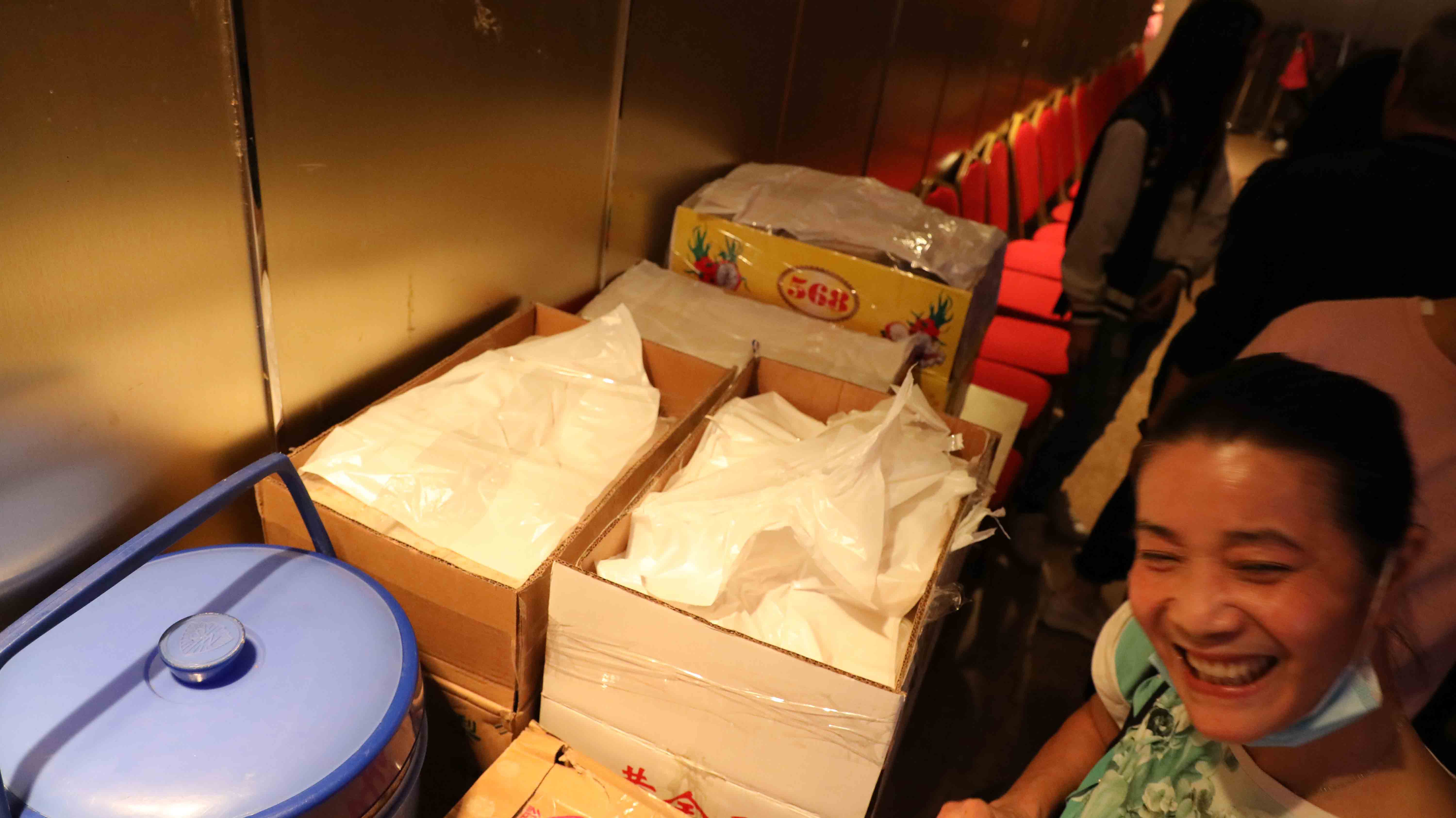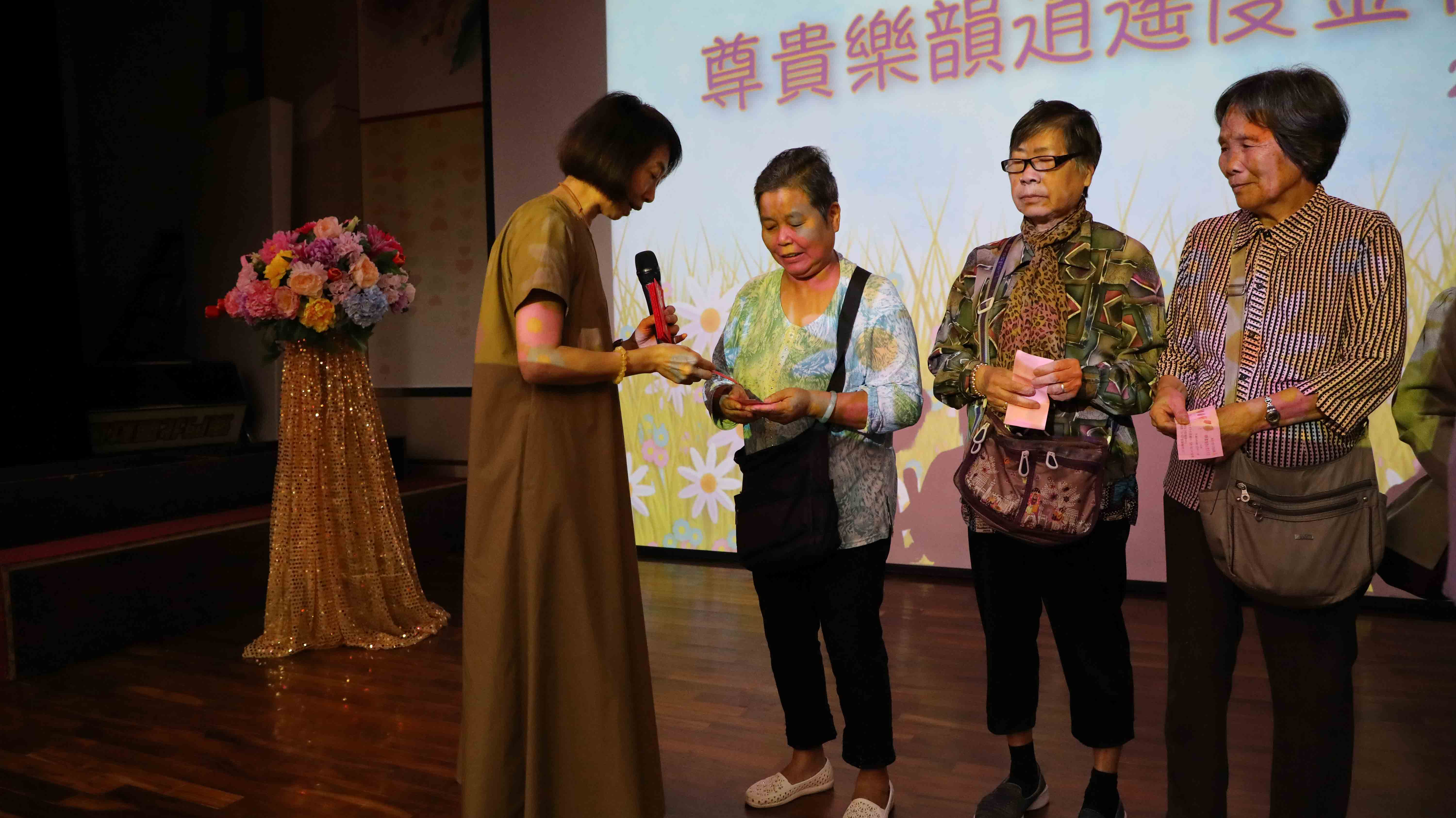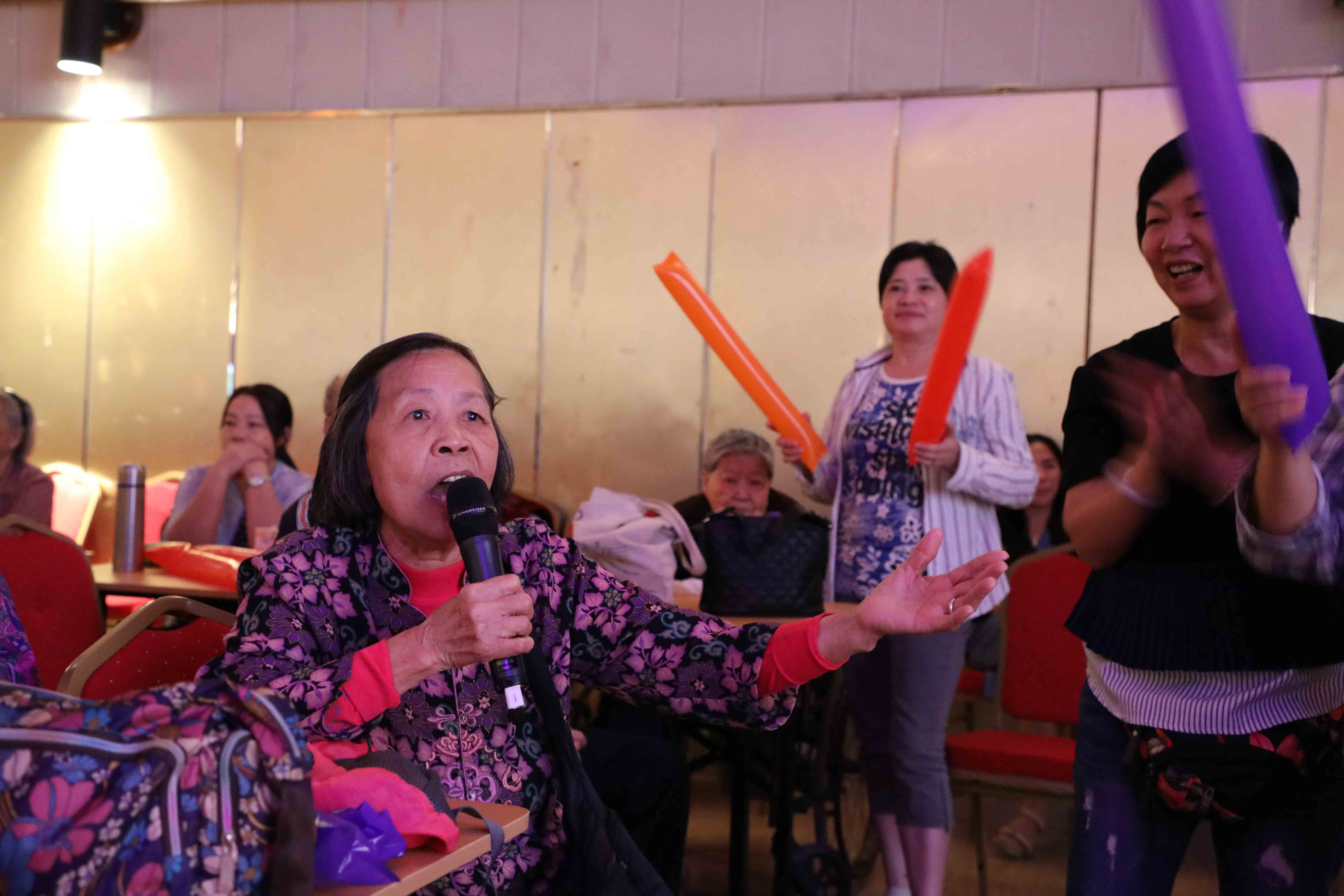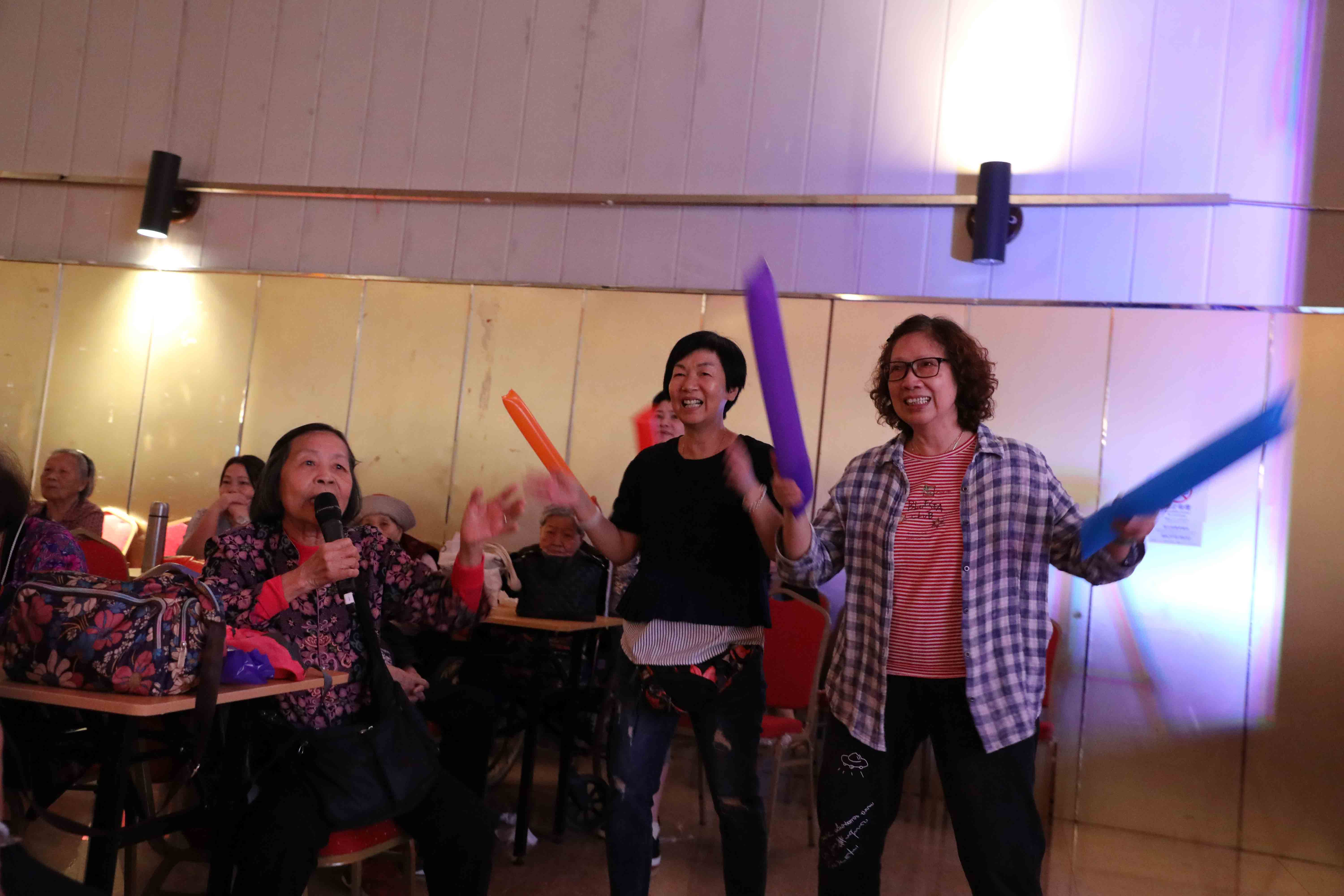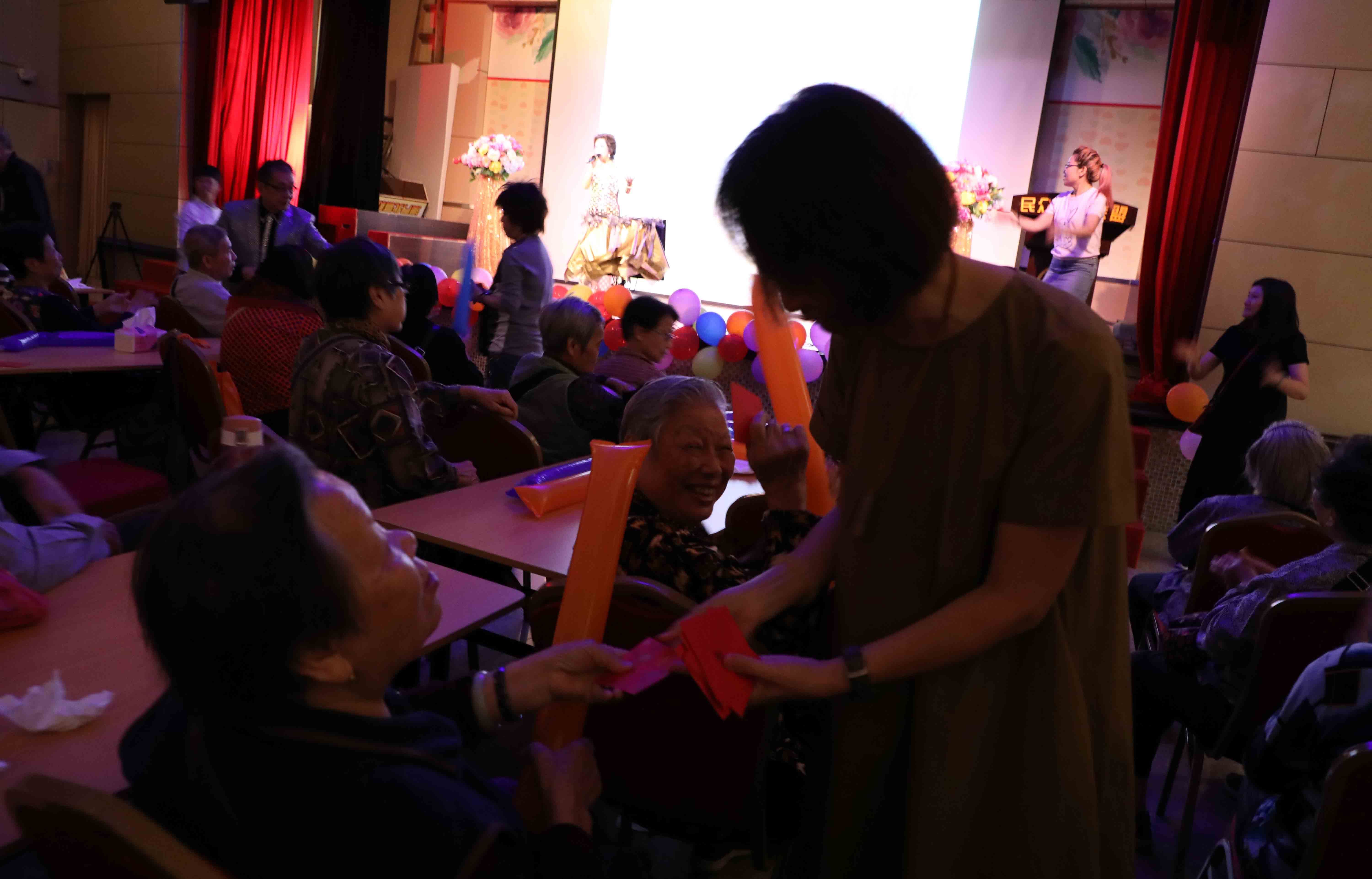 精心安排歌唱節目外, 師父還準備了現場小食、紙包飲品等,讓長者們一邊欣賞表演一邊享用;另外亦如去年,每位參與的長者觀眾均獲一份小小結緣品、和一份晚餐盒。表演中段,師兄師姐幫手運送餐盒入會場。