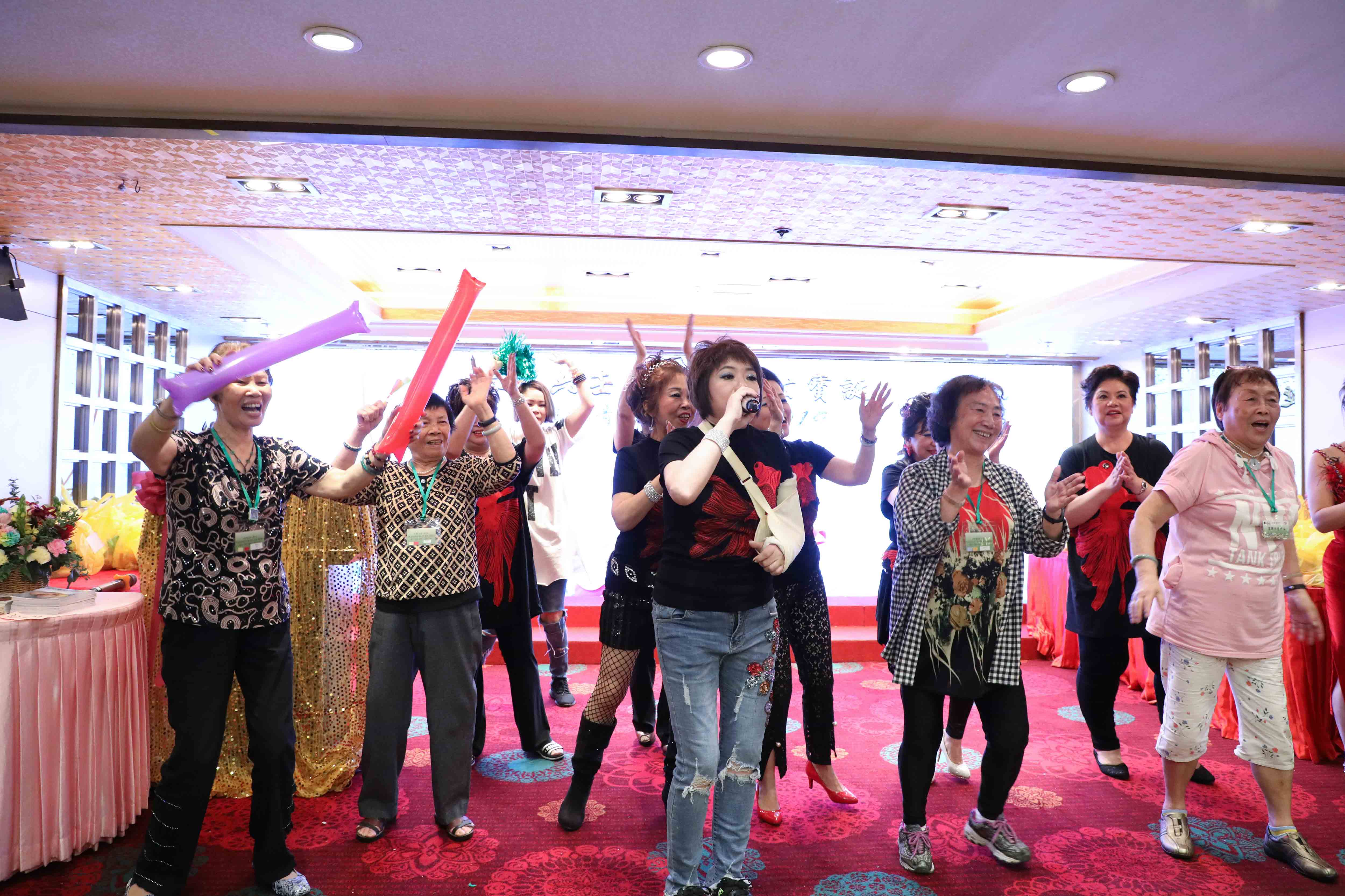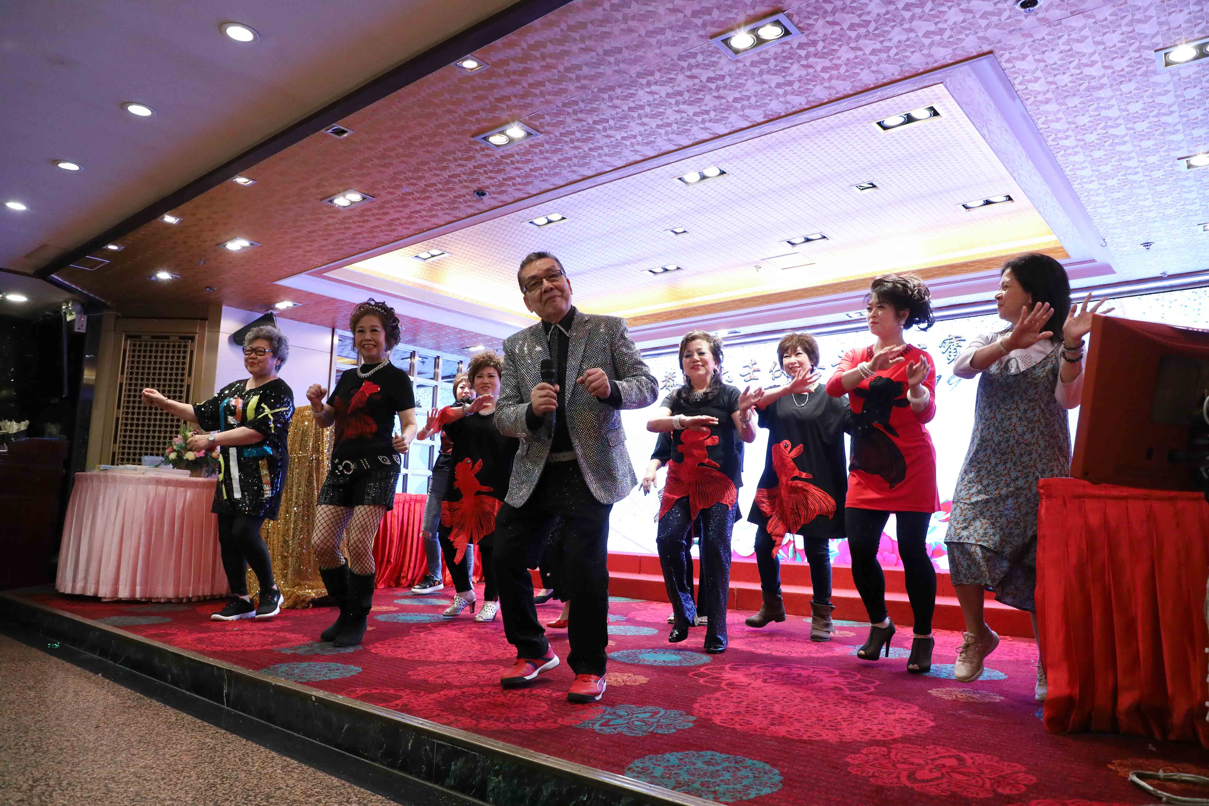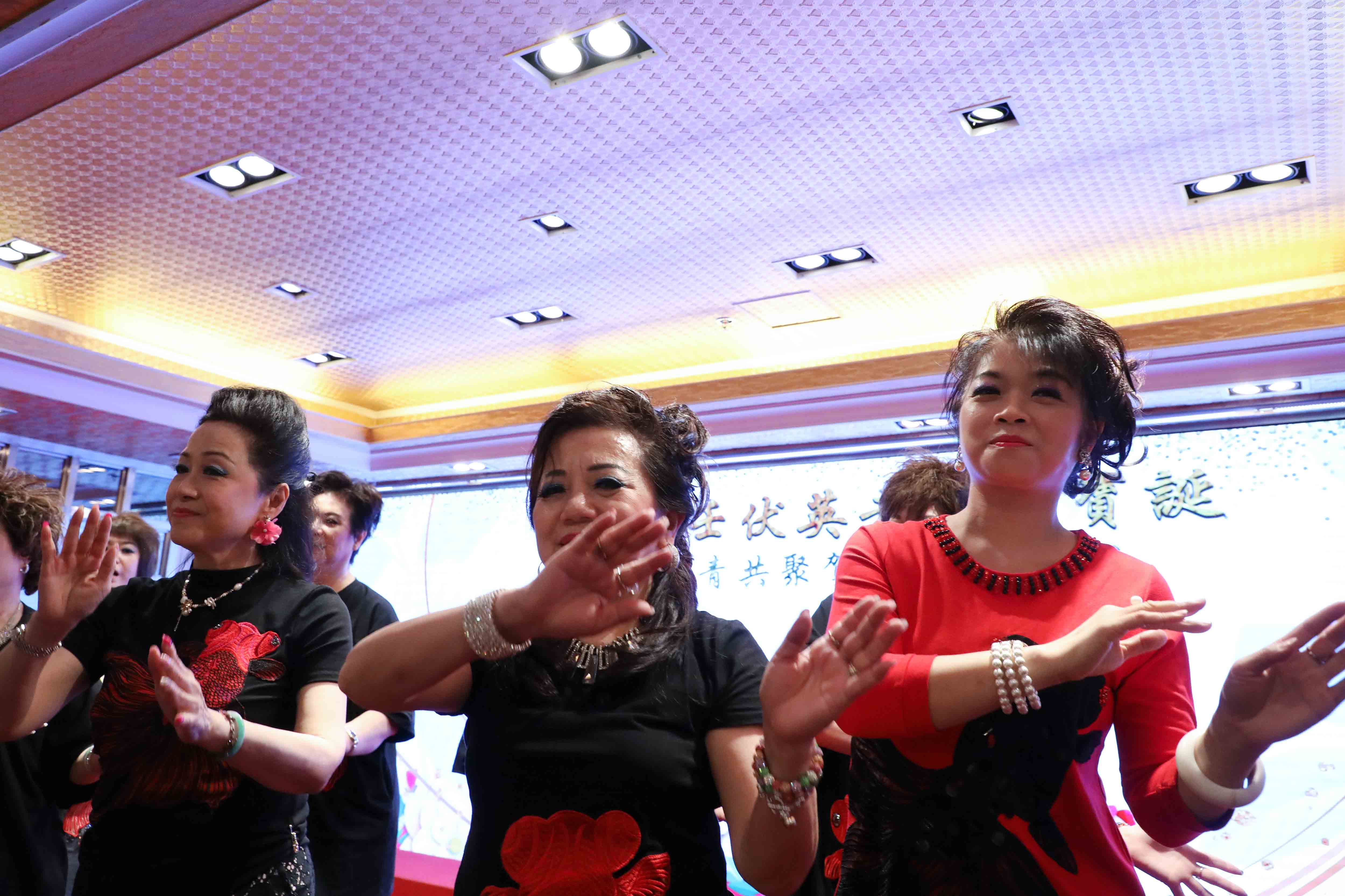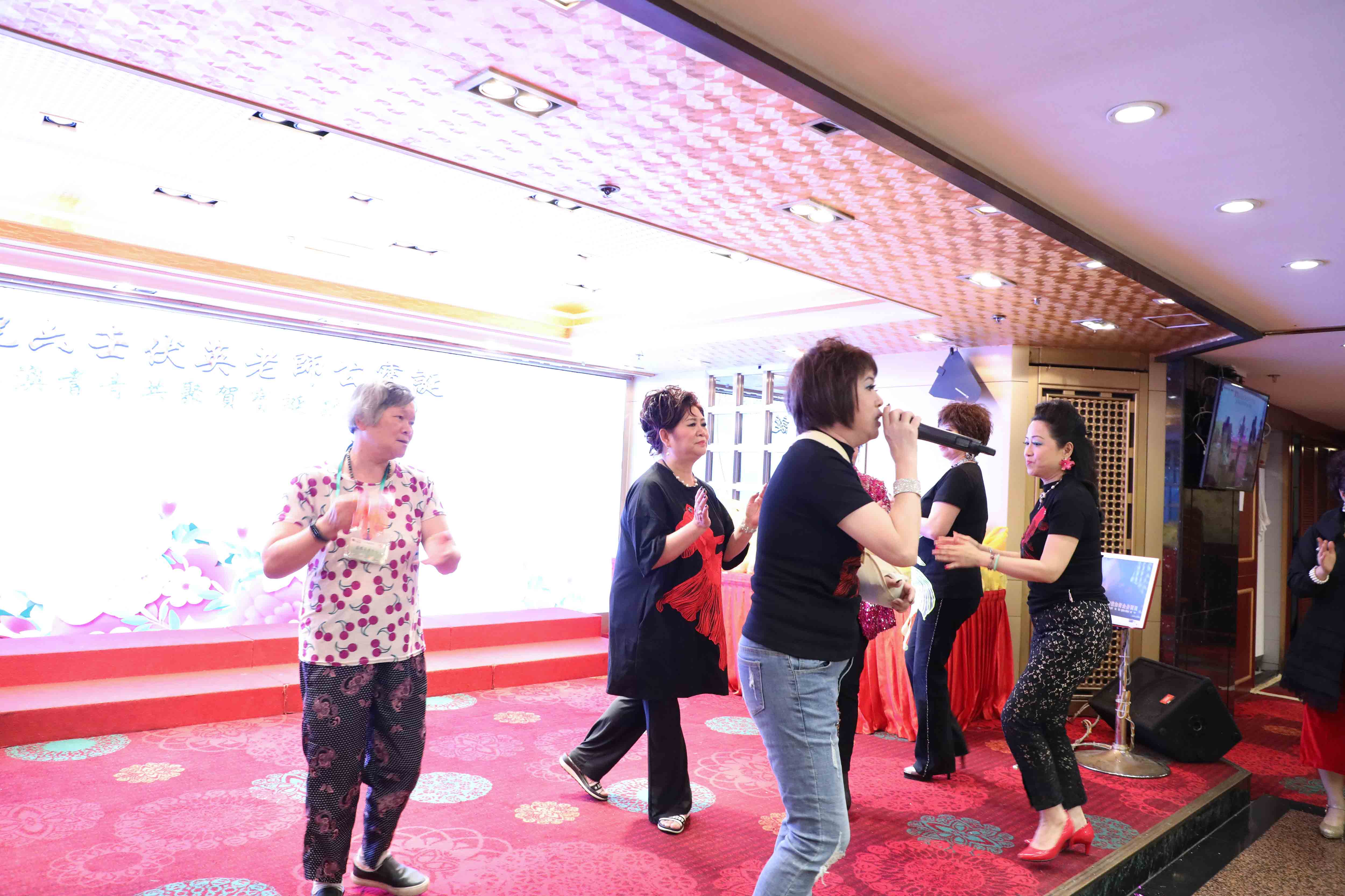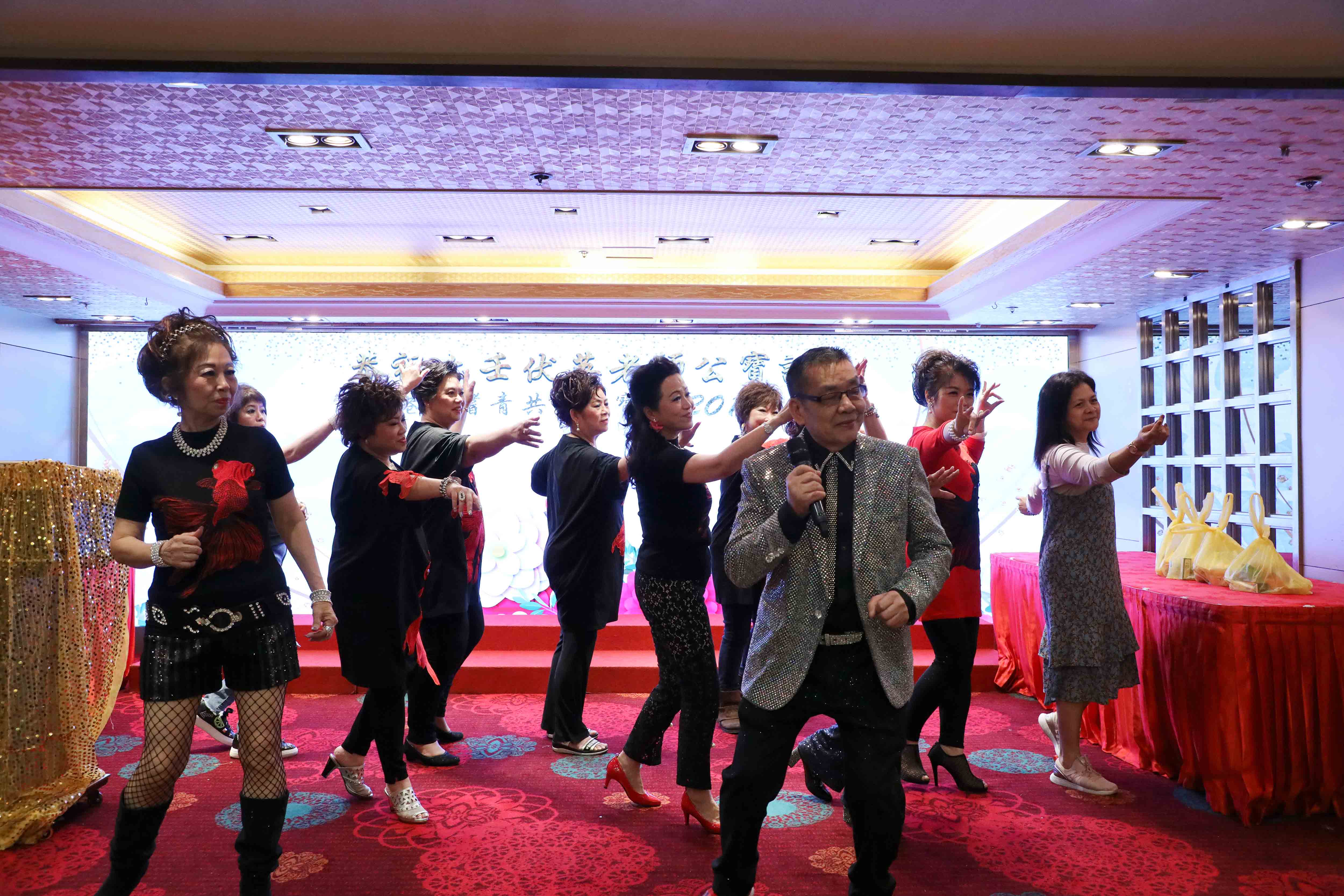 抽獎完畢,演出繼續,眾師兄弟上台伴舞打氣;同時,在一首歌的時間,「關注人」協助中獎的長者慢慢步出台前。