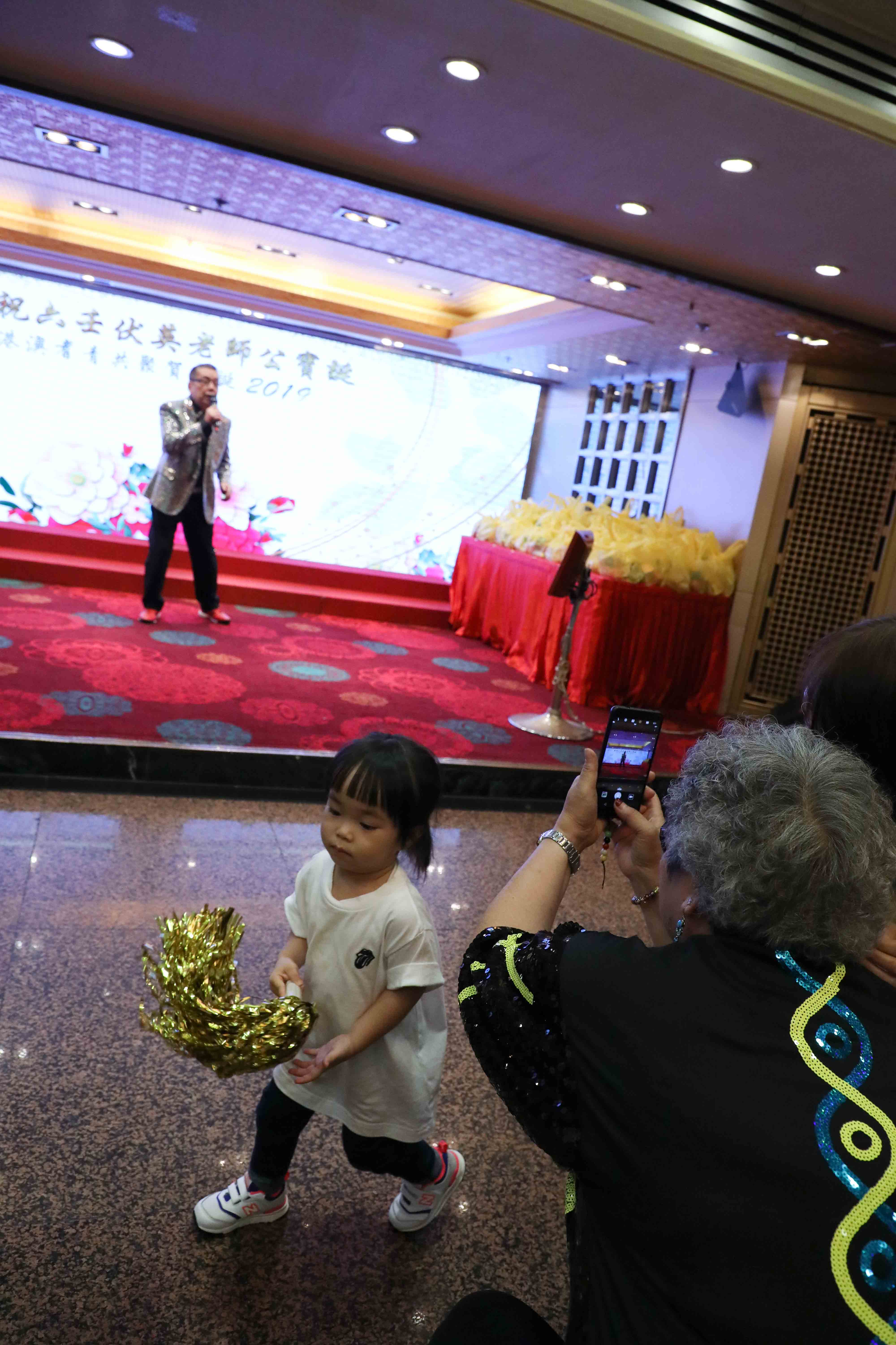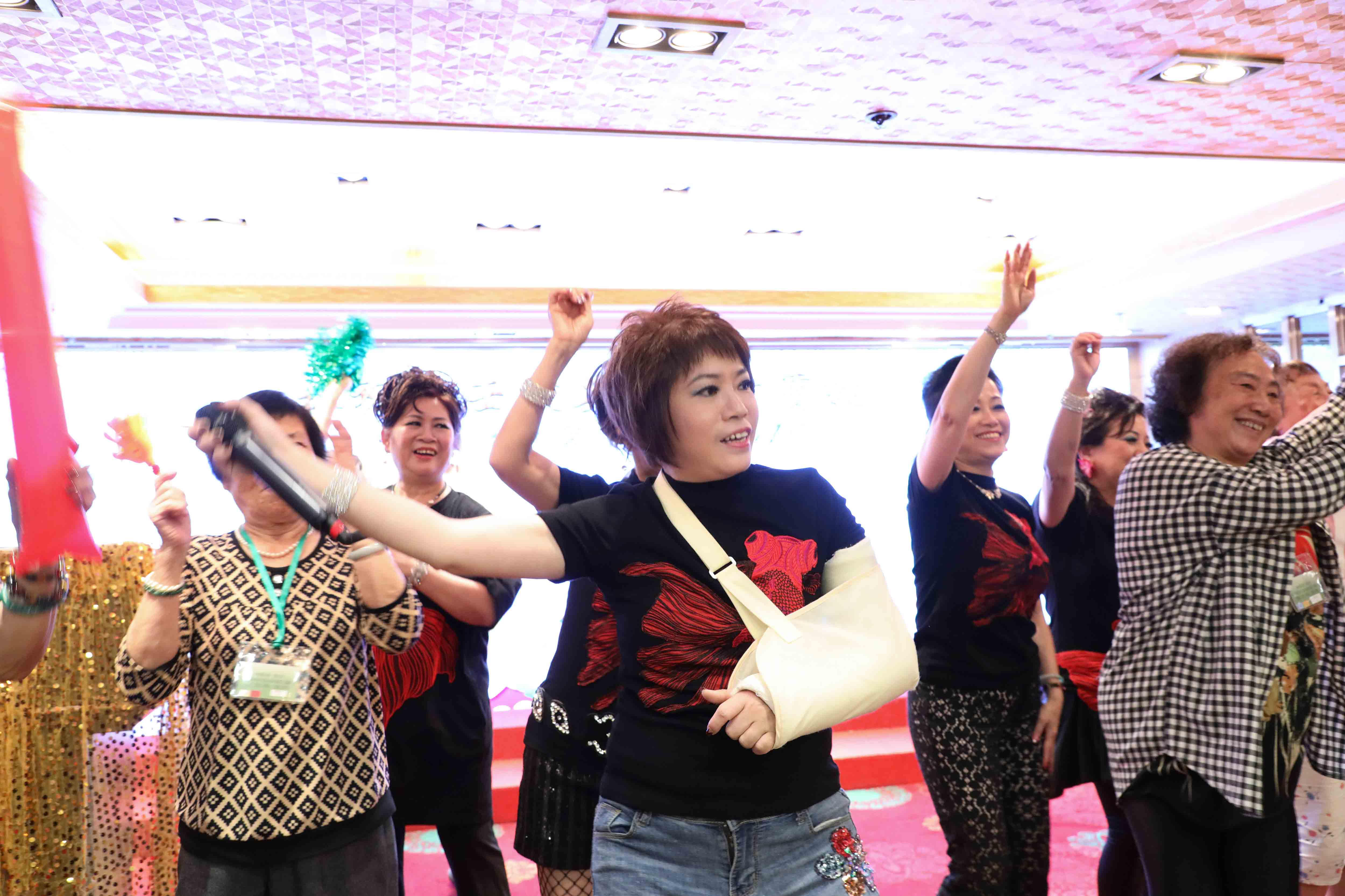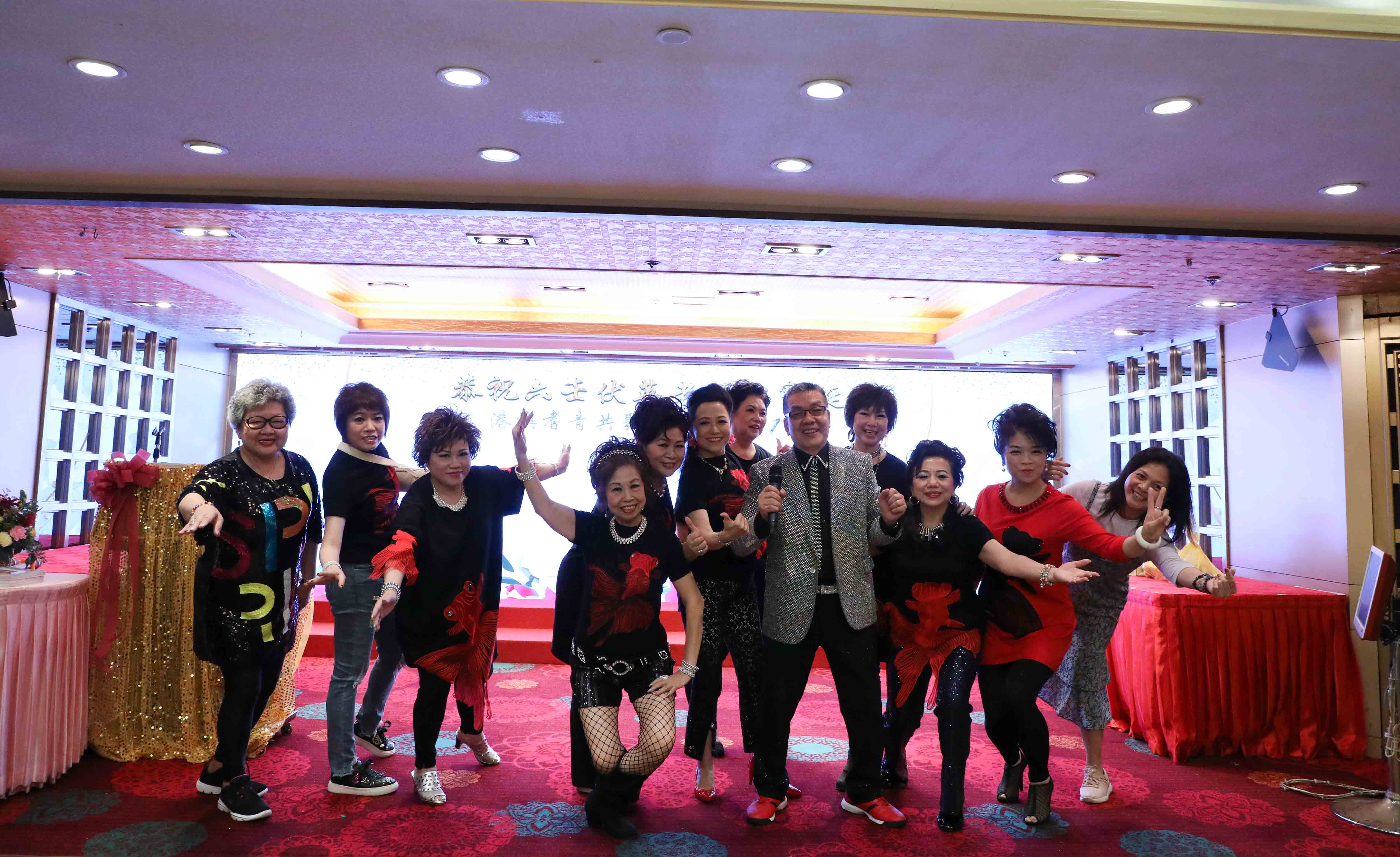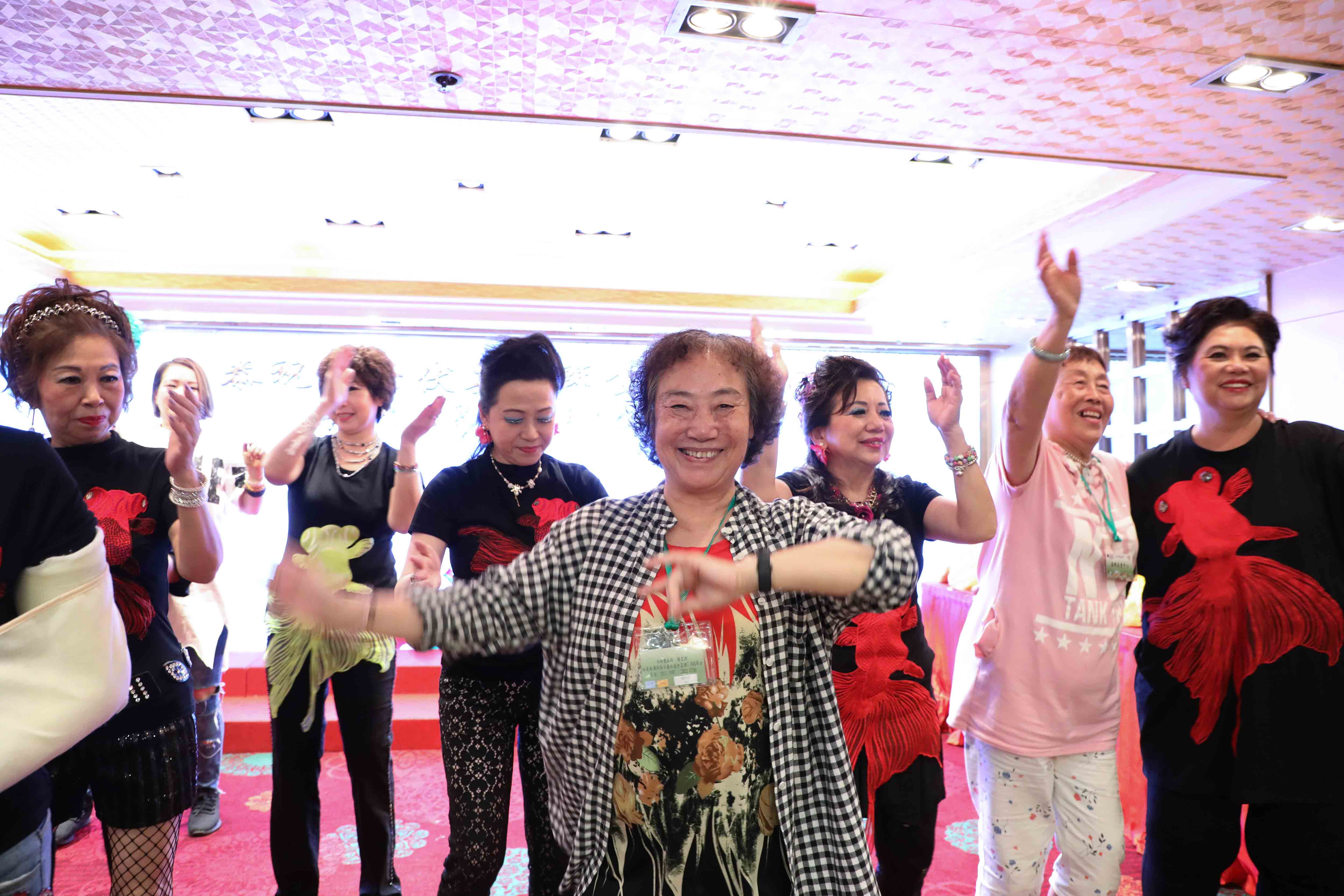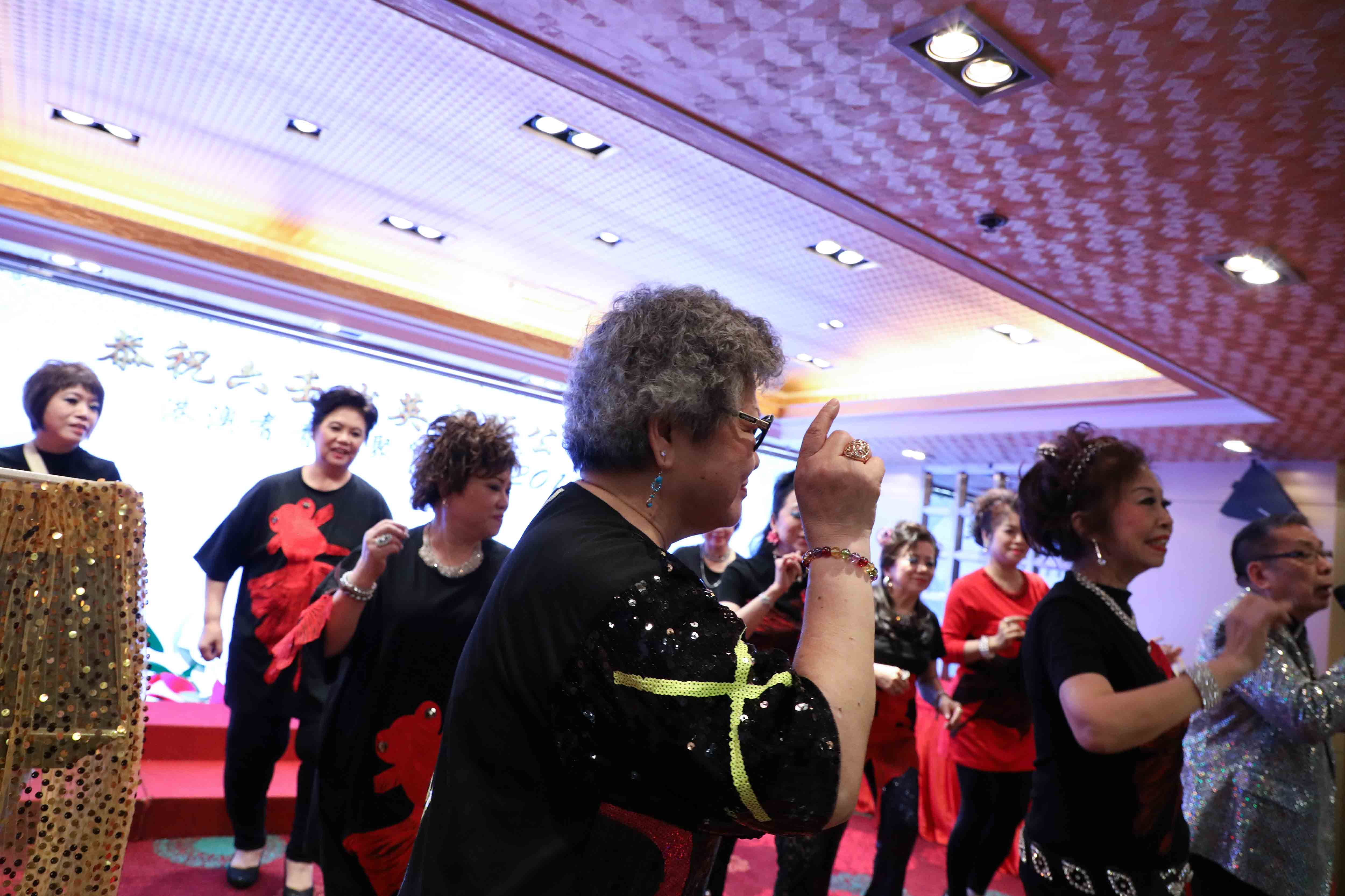 抽獎完畢,演出繼續,眾師兄弟上台伴舞打氣;同時,在一首歌的時間,「關注人」協助中獎的長者慢慢步出台前。