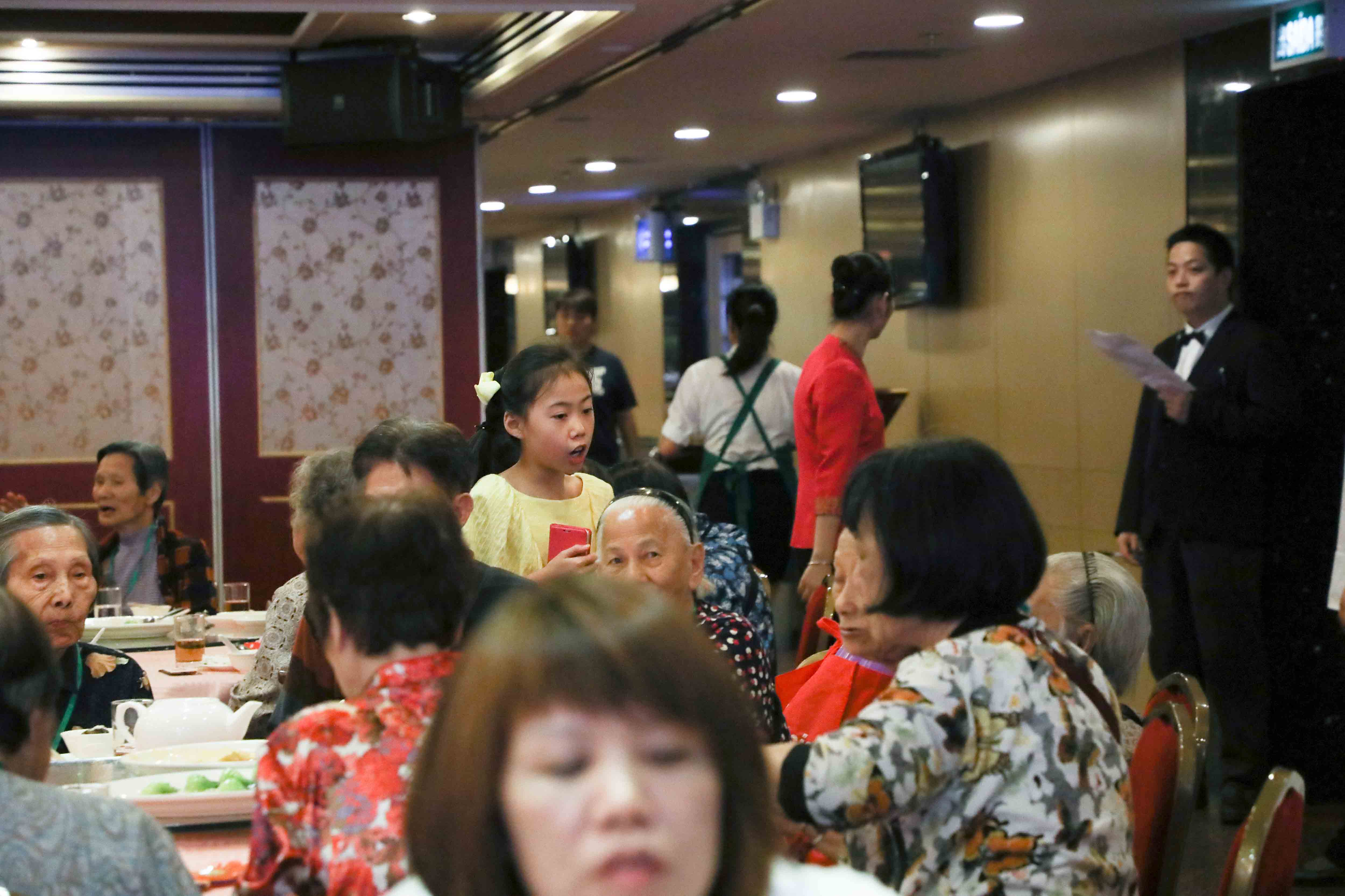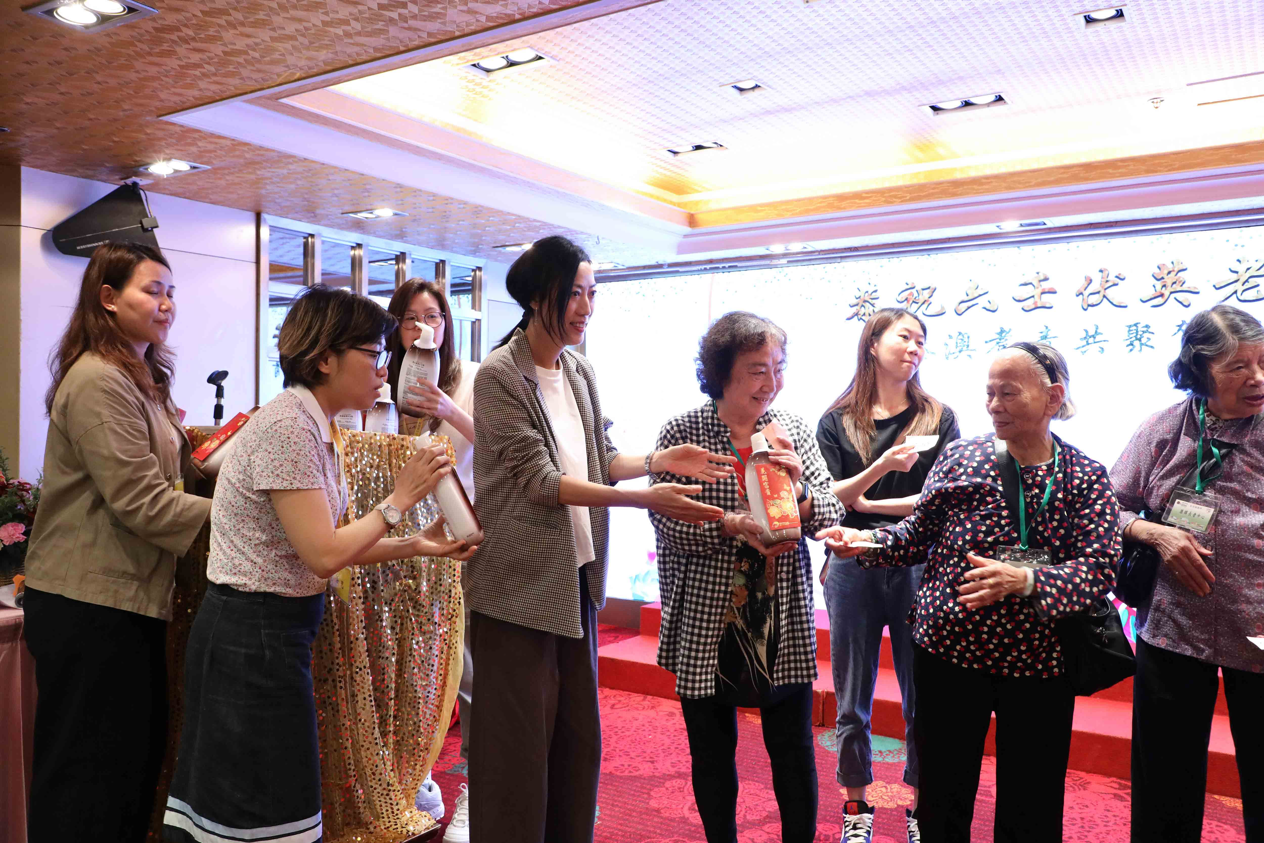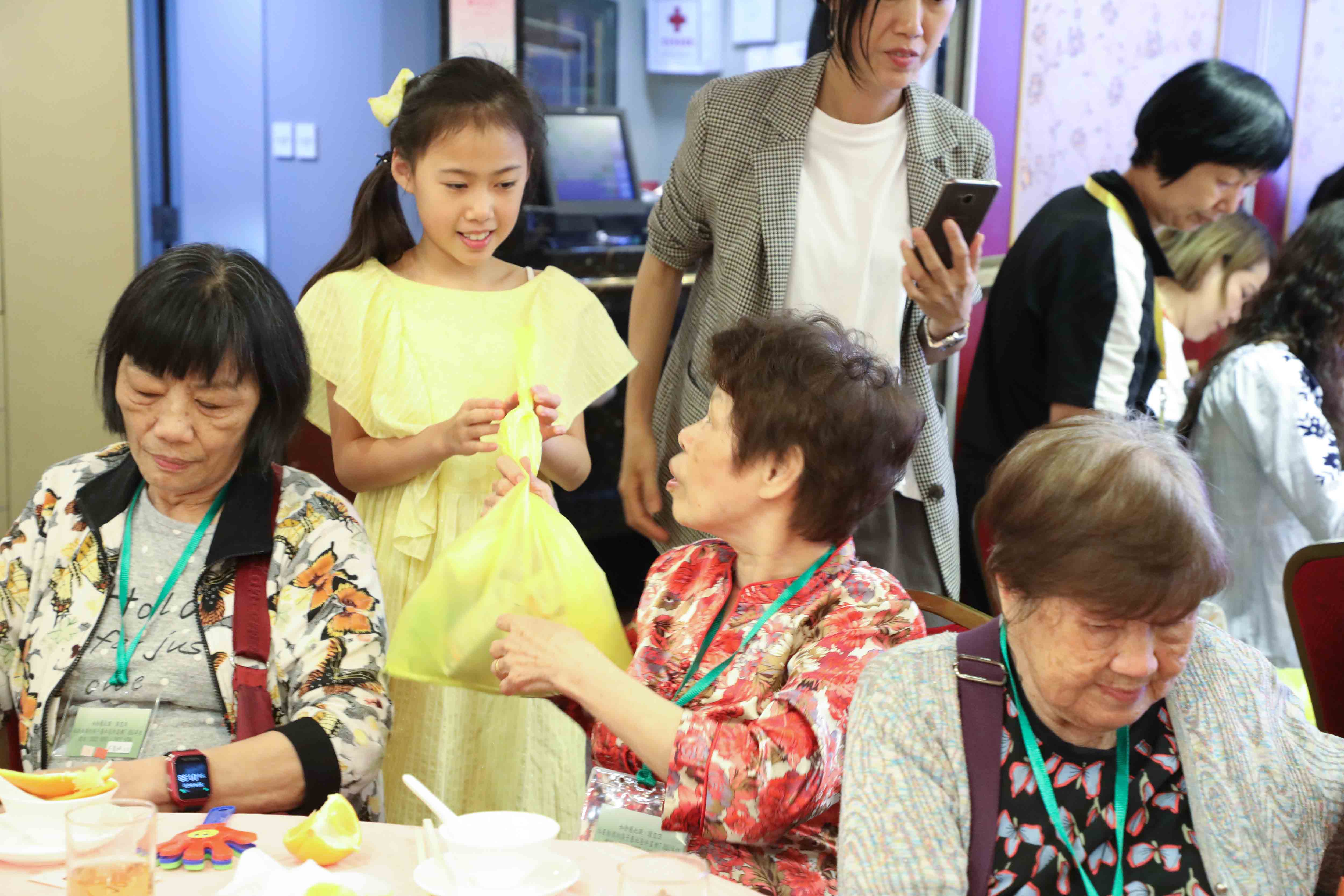 師父安排了弟子及善信分別擔當每圍的「關注人」,負責提示得獎的長者,感恩 師父!