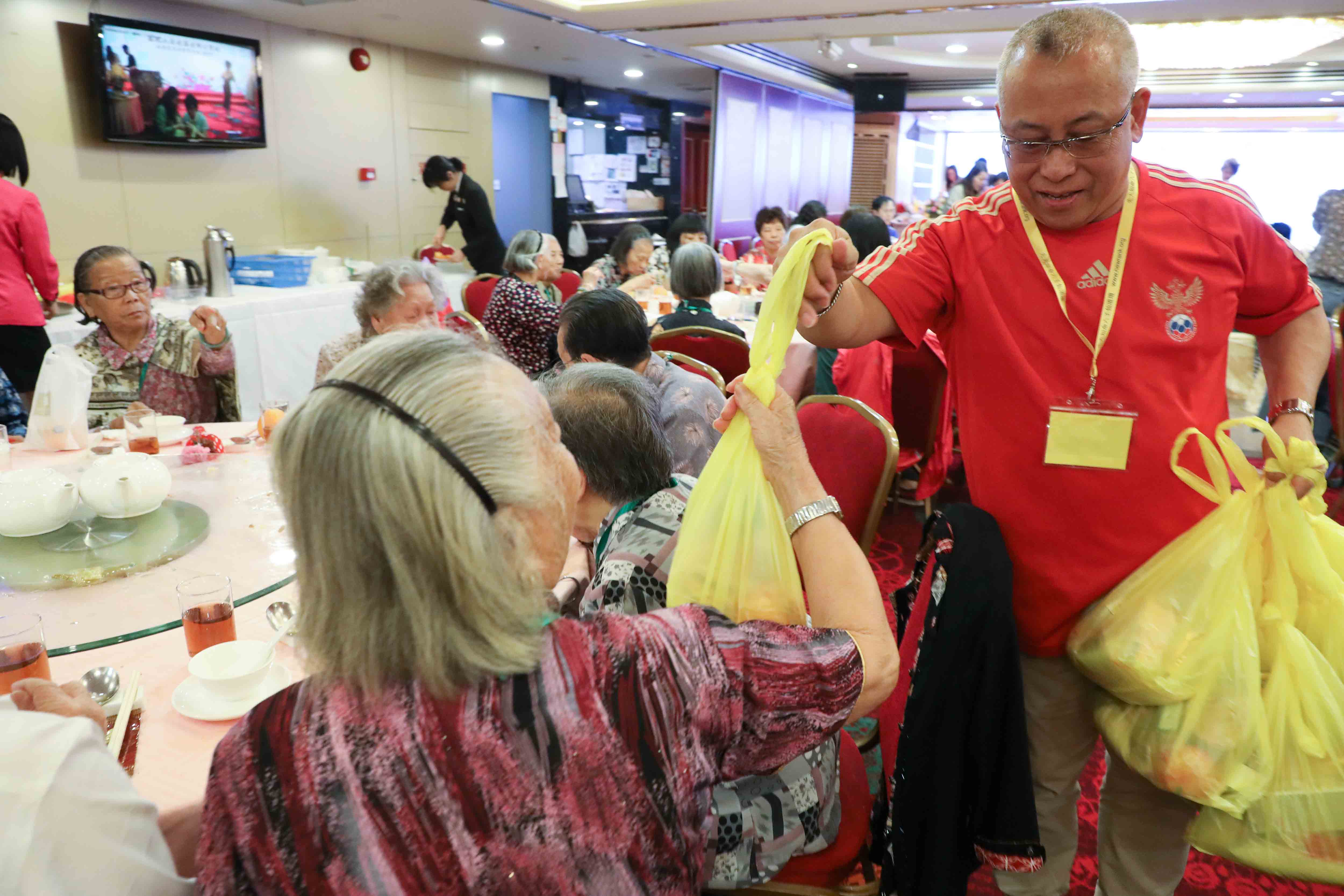 於齋宴完結前,「關注人」為每圍長者送上結緣禮品。感恩!