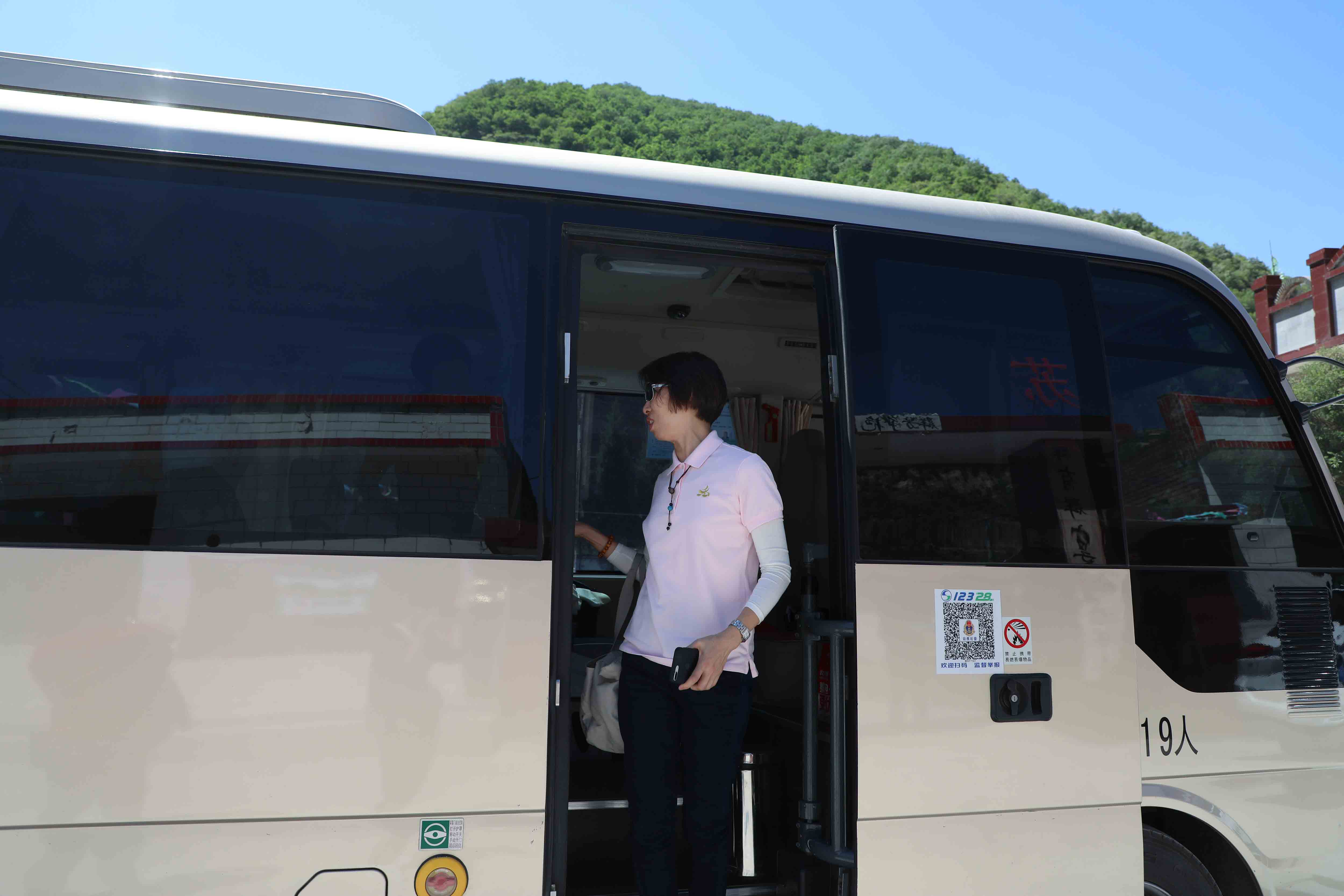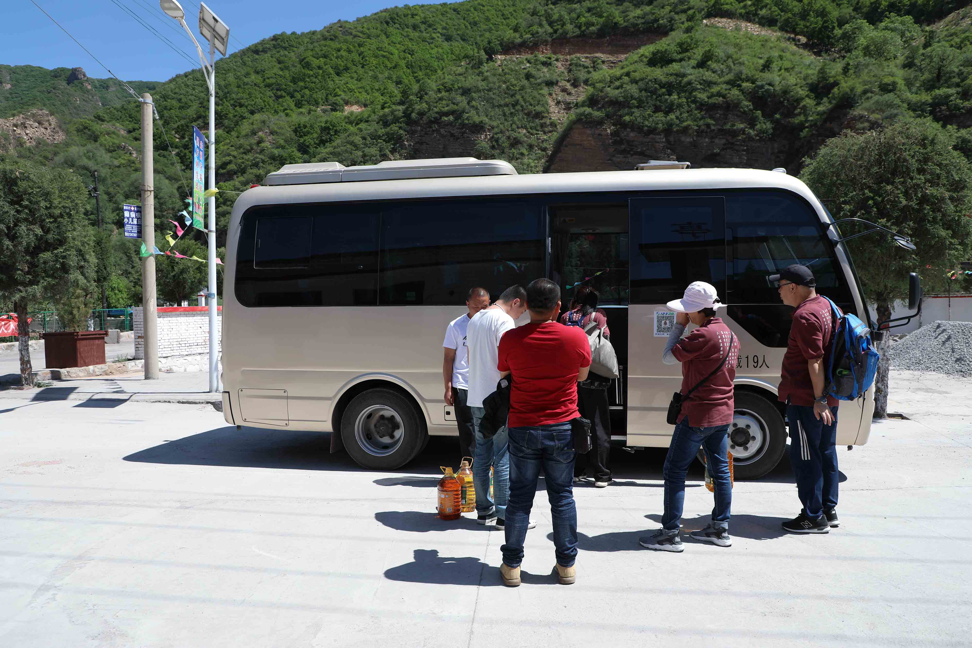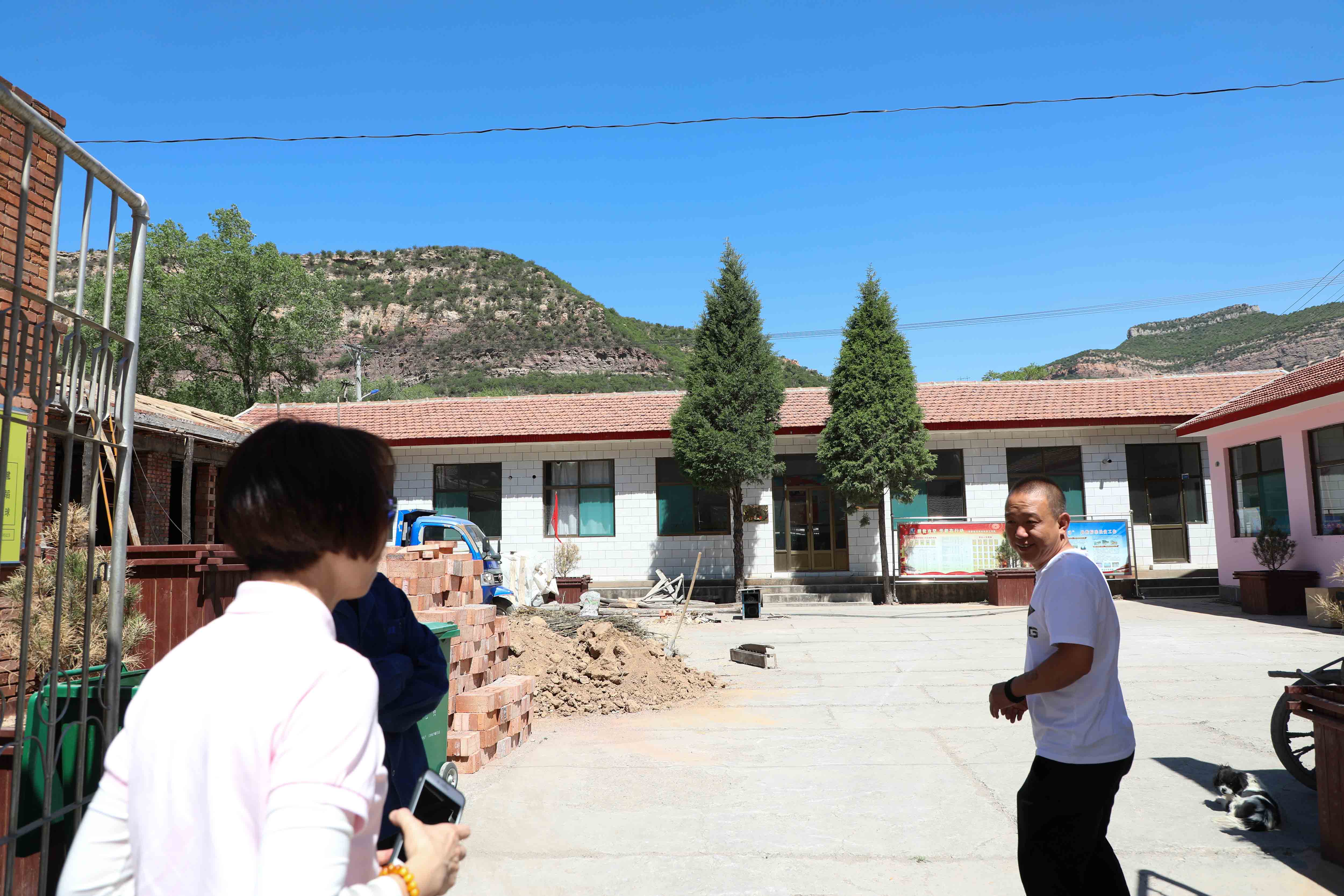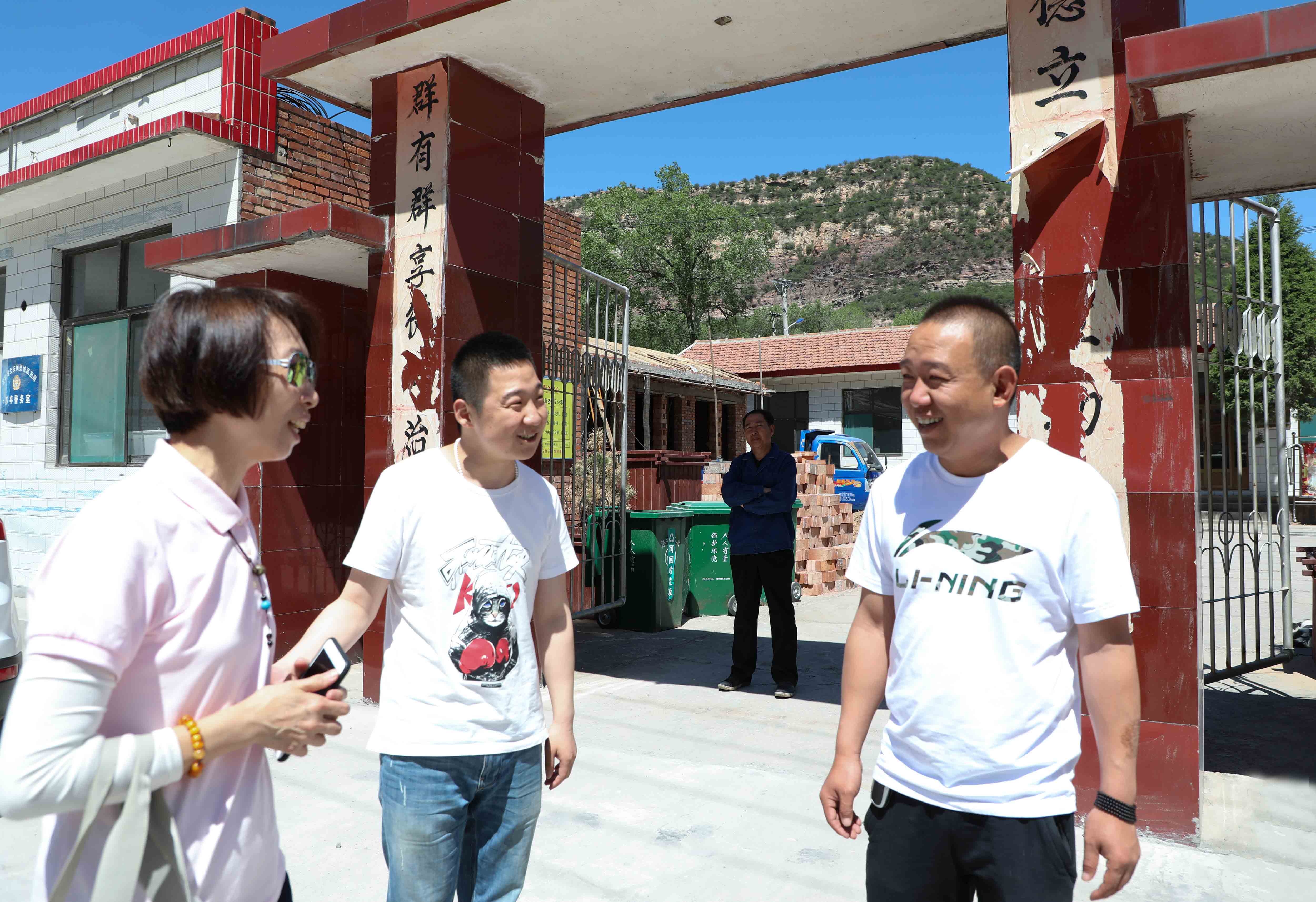 當地導遊小李介紹 師父和蘇亭村村長 (右一)認識。