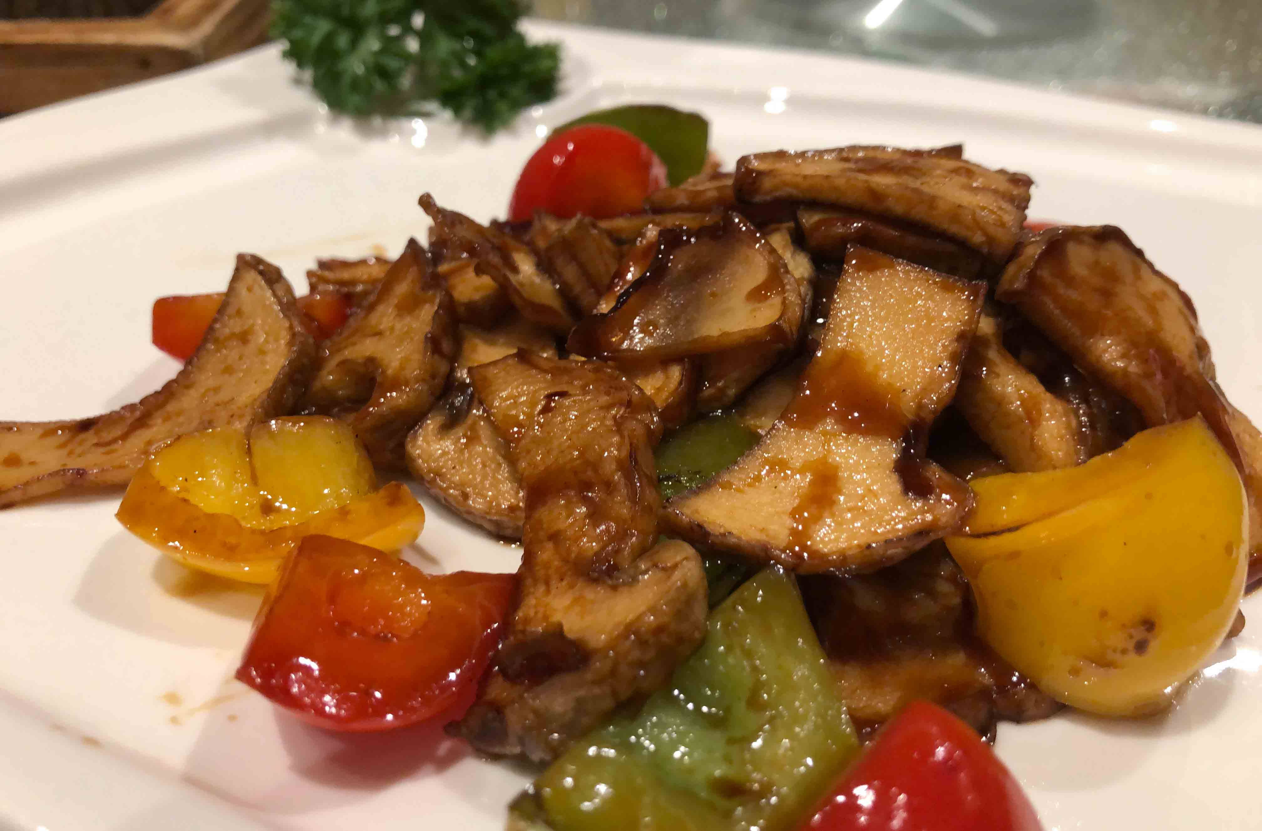 時令的鮮老人頭菌 甜椒炒。