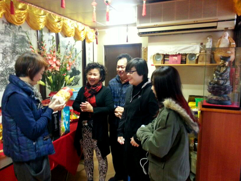 馬來西亞善信林先生一家到訪澳門,亦不忘親到總壇上香叩頭,禮謝 祖師爺及諸佛菩薩聖恩庇佑!一家人專誠從怡保請來一對柚子,上貢 祖師爺,以表誠敬感恩之心。林太太還帶來當地特產和一瓶親手造的慈姑片送給 師父,感謝 師父渡化之恩!