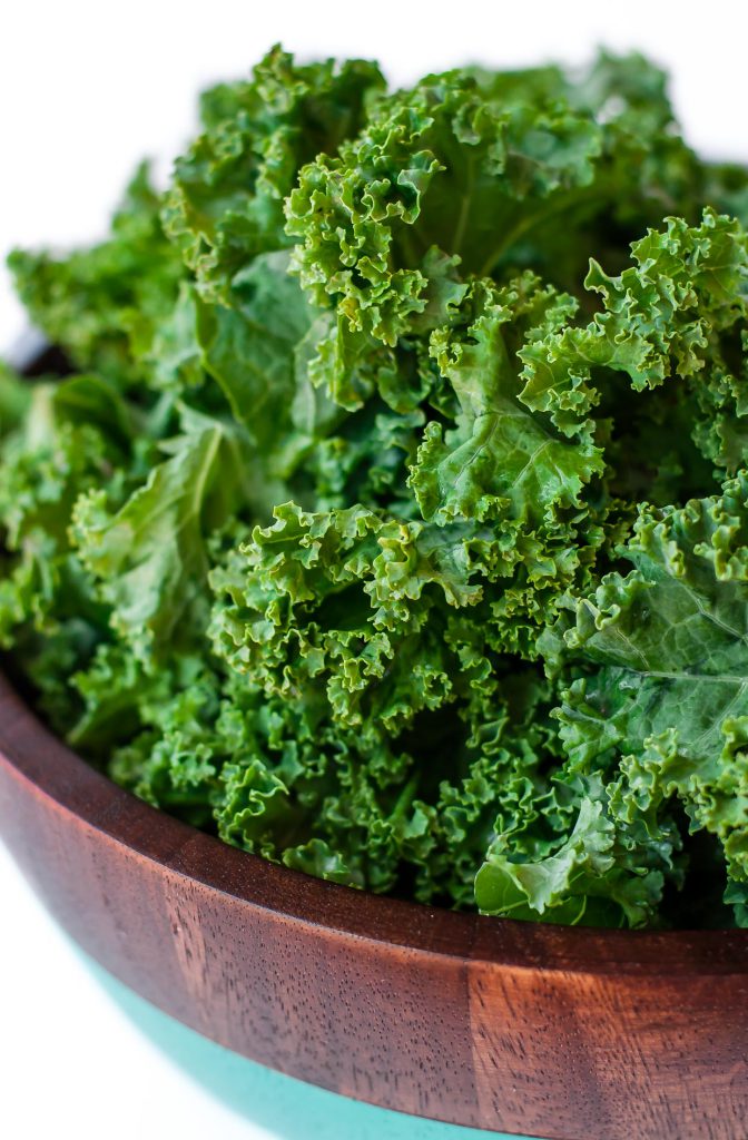 1. 將kale洗淨,務必擦乾,摘除硬梗,掰成入口大小