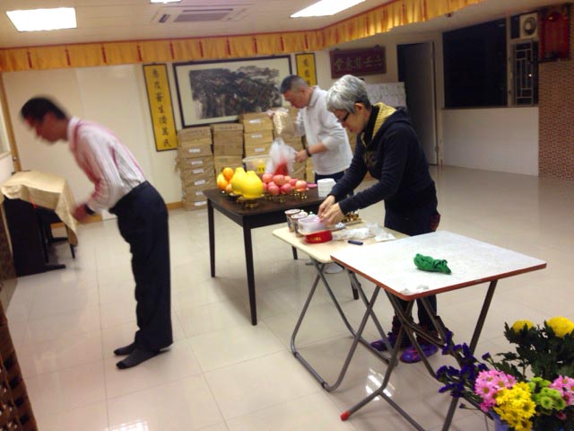 1月15日的請神,善信Fion與新婚丈夫,請來一籃素果,上貢 祖師爺,滿懷感恩心,誠意禮謝神恩。