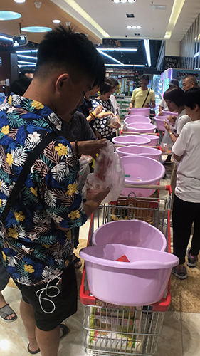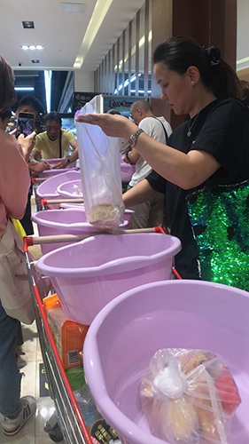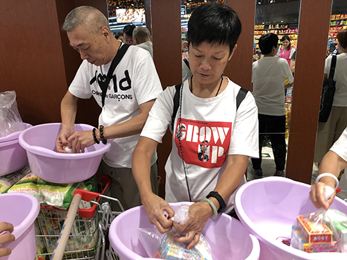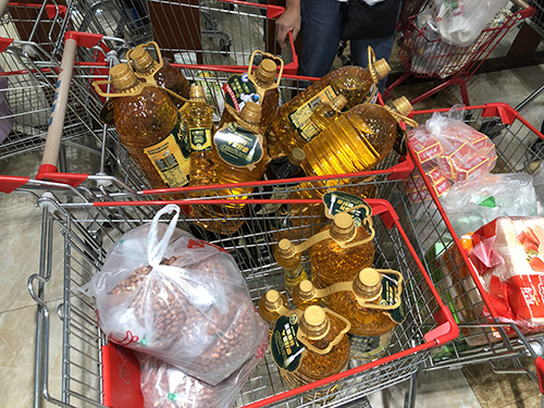 探訪前一天,我們到當地超市選購物資,物資以日常、實用為主,例如面盤、肥皂、煮食油、醬油、醋、大米、麵條、花生、餅食等。