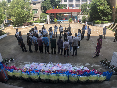 大家將物資運送到集合地點,然後一次性將物資發送給需要幫助的家庭。
