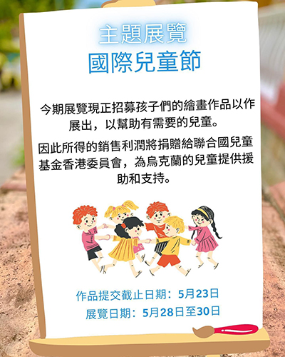 慈善聯合畫展所得的銷售利潤將捐贈聯合國兒童基金香港委員會緊急救援項目,為烏克蘭的兒童提供緊急物資。