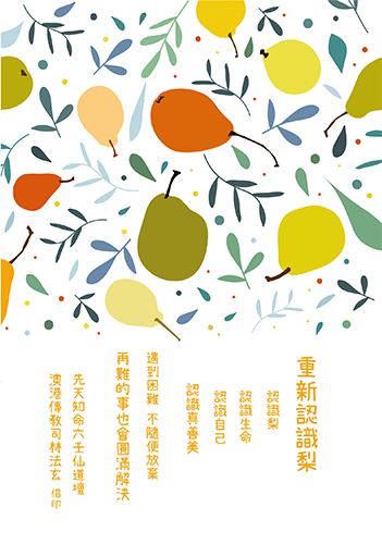 健康養生, 林法玄師父的話 法玄師父《重新認識梨》 1 2022-05-25 尚無留言 重新認識梨 認識梨 認識生命 認識自己 認識真善美 遇到困難,不隨便放棄⋯⋯ 再難的事也會圓滿解決。 法玄師父 《重新認識梨》本壇於2022香港書展免費結緣 香港書展:2022年7月20 – 26日 本壇攤位:3G – F21 1,132 total views, 2 views today 相關文章: 法玄師父的snapshots..附椰子湯食譜及煲湯小貼士 這是一間位於澳門人通稱「爛鬼樓」小街的售賣原隻椰子老鋪: 8,456 t […]... 法玄師父《生活的智慧》 身體健康 不慌不忙 5,866 total views, […]... 法玄師父《生活的智慧》 自己人生 自己負責 6,889  […]... Next Post Previous Post Others Post...