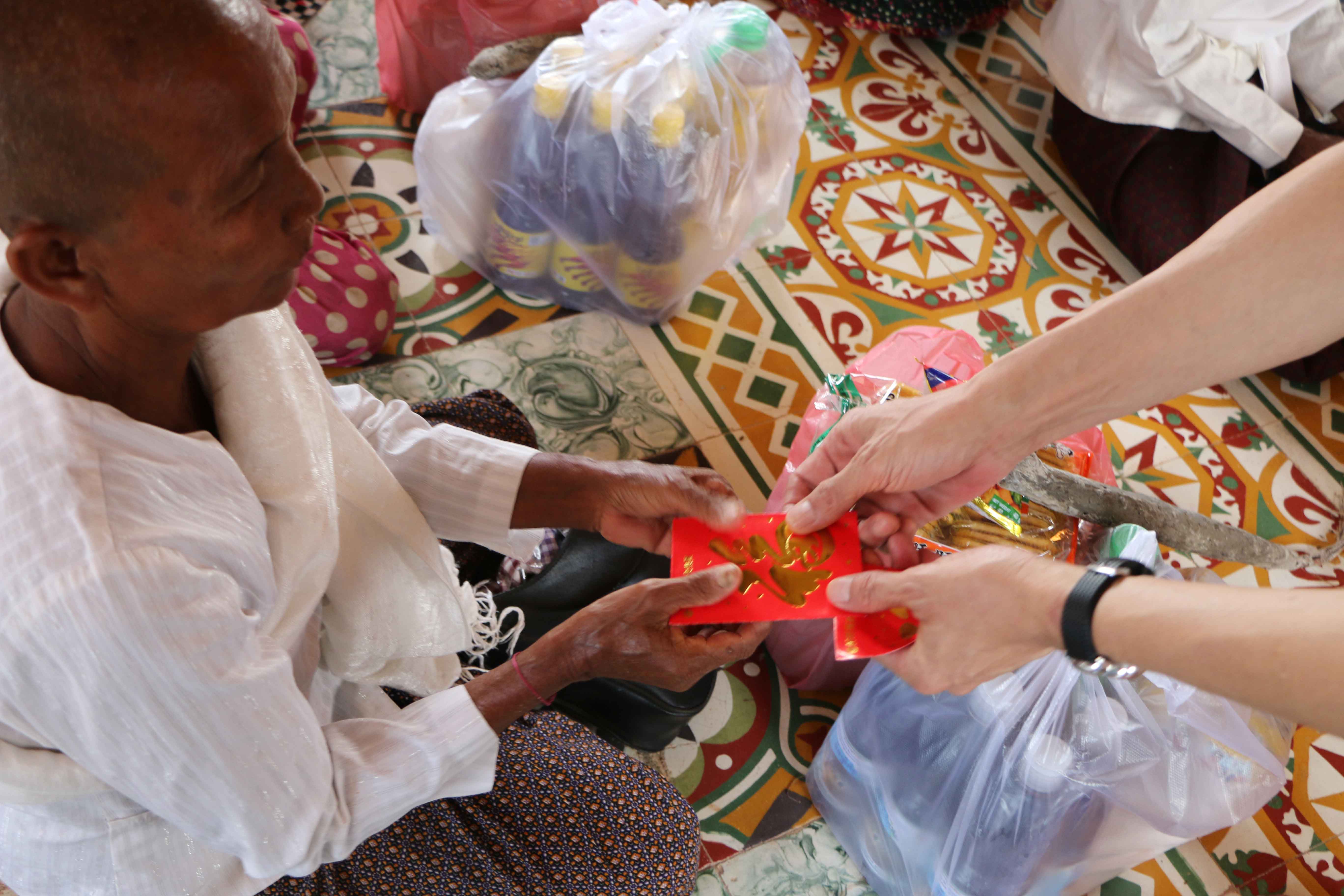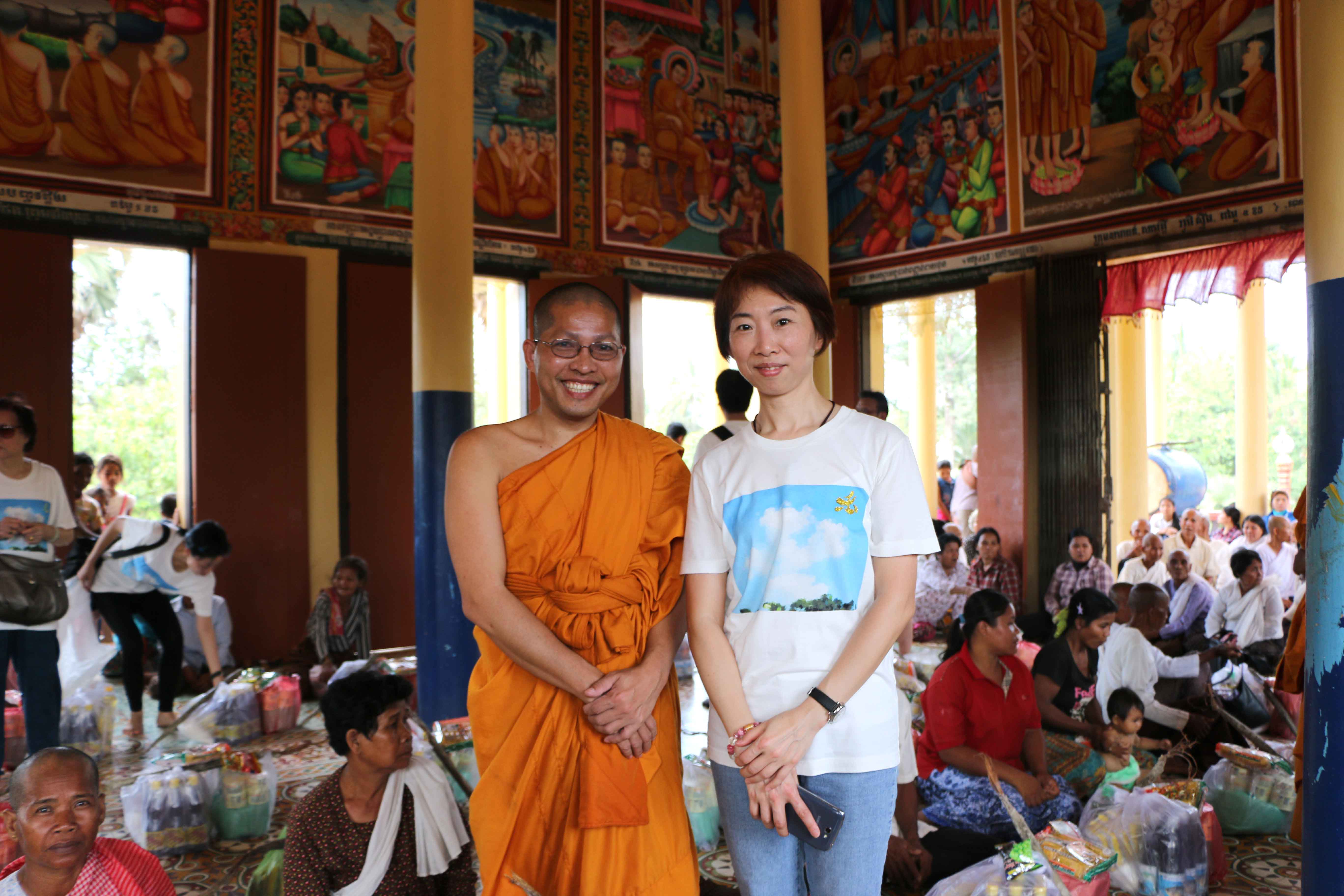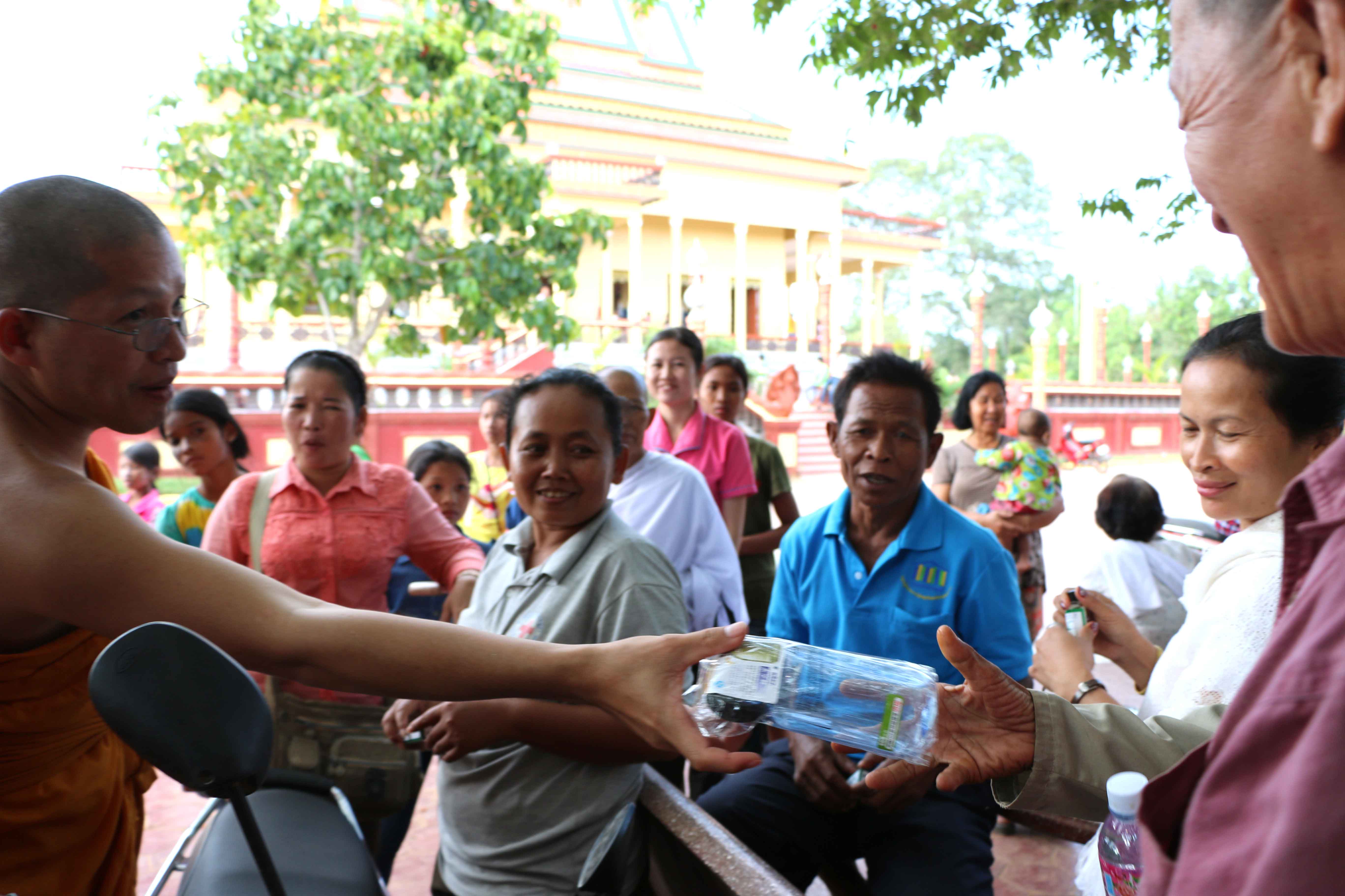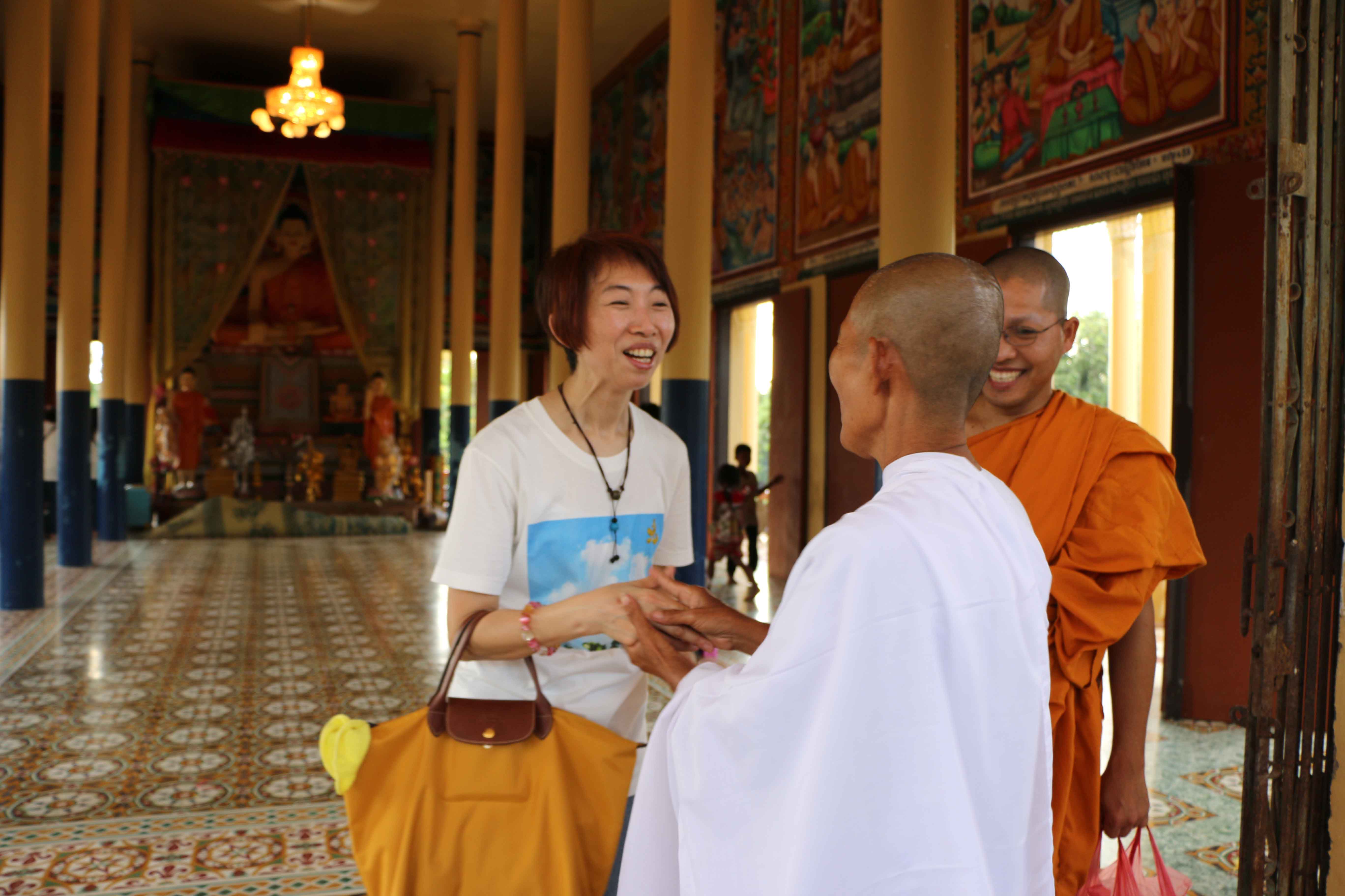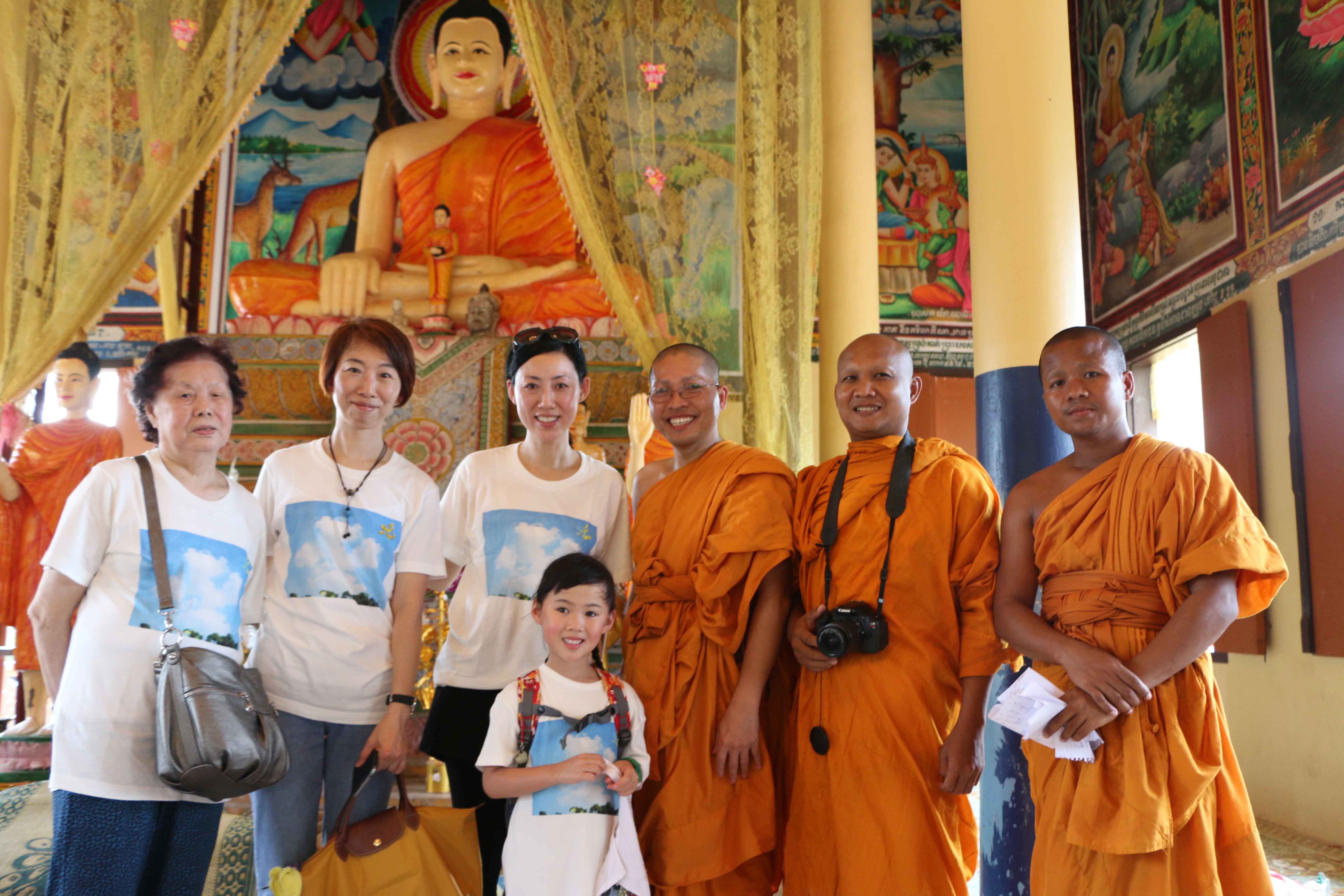 Ven.Somnieng代將驅風油、水壺等物資送給協助打理廟宇的村民廟祝; 師父亦與Ven.Somnieng、Ven.Somnieng母親、其僧人助手Loeurm Lorm以及村民廟祝結緣利是。