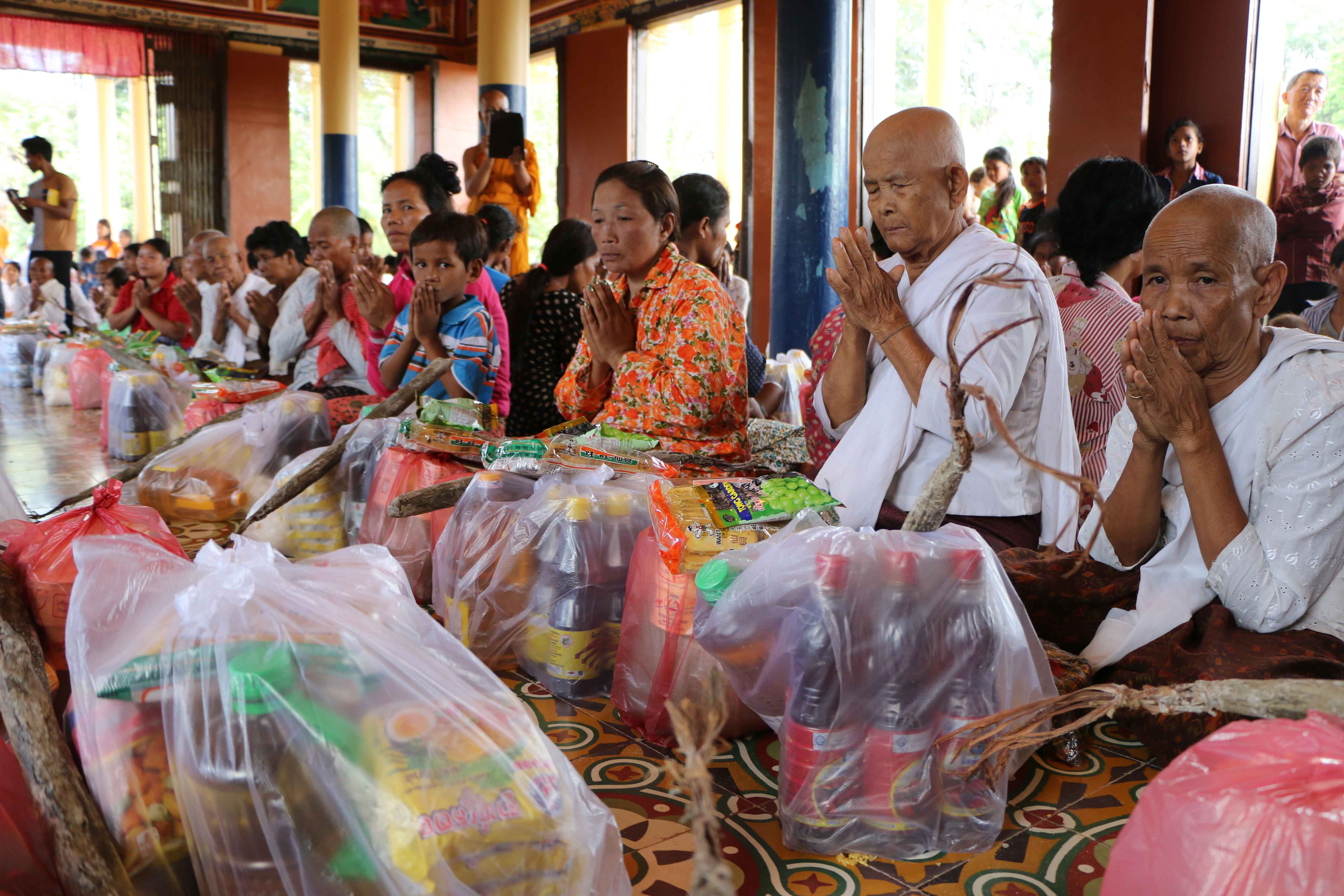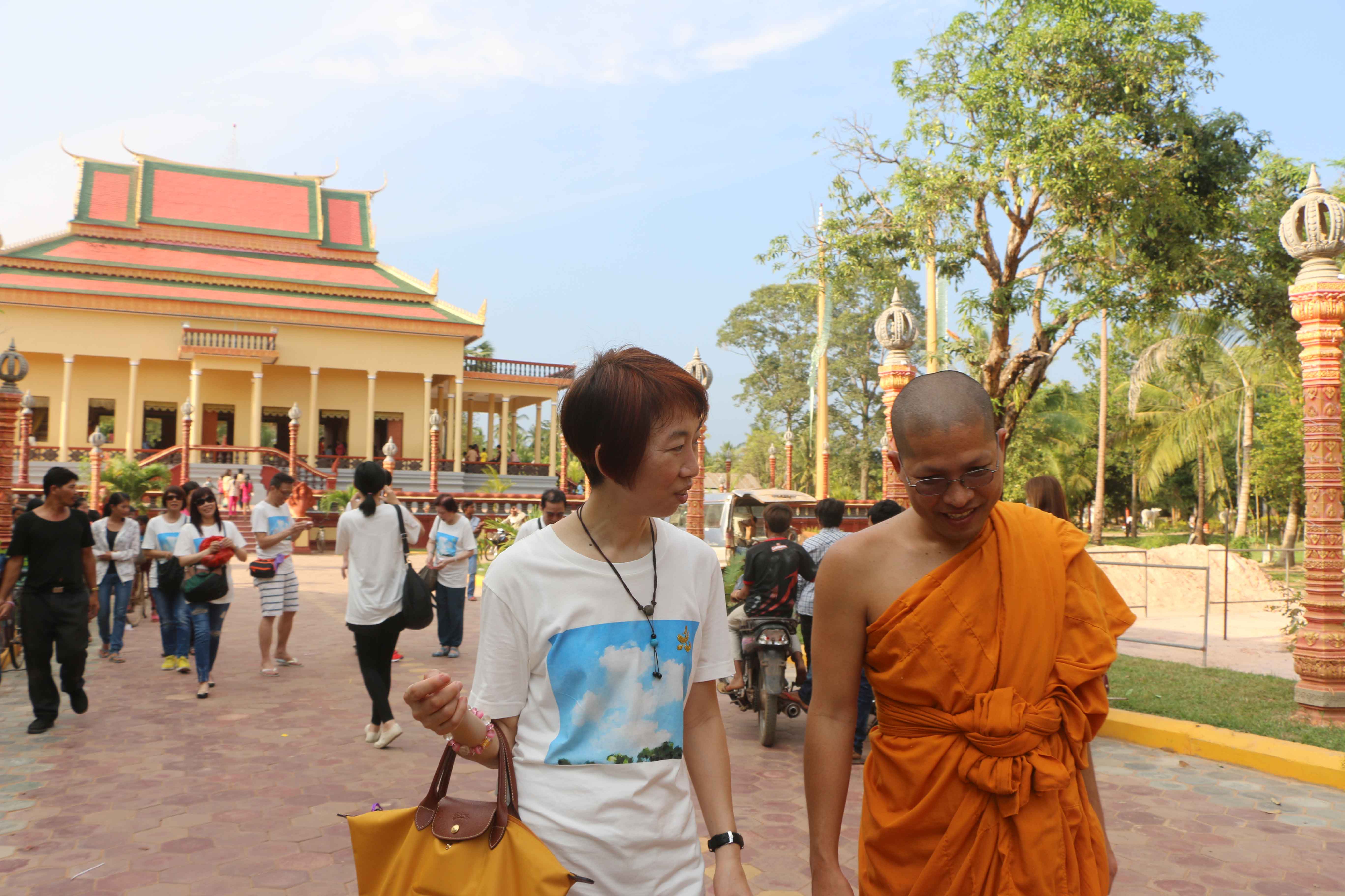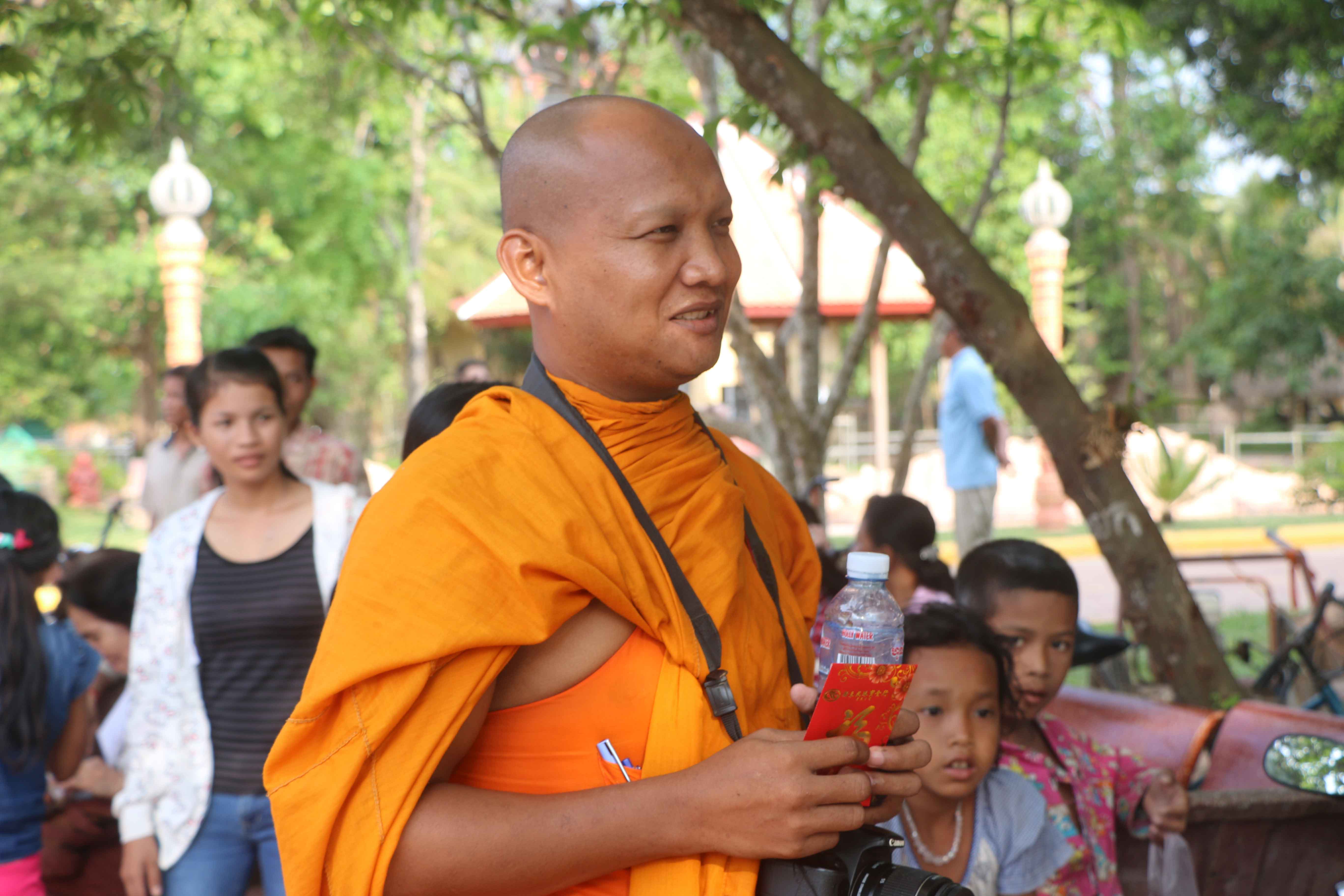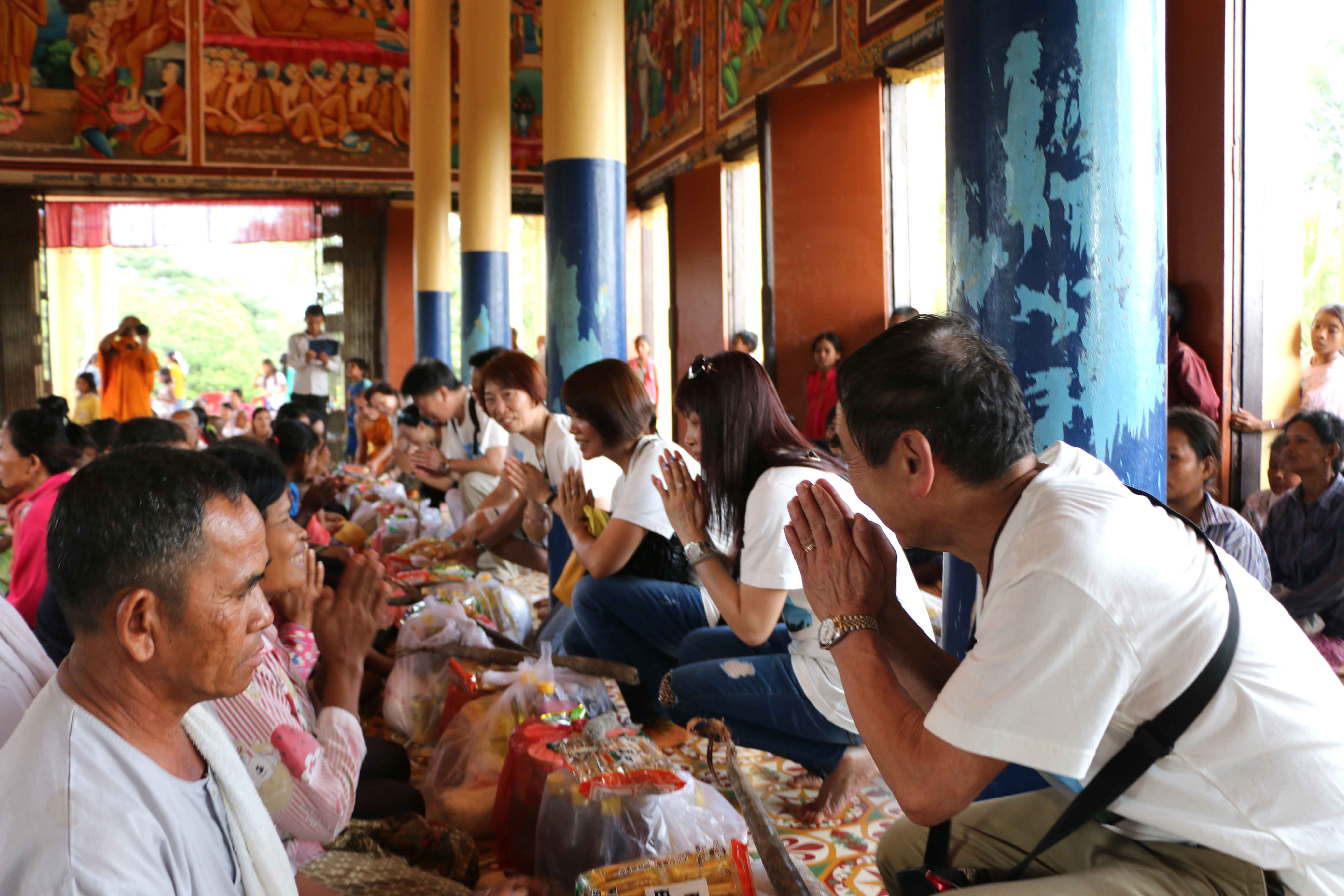 Ven.Somnieng代將驅風油、水壺等物資送給協助打理廟宇的村民廟祝; 師父亦與Ven.Somnieng、Ven.Somnieng母親、其僧人助手Loeurm Lorm以及村民廟祝結緣利是。