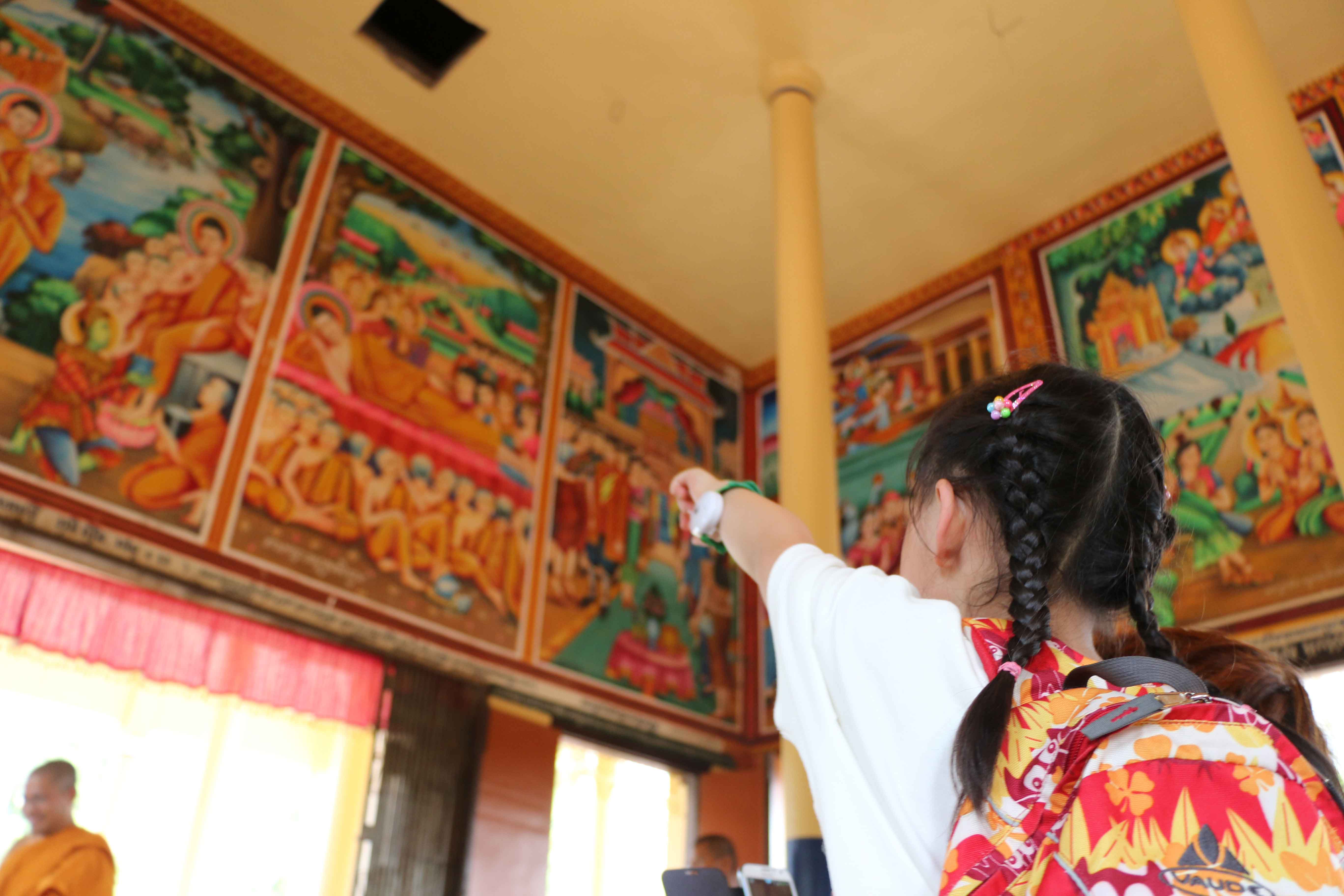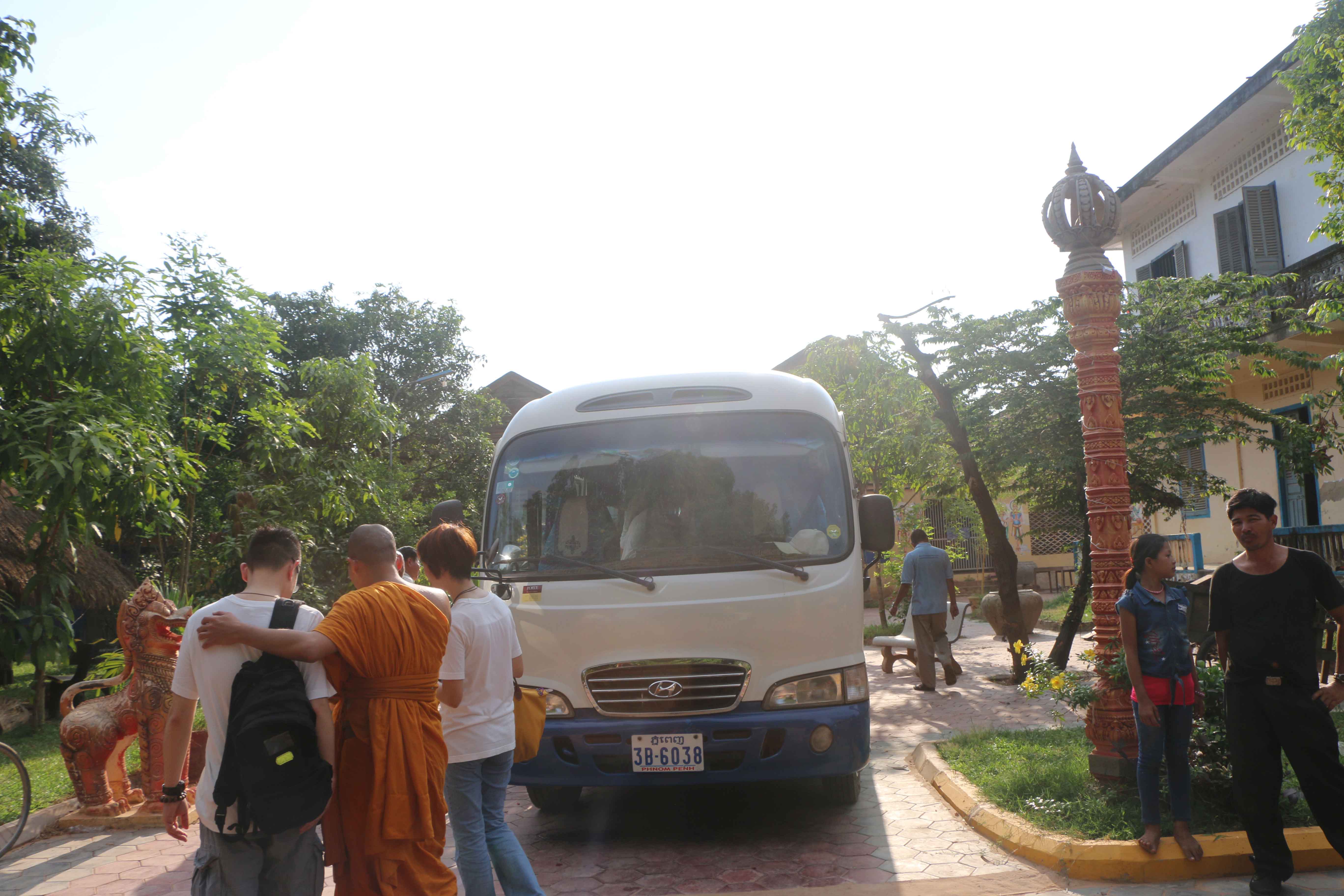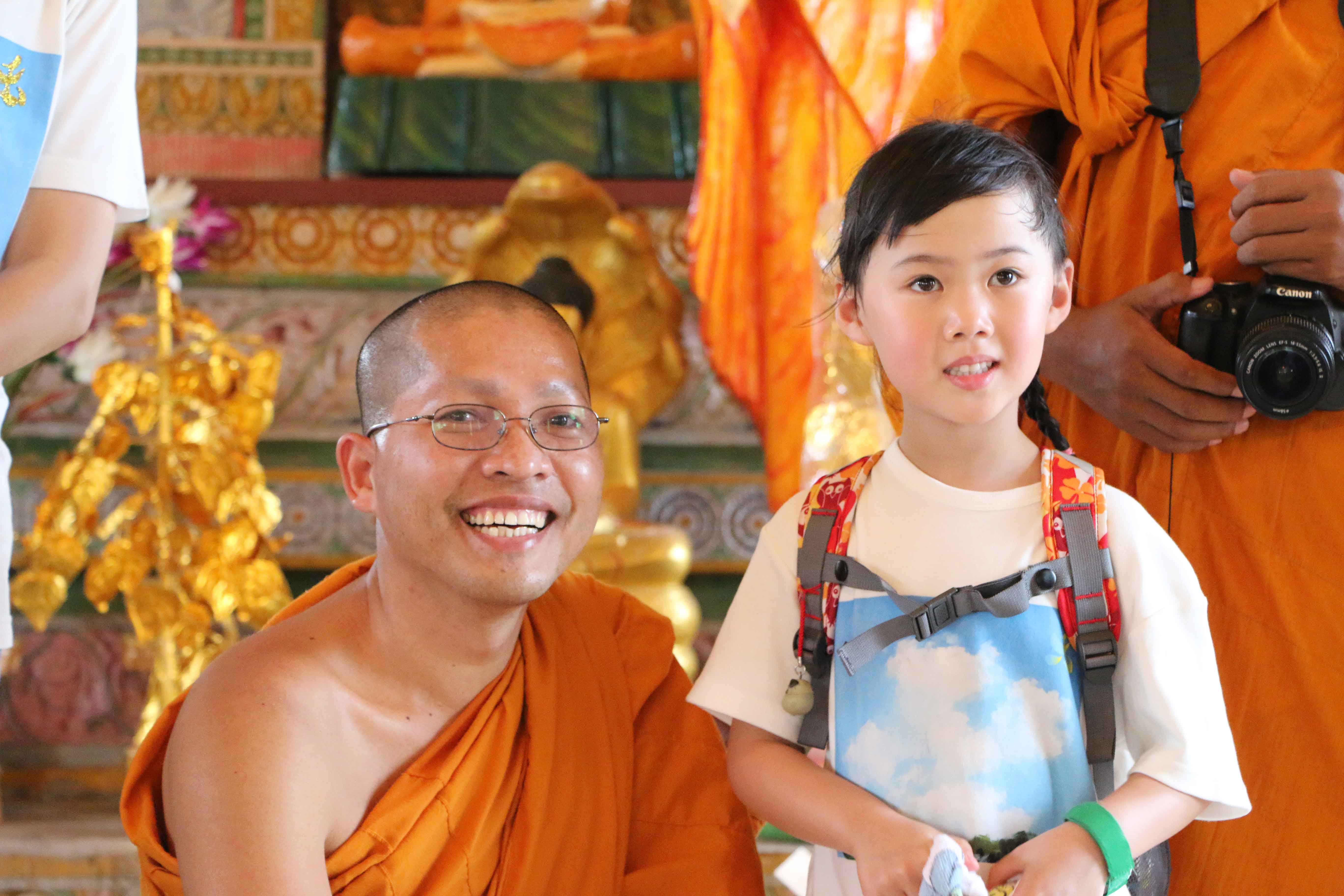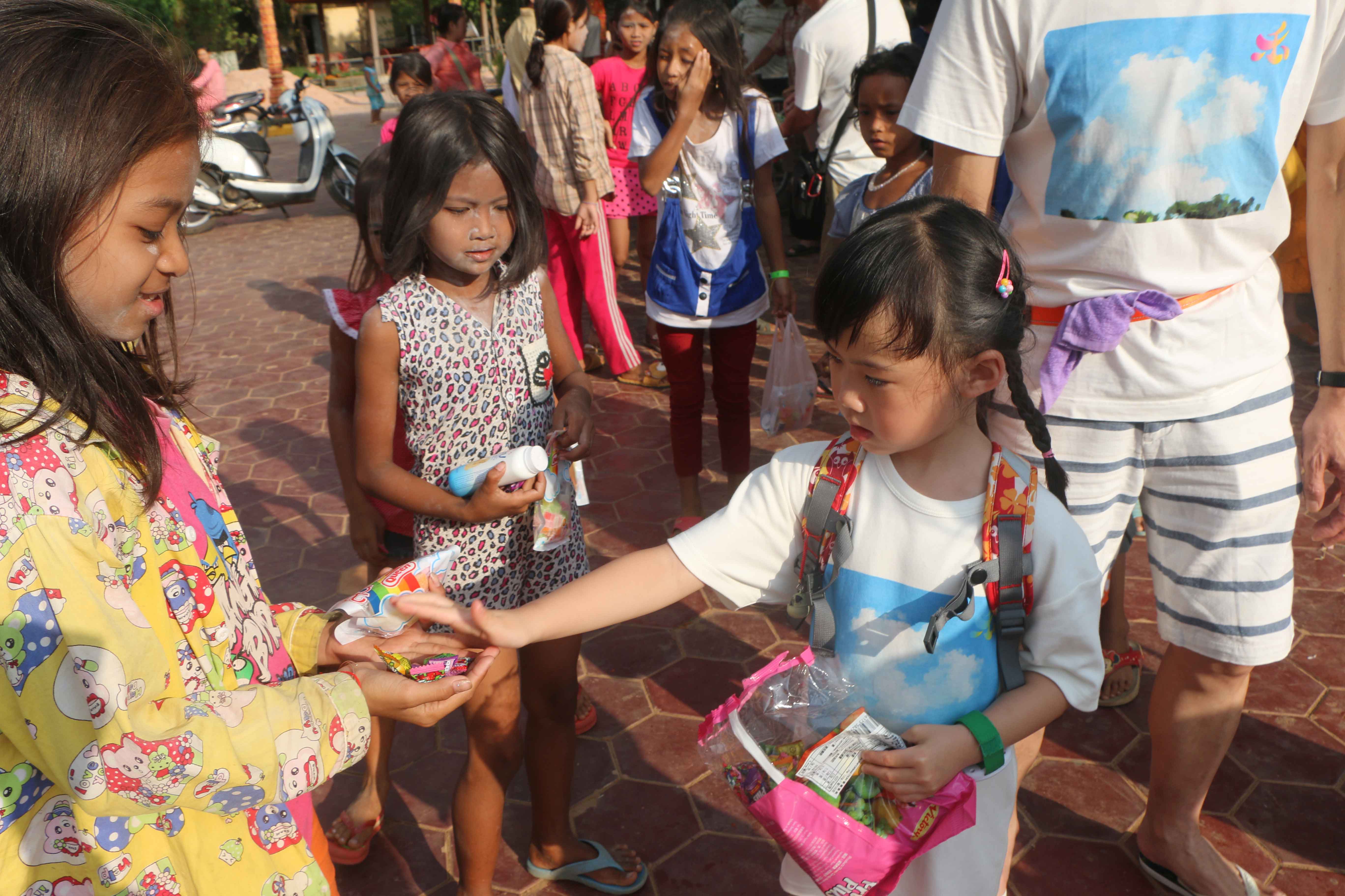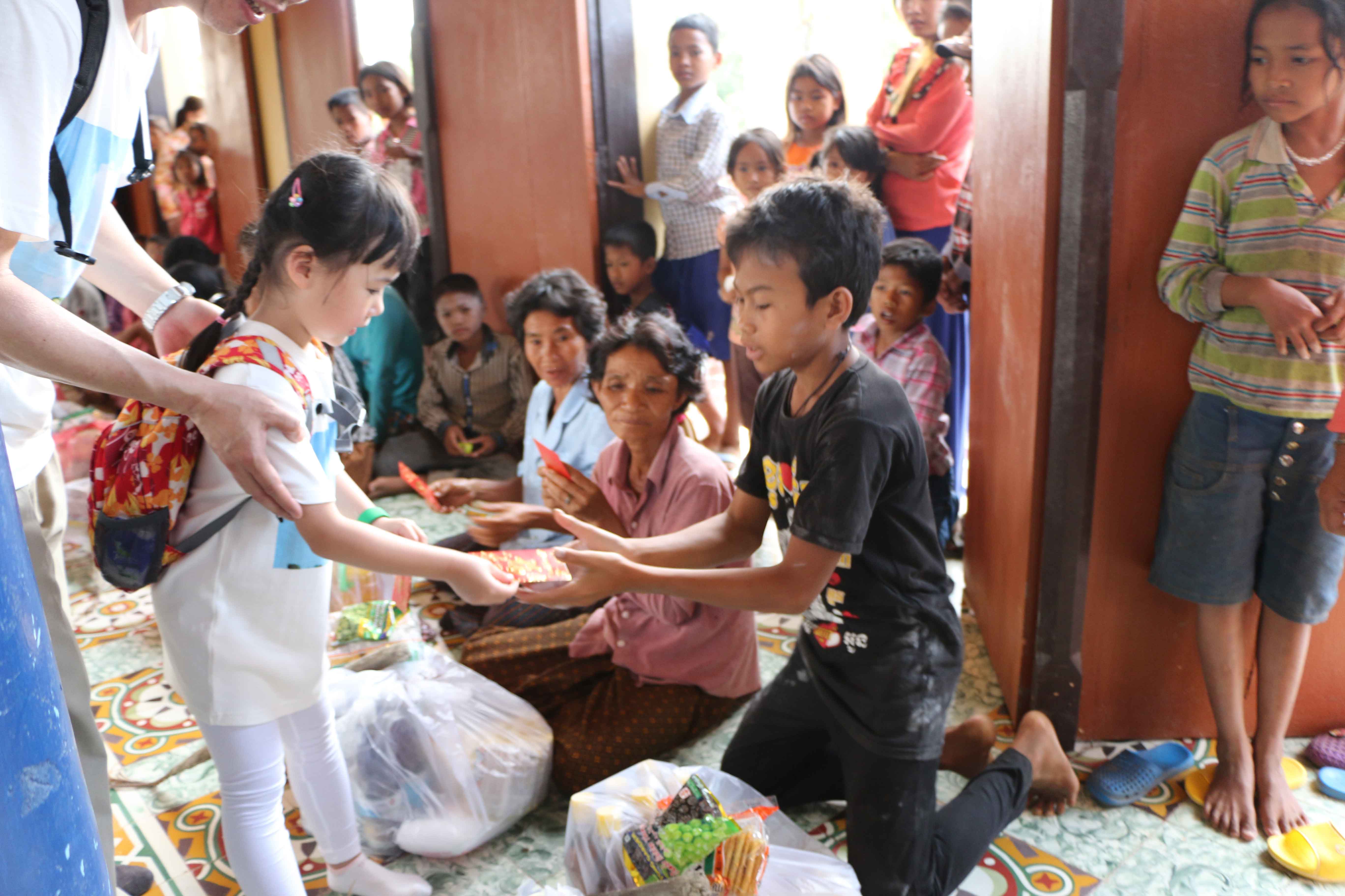 Ven.Somnieng代將驅風油、水壺等物資送給協助打理廟宇的村民廟祝; 師父亦與Ven.Somnieng、Ven.Somnieng母親、其僧人助手Loeurm Lorm以及村民廟祝結緣利是。