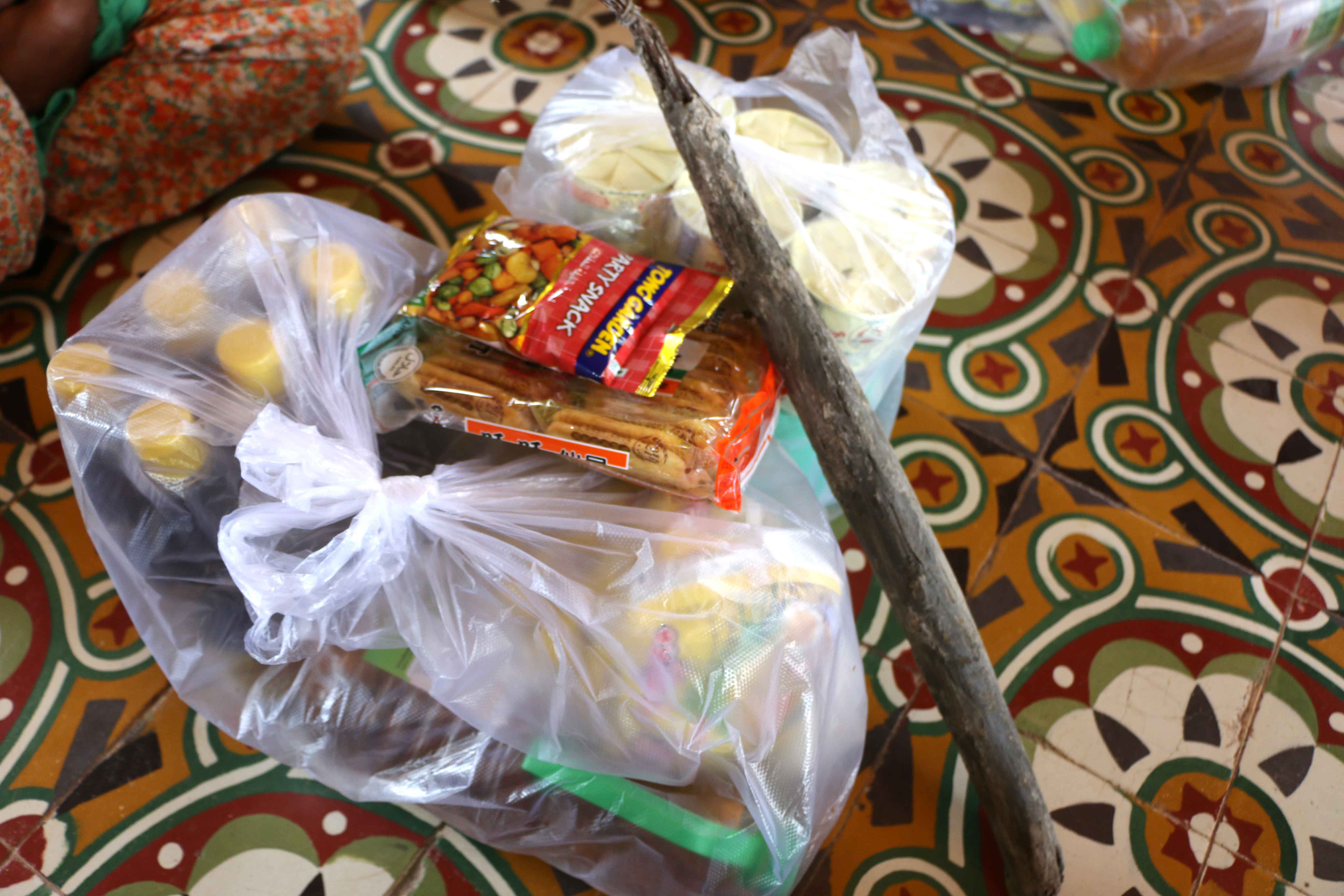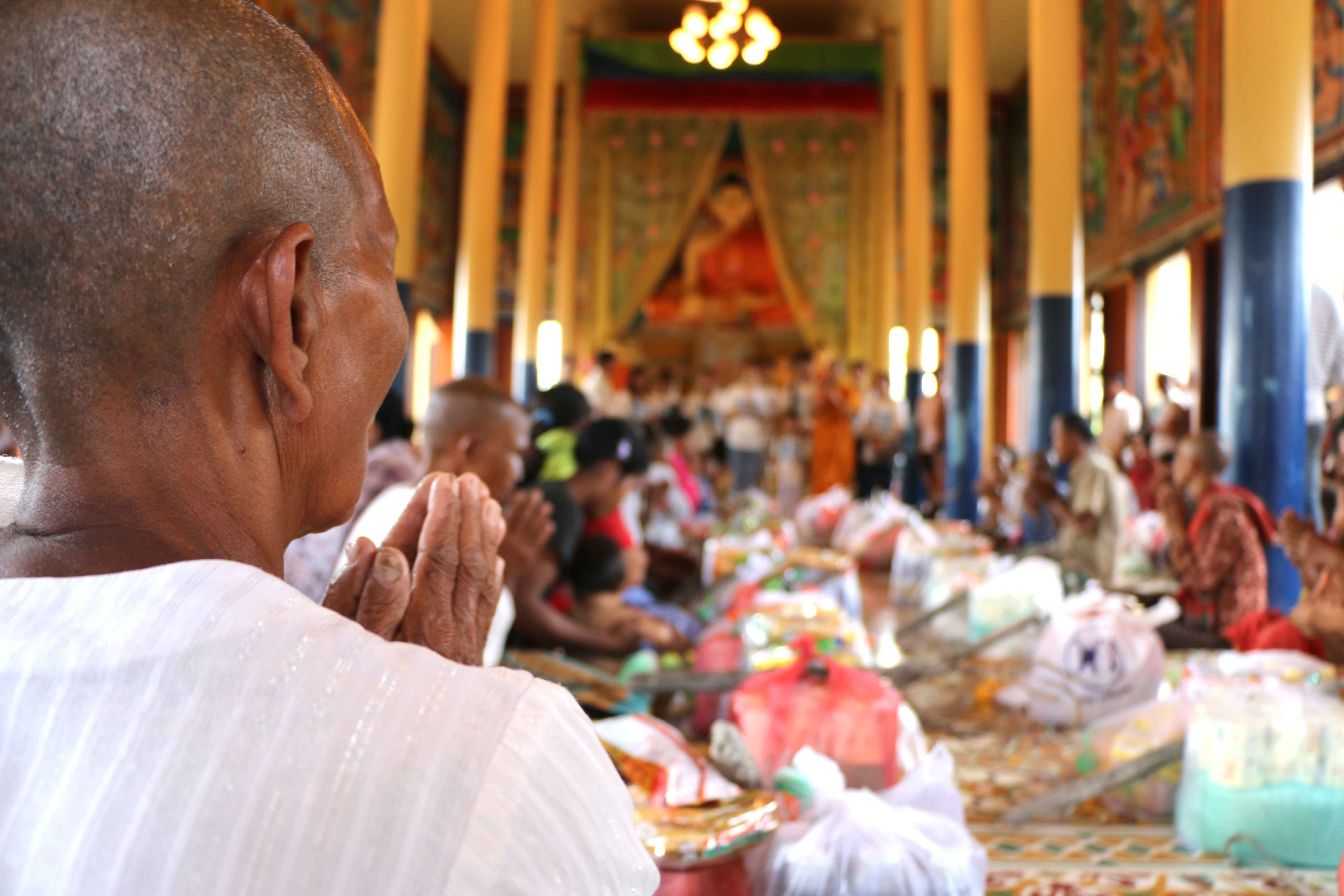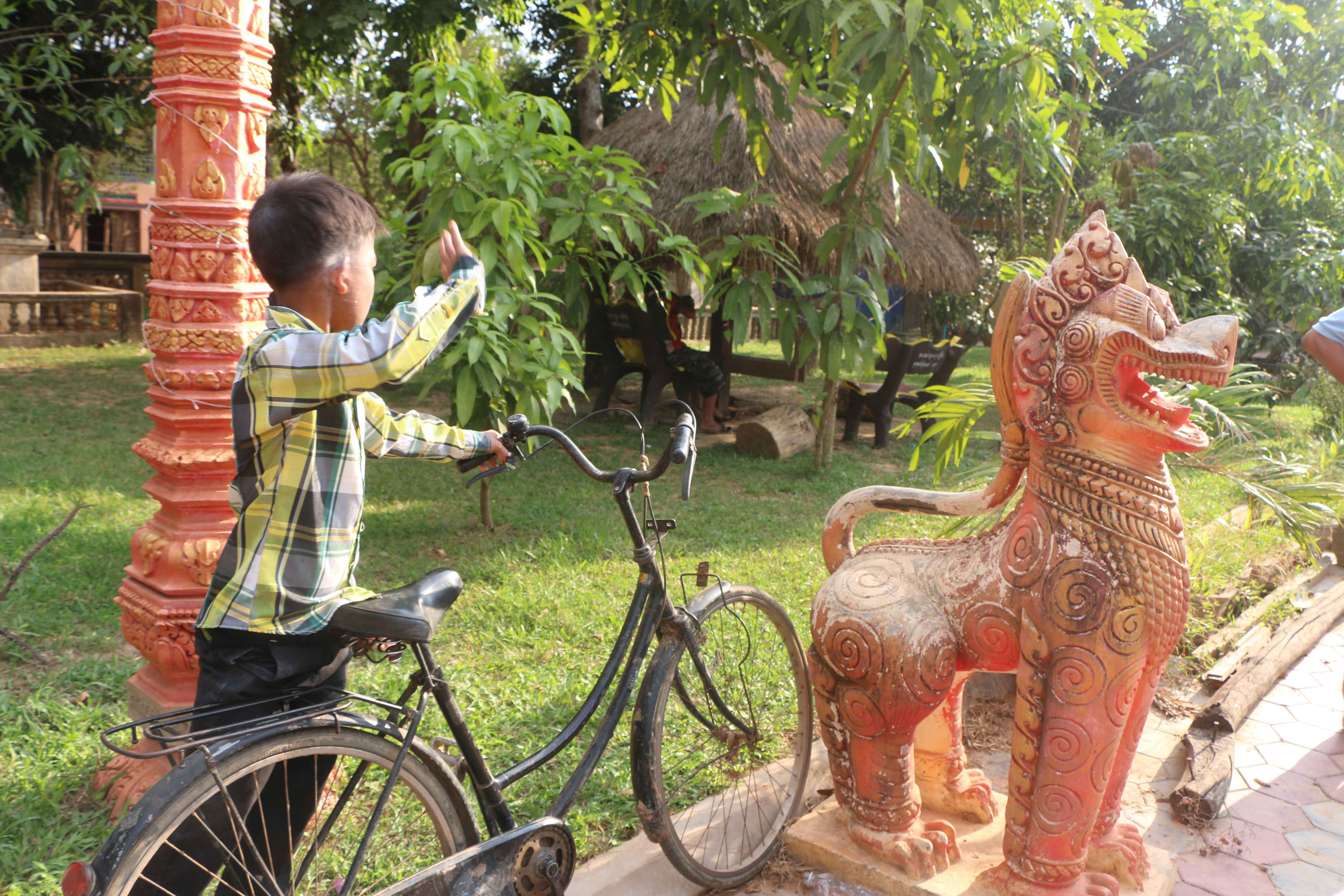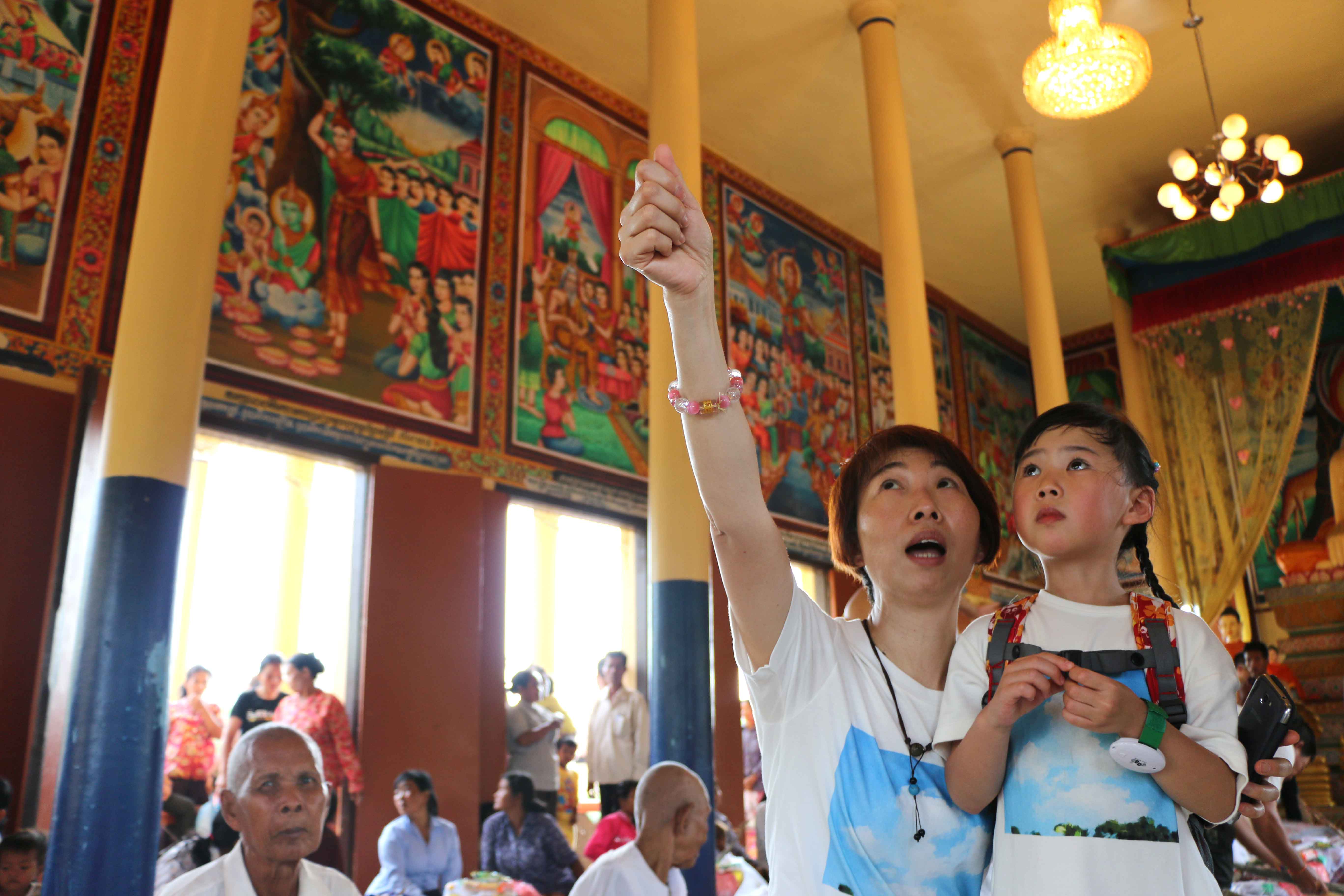 Ven.Somnieng代將驅風油、水壺等物資送給協助打理廟宇的村民廟祝; 師父亦與Ven.Somnieng、Ven.Somnieng母親、其僧人助手Loeurm Lorm以及村民廟祝結緣利是。