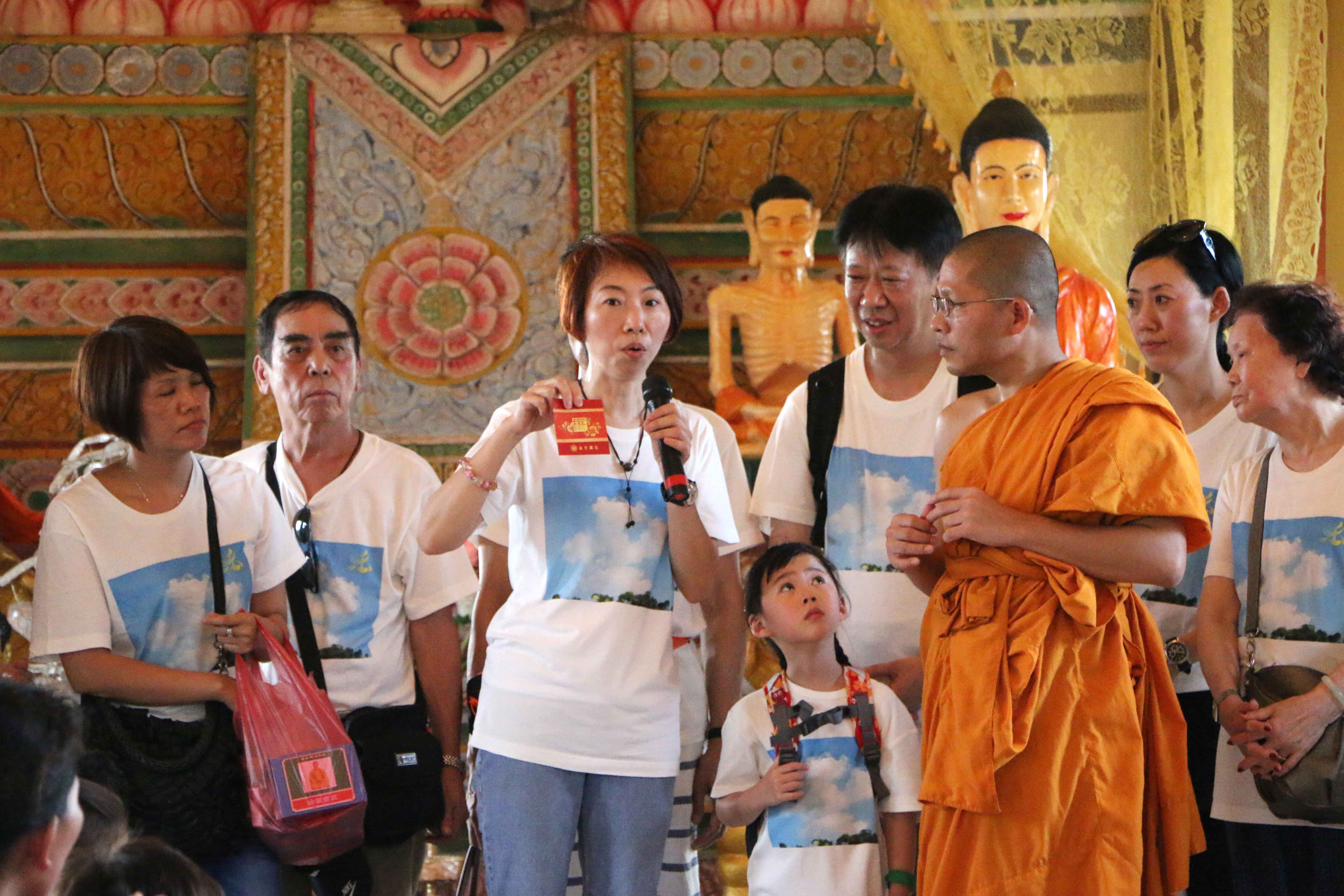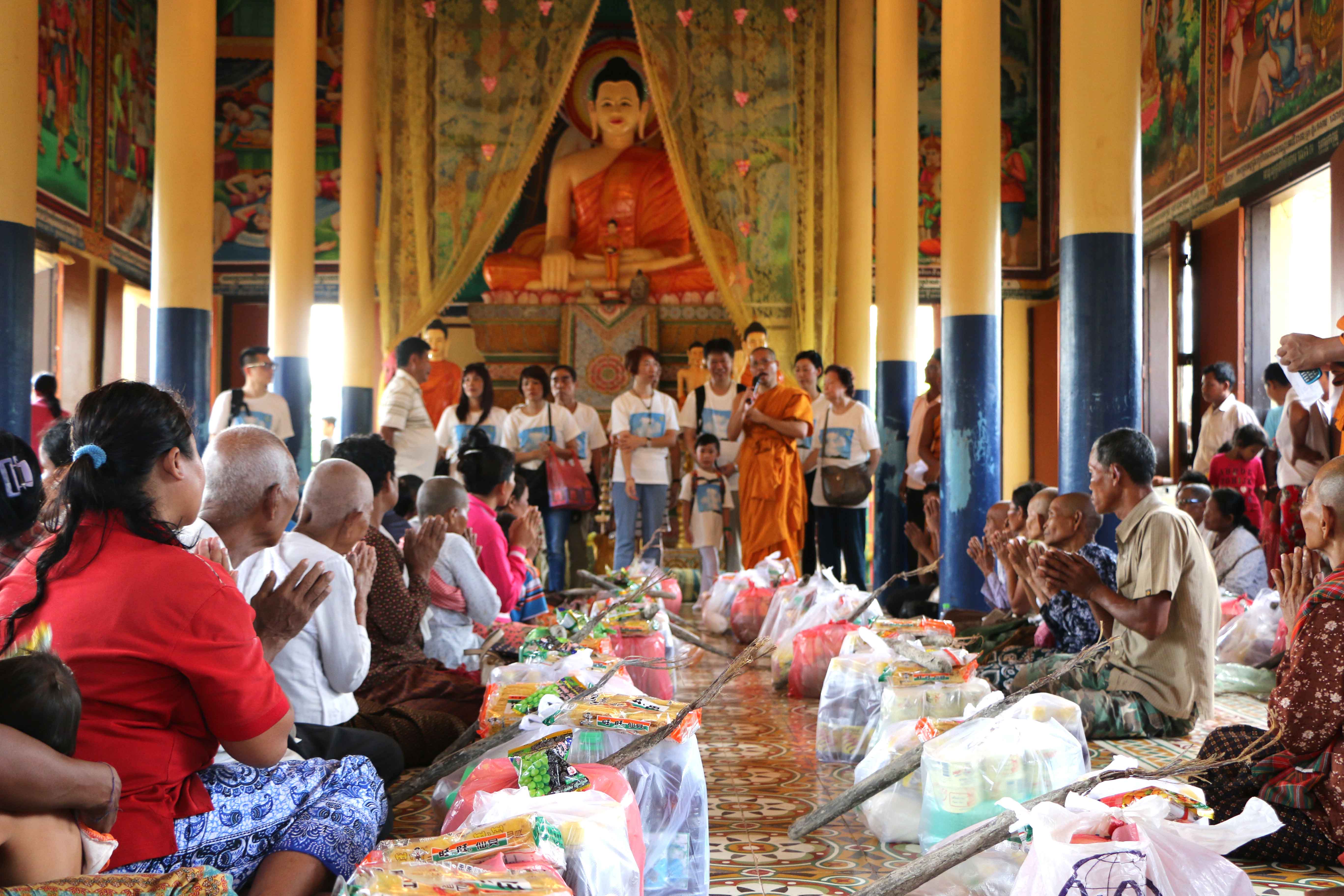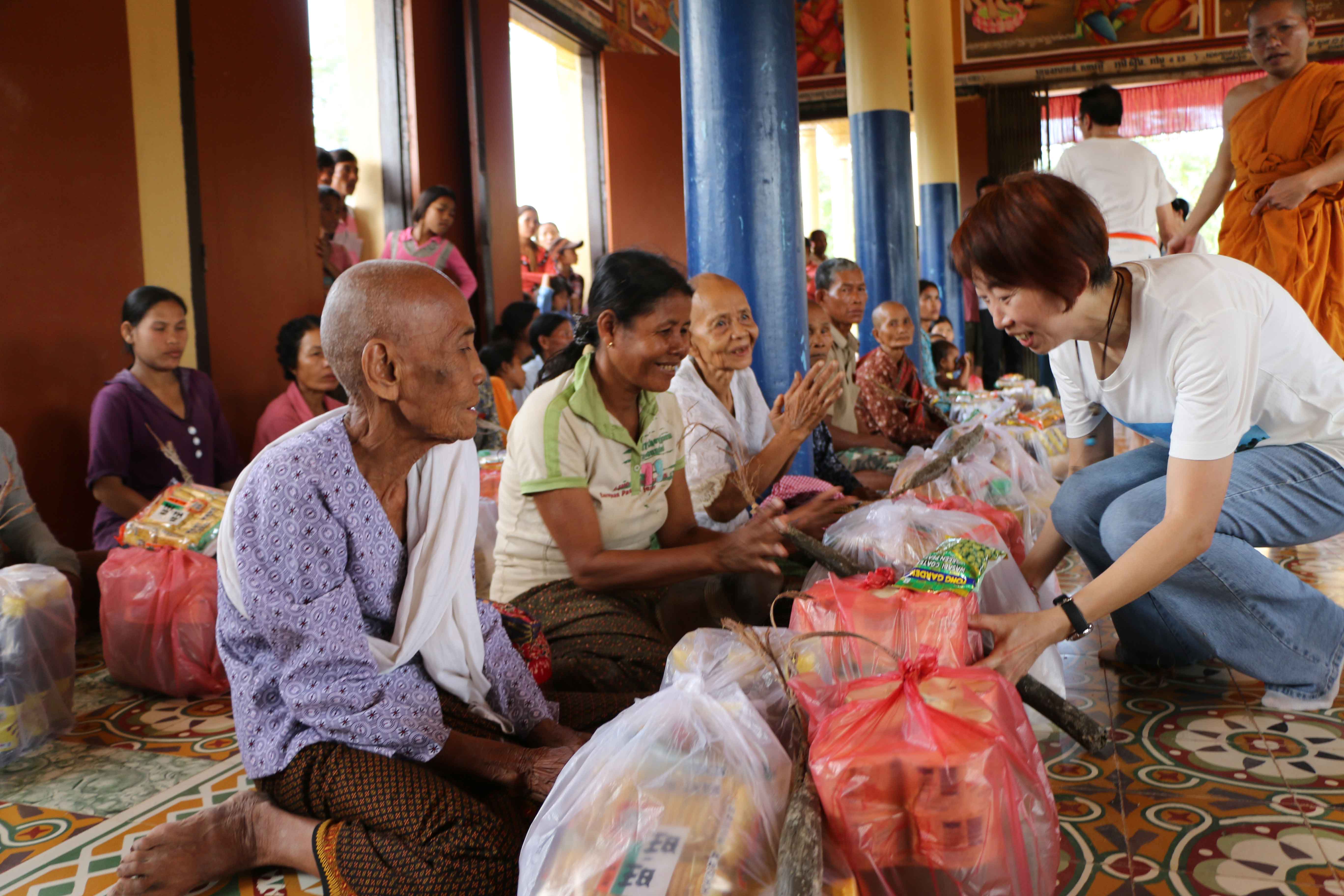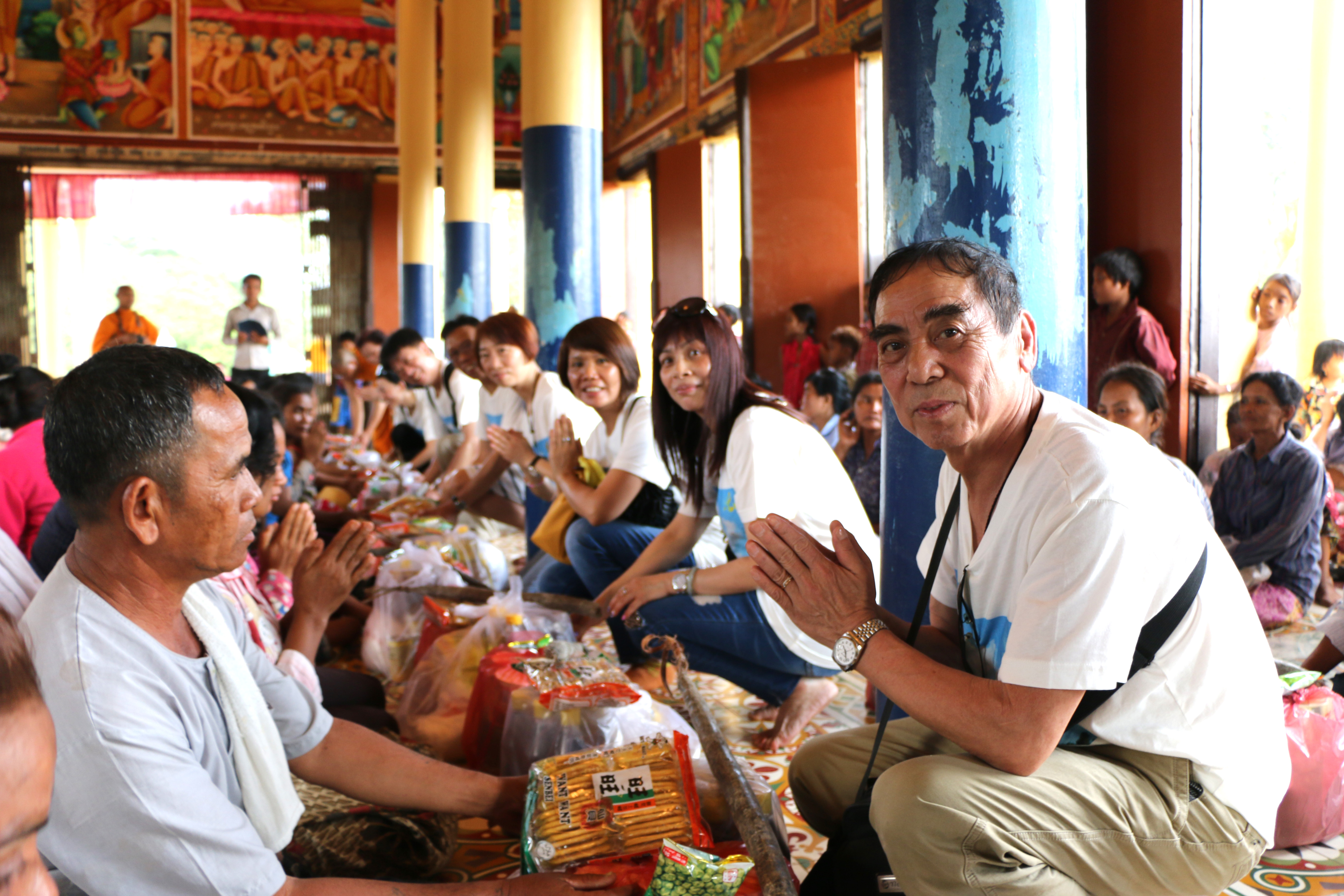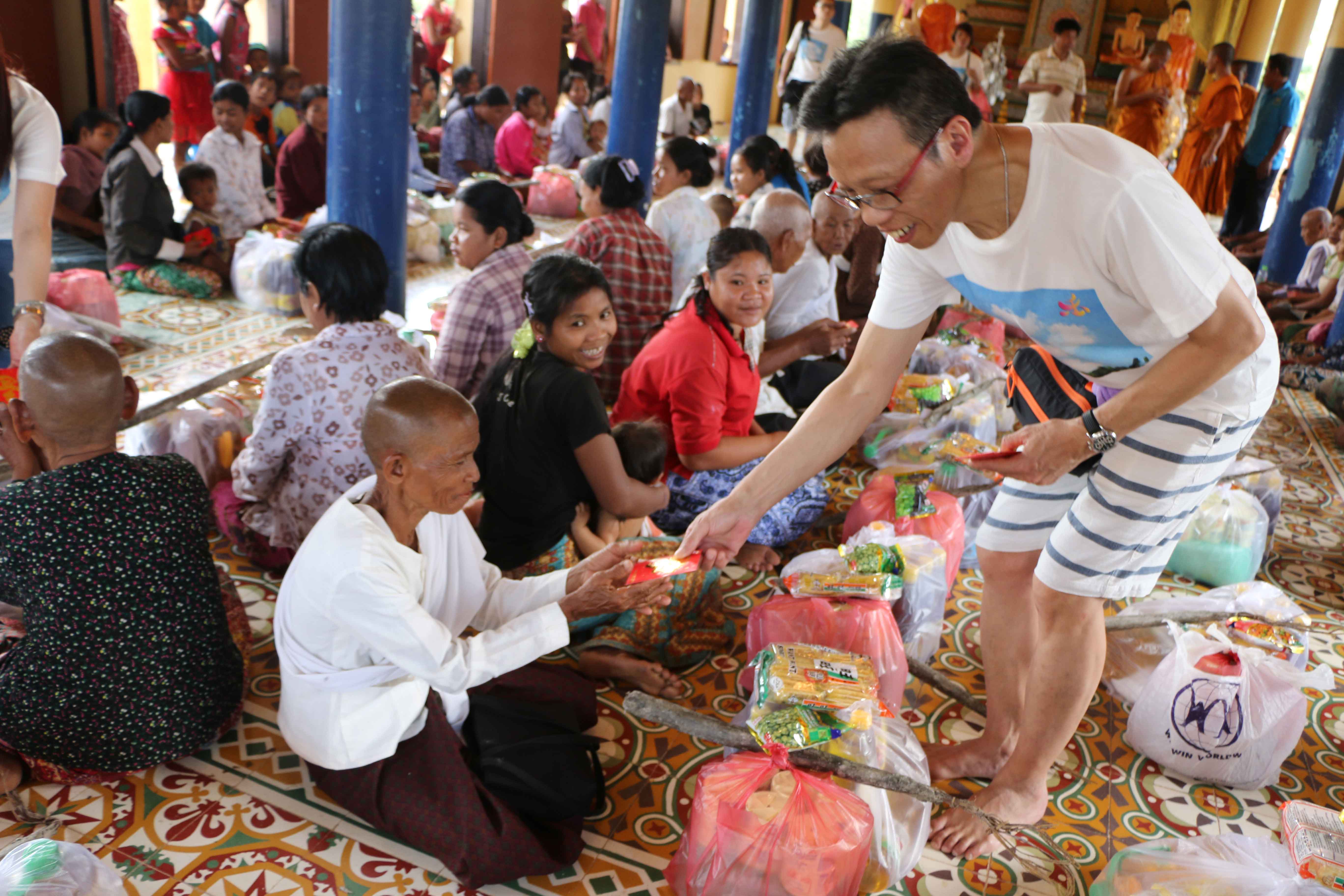 這是 師父帶領我們第六次到訪暹粒了,是次 師父希望能夠主力探訪當地村民。抵步翌日,我們到了LHA(Life and Hope Association*)負責人Ven.Somnieng的家鄉作親善探訪, 師父與70位村民分享道趣、拍打的好處。給每位村民的結緣品, 師父挑選了當地日常主食包括5公斤白米、食油、糖鹽、煉奶以及用作助燃的油柴等,還有一封US$10利是,以表小小心意。愛因分享而更多,我們一行人在分享的過程之中,法喜充滿,心生喜悅。