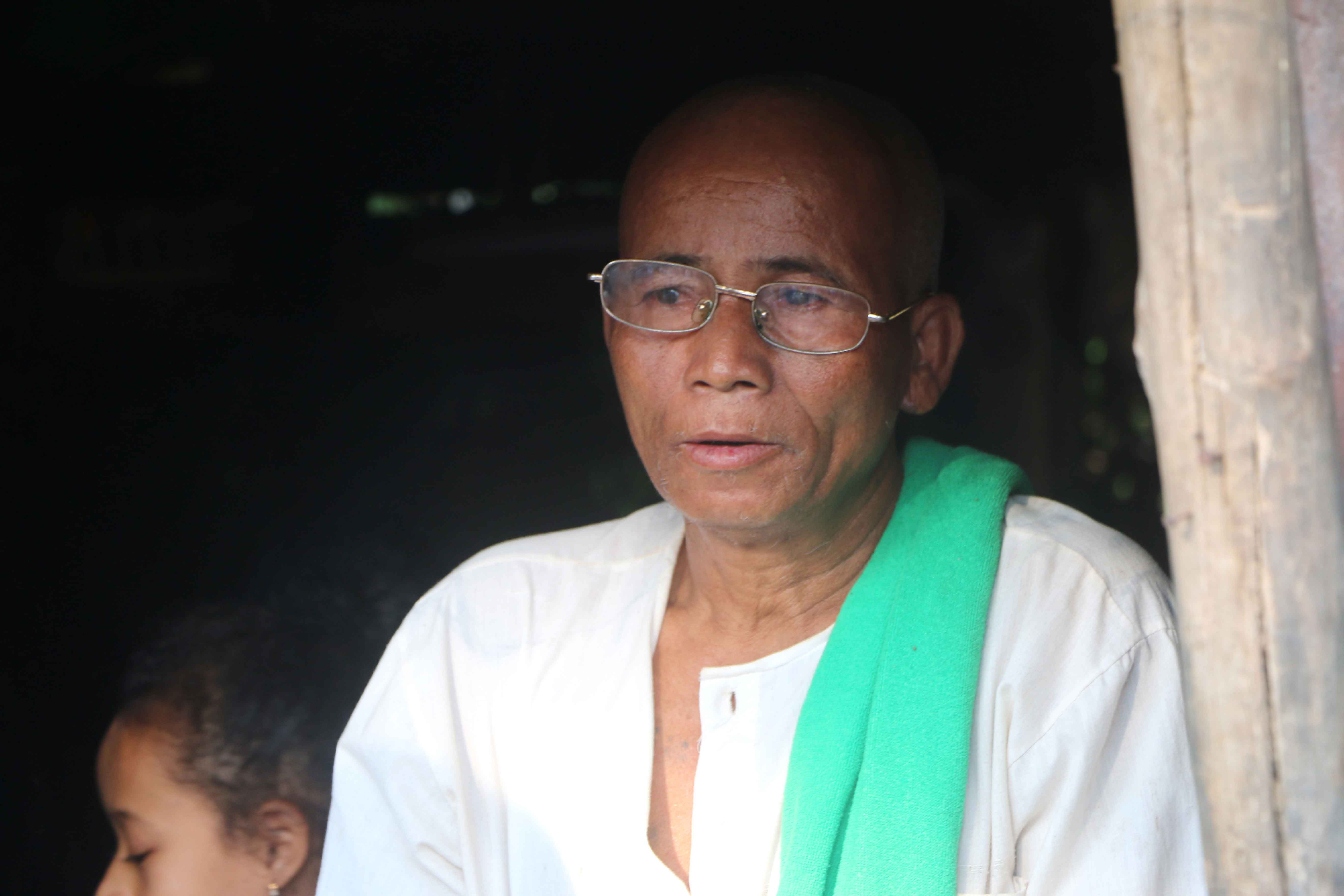 男户主看、聽不清楚,一家靠妻子每月為農夫工作10至15天賺錢為生,一家五口,三個小孩是老户主的孫子,他們的兒子自離婚後便離開了他們…