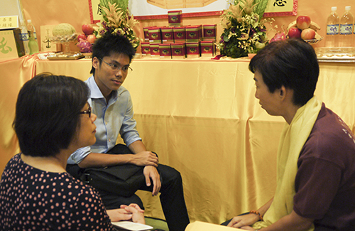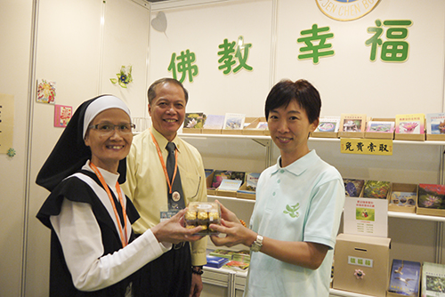 書展最後一天, 師父再次結緣人乘佛教 釋覺定師父和眾師兄開光茶葉、朱古力和老婆餅。感恩 師父!