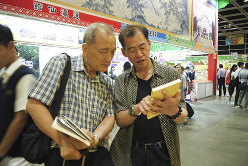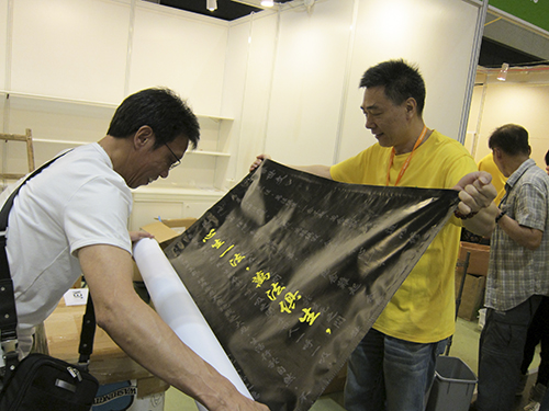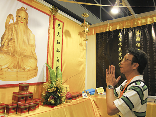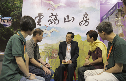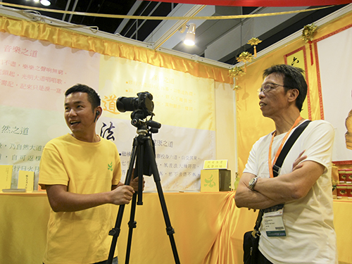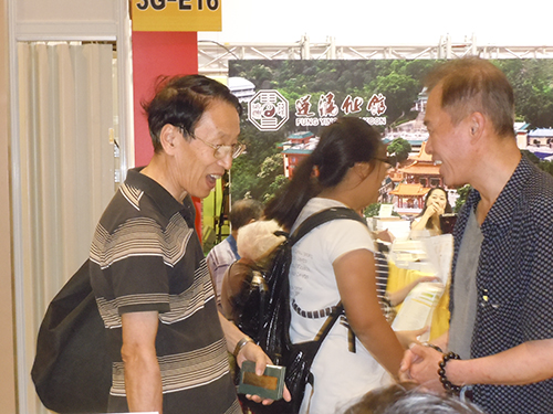 雲鶴山房壇主梁景文(中)先生邀請 師父到雲鶴山房書展攤位相聚。