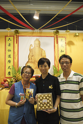 佛哲書舍義工金小姐結緣 師父, 師父亦以供奉 祖師爺的藥油結緣金小姐。