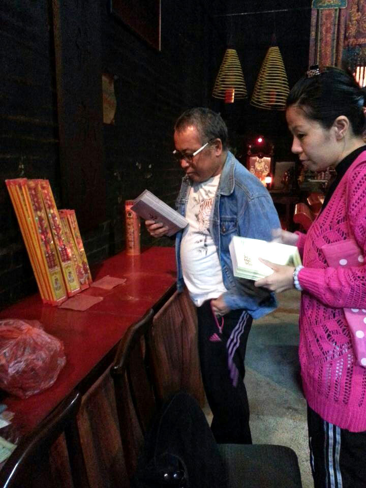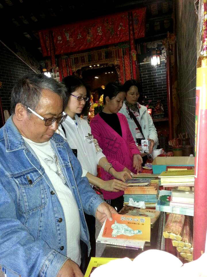 上星期天, 師父帶領澳門弟子及善信同往氹仔的廟宇送經書、善書以及本門出版的健康叢書系列,擺放經書前,還逐一清潔放經書的桌面、整理廟內淩亂的經書。