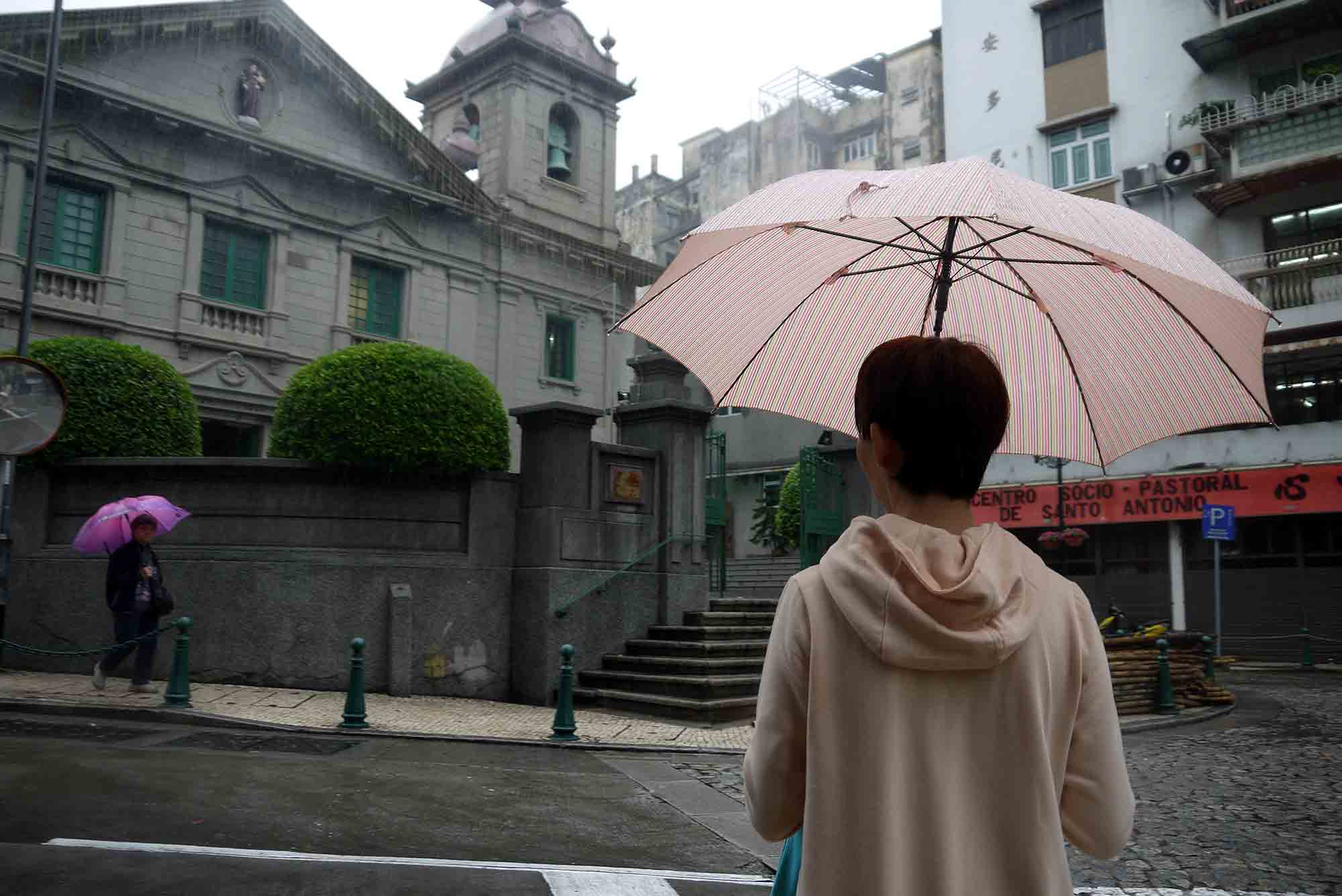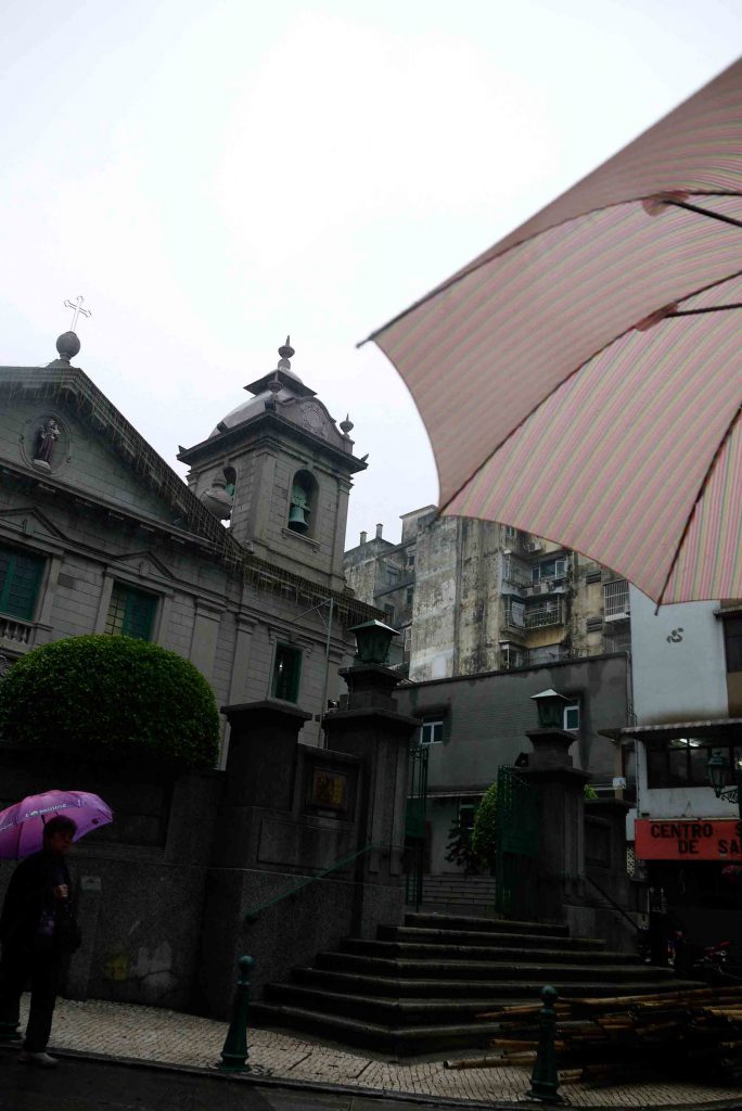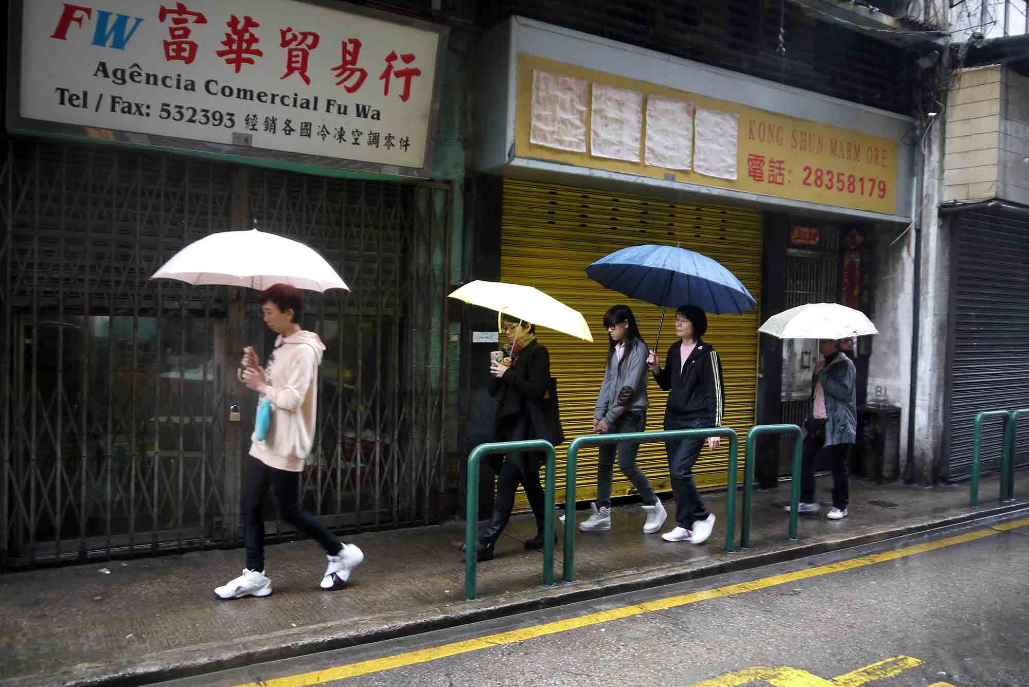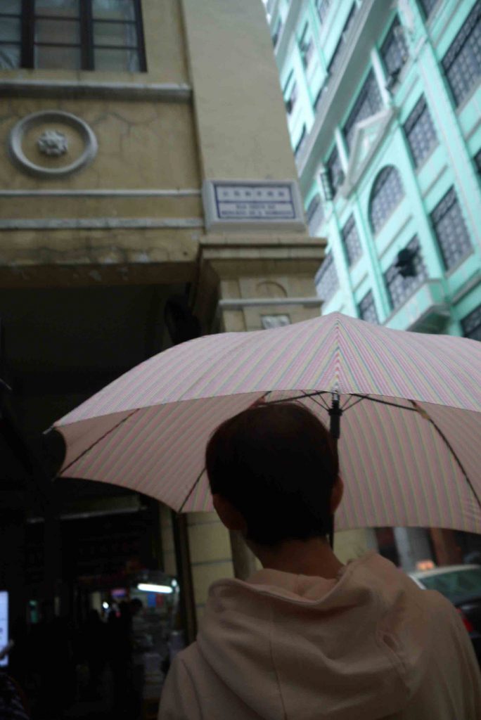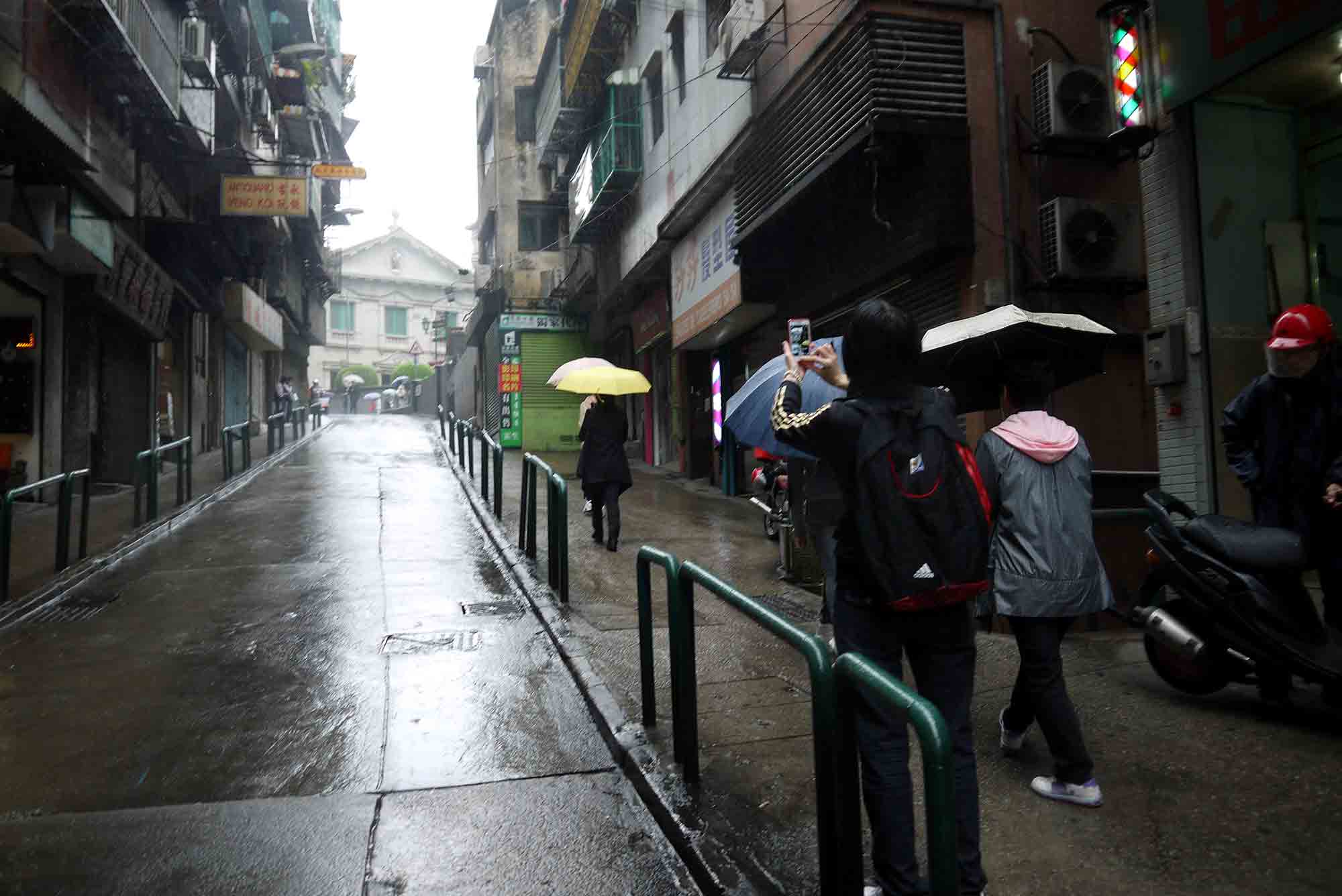 天灰灰,雨濛濛, 師父帶領弟子數人,由新馬路出發,繞道念佛。