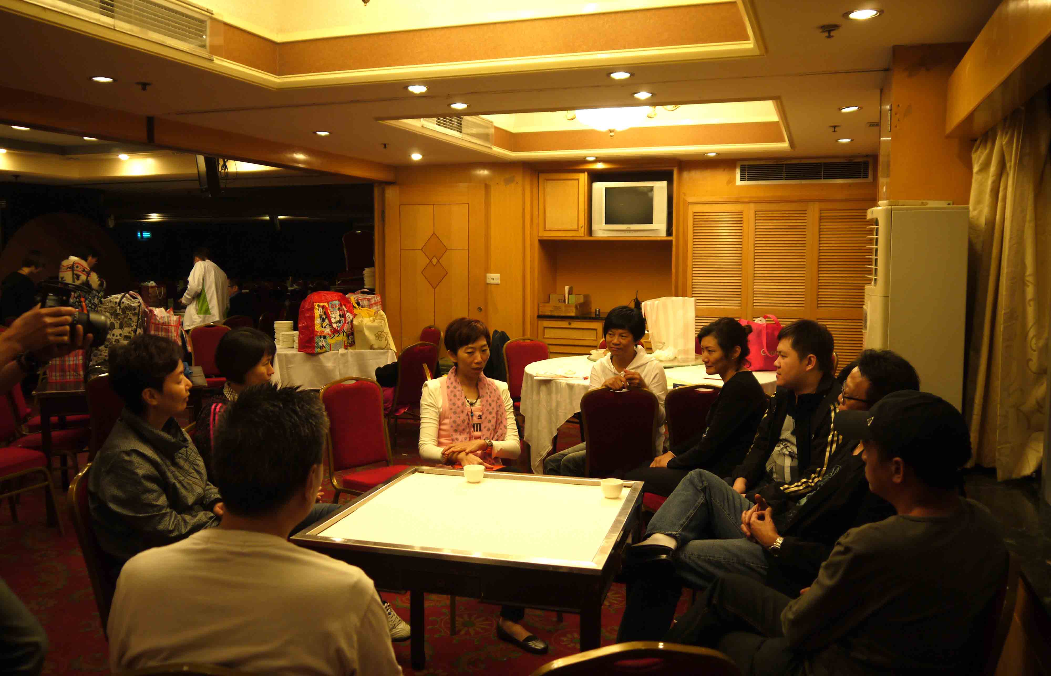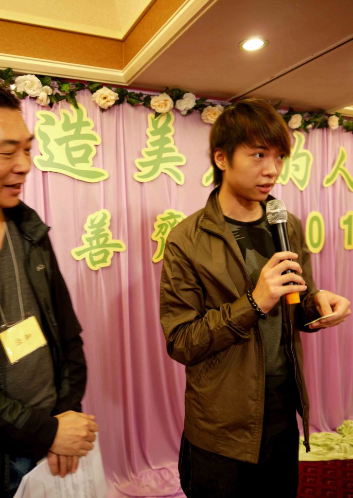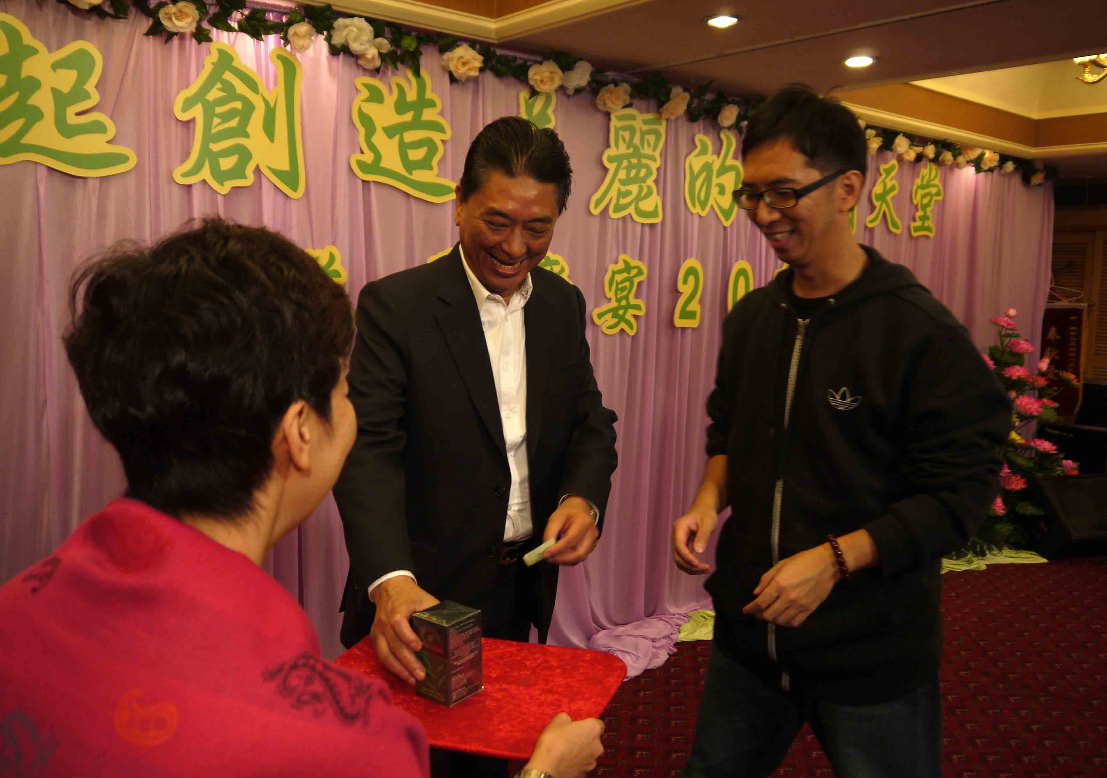圍獎抽獎。獎品是健康食品螺旋藻丸,法洪大大師兄成為當晚首位得獎者。