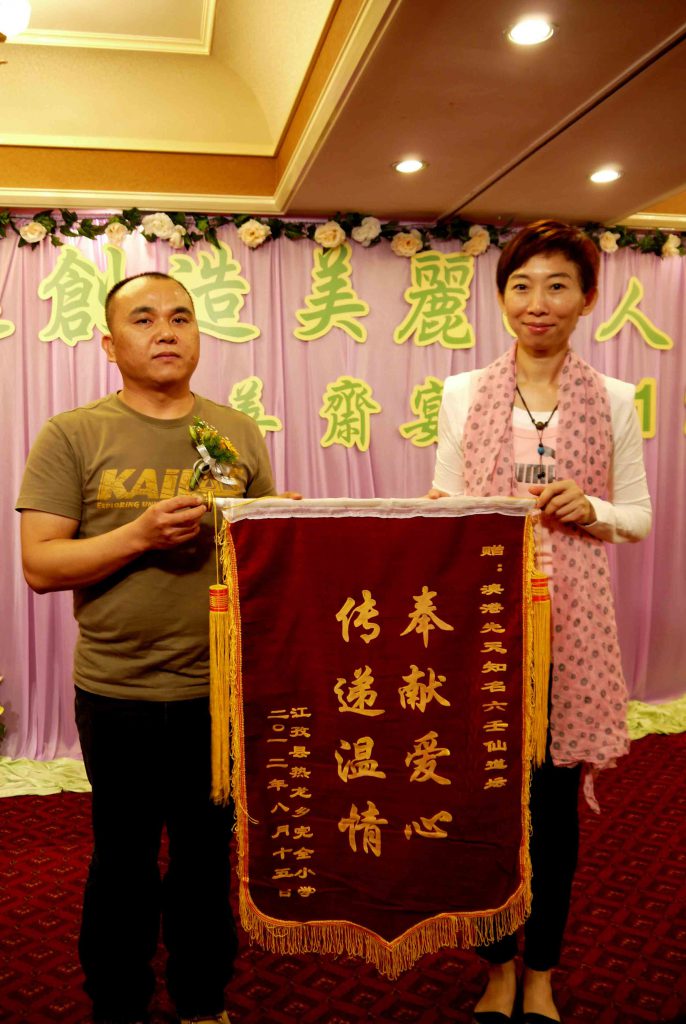 溫先生代西藏江孜縣熱龍鄉完小轉交錦旗予 師父。