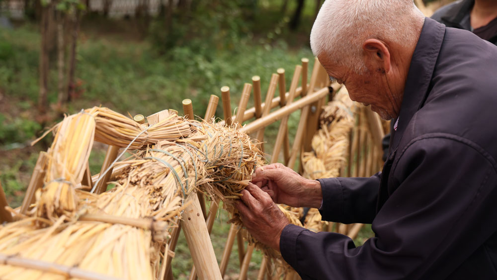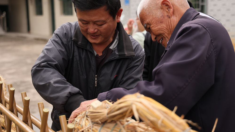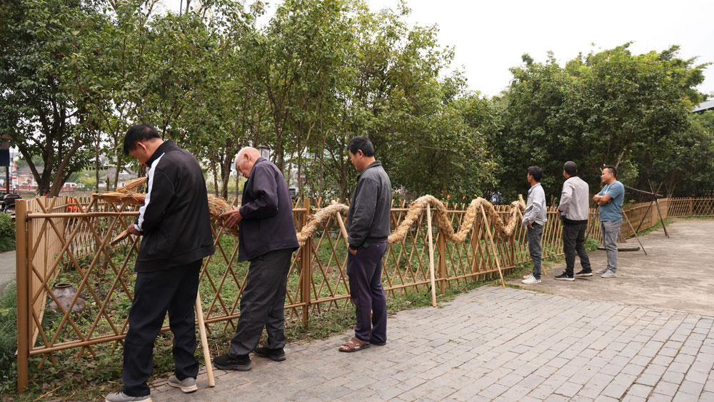 村民正在製作香火龍,客家香火龍是省級非物質文化遺產,很幸運給我們遇上了。