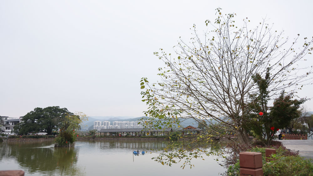 村裏有一大池塘。