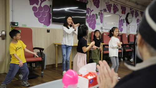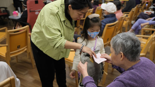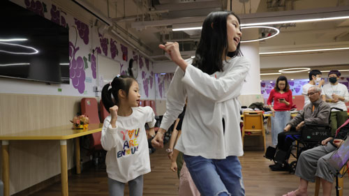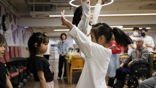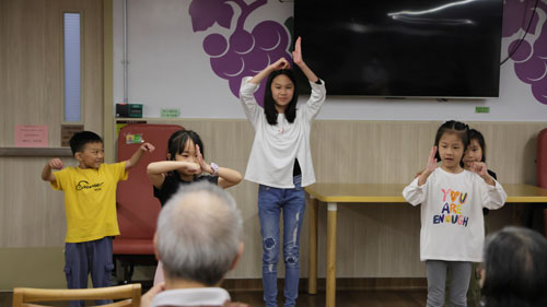 本來只安排幾位小朋友表演2個項目,但現場反應熱烈,長者們看着小孩們跳「科目三」,都顯得很開心,小孩得到了觀眾的關注,又自薦做多兩項齊舞表演。希望愉快的義工體驗能為小孩種下「互助互容」的種子,長大後「共同創造幸福人生」。