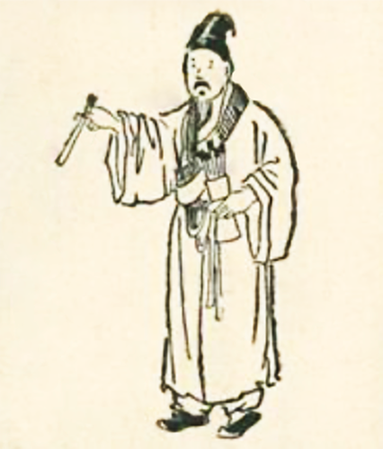 【圖解】一人手持簽筒拔去竹。