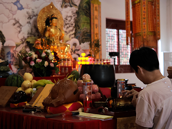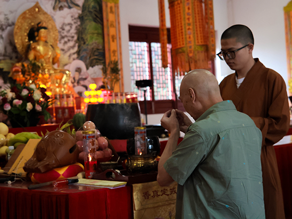 鎮安古寺常住有6-7位僧眾,日常儀規有朝暮課誦、上供、過堂、普佛等。寺院外的農地由僧眾負責打理。