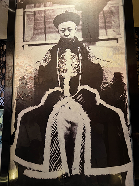 愛新覺羅・溥儀(1906年2月7日-1967年10月17日),是清朝最後一位皇帝。其為清朝皇帝在位時年號 “宣統”,通稱宣統皇帝(1909年-1912年,1917年7月1日一12日)其在偽滿洲國皇帝位時年號 “康得”,又稱康得皇帝(I934年-1945年)。 此博物館內還介紹了根據其歷史事蹟改編的電影《末代皇帝》,以及溥儀的自傳小說《我的前半生》等內容。骨灰入葬位於清西陵內崇陵(光緒陵)附近的華龍皇家陵園,沒有謚號沒廟號。 父親是光緒帝同父異母弟弟攝政王載灃,生母是慈禧寵臣榮祿子女,蘇完瓜爾佳・幼蘭。