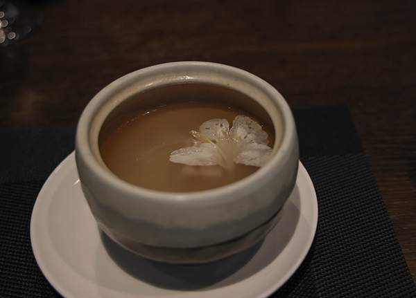 第二道:懷味鮮腐。主食材:豆腐、核桃花、香菜。
