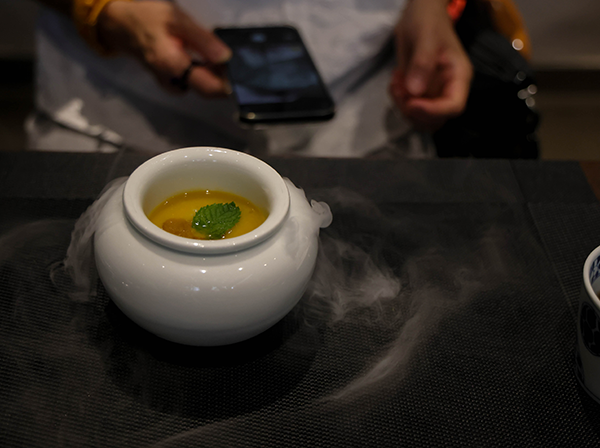 第四道:胡汁猴排。主食材:猴頭菇。配茶:烏汁梅醋。