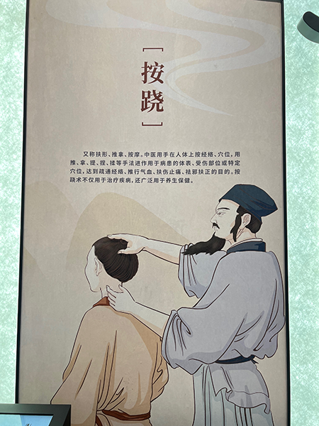 按蹺又稱扶形、推拿、按摩。中醫用手在人體上按經絡、穴位,用推、拿、提、捏、揉等手法進用於病患的體表、受傷部位或特定穴位,達到疏通經絡、推行氣血、扶傷止痛、祛邪扶正的目的。按蹺術不僅用於治療疾病,還廣泛用於養生保健。