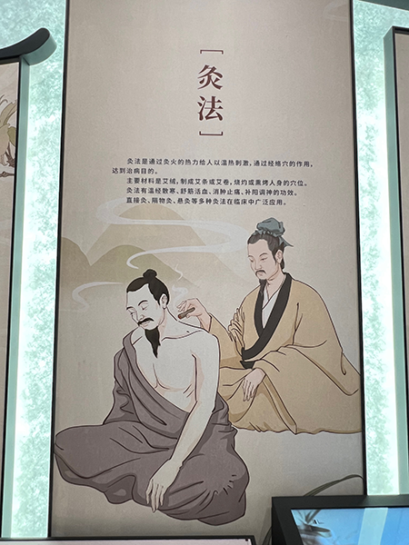 灸法是通過灸火的熱力給人以溫熱刺激,達到治病目的,其主要材料是艾絨,製成艾條或艾卷,燒灼或熏烤人身的穴位。灸法有溫經散寒、舒筋活血、消腫止痛、補陽調神的功效。在臨床中廣泛應用的灸法有直接灸、隔物灸、懸灸等。