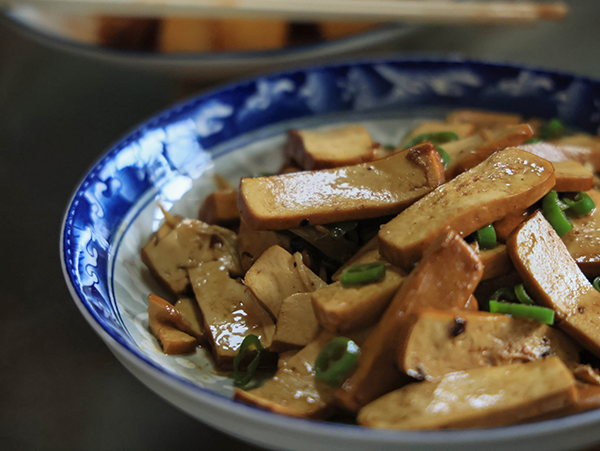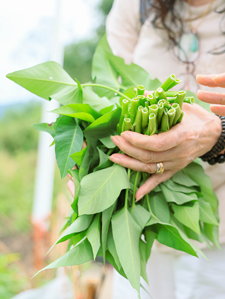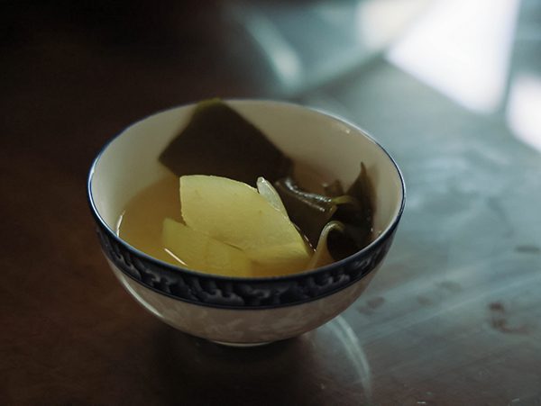 於寺院午飯,齋菜都是自家種植的新鮮瓜菜。